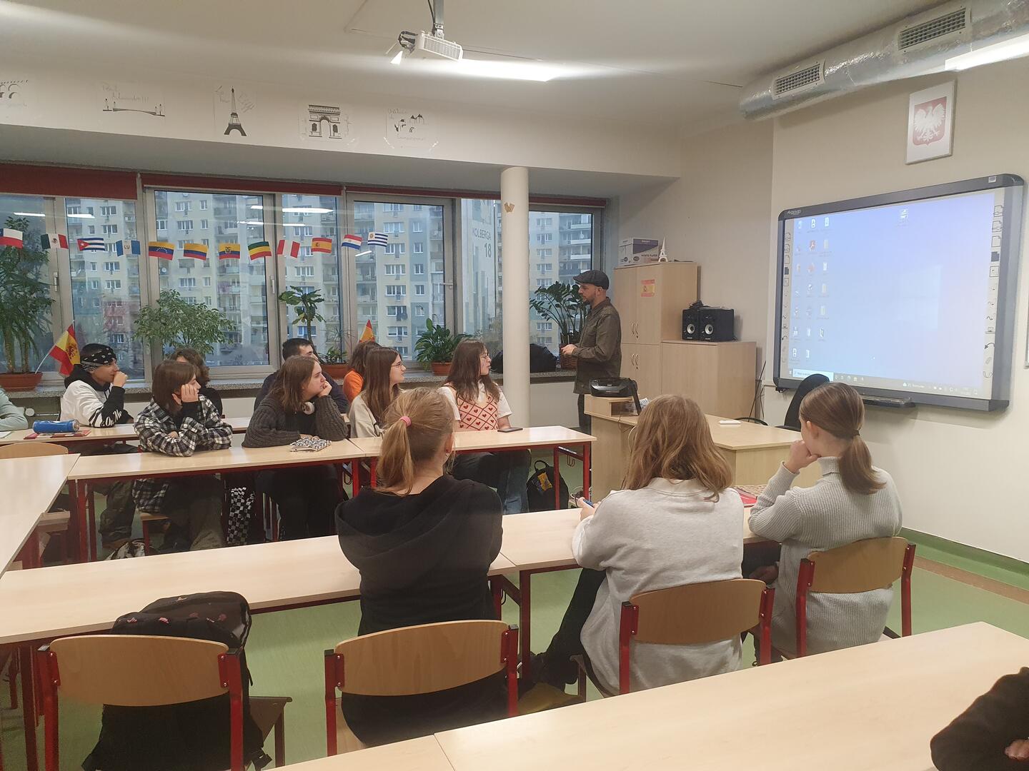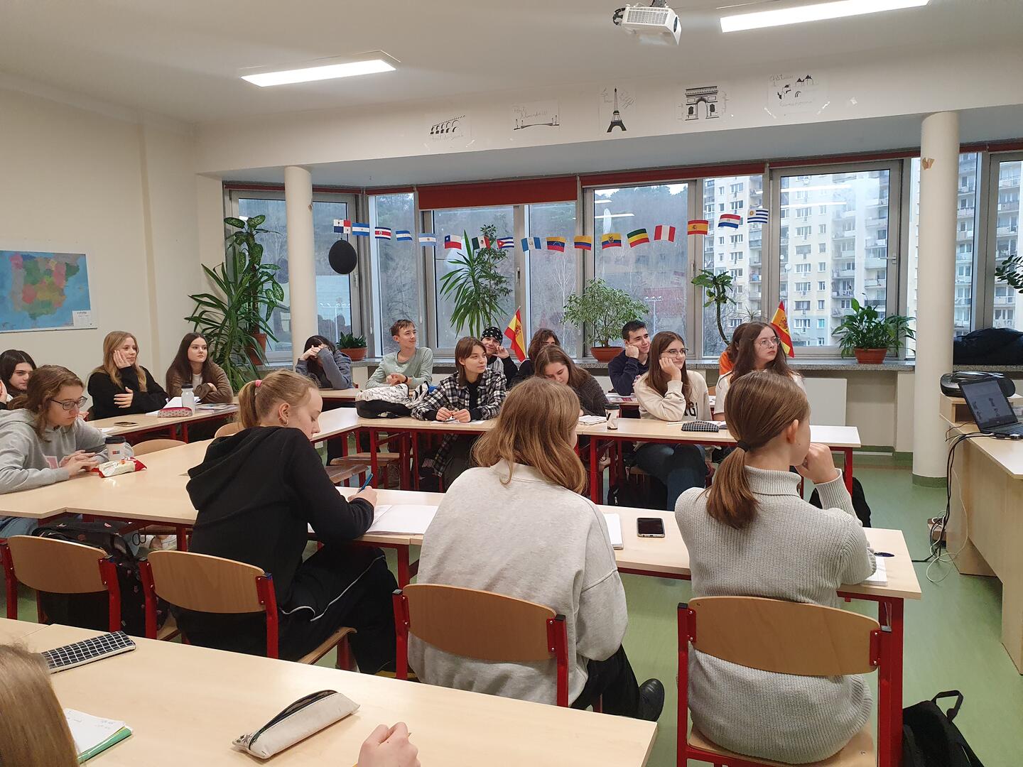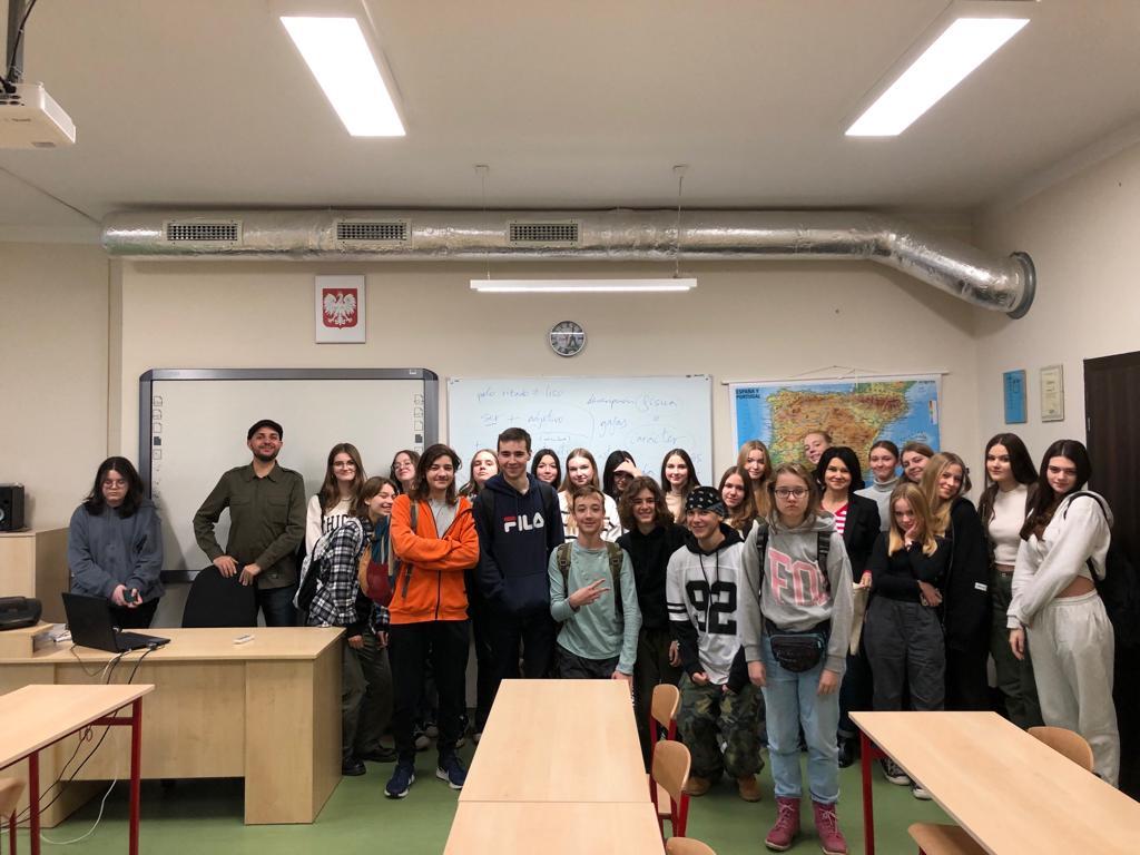 1 grudnia 1A, będąca klasą lingwistyczną z rozszerzonym językiem hiszpańskim, miała możliwość udziału w zajęciach z rodowitym Hiszpanem ze szkoły AIL Español z Madrytu.  Uczniowie mogli w praktyce sprawdzić to czego nauczyli się na lekcjach oraz zdobyć nowe umiejętności. Lekcja dostarczyła ciekawych wrażeń i wszystkim bardzo się spodobała :)