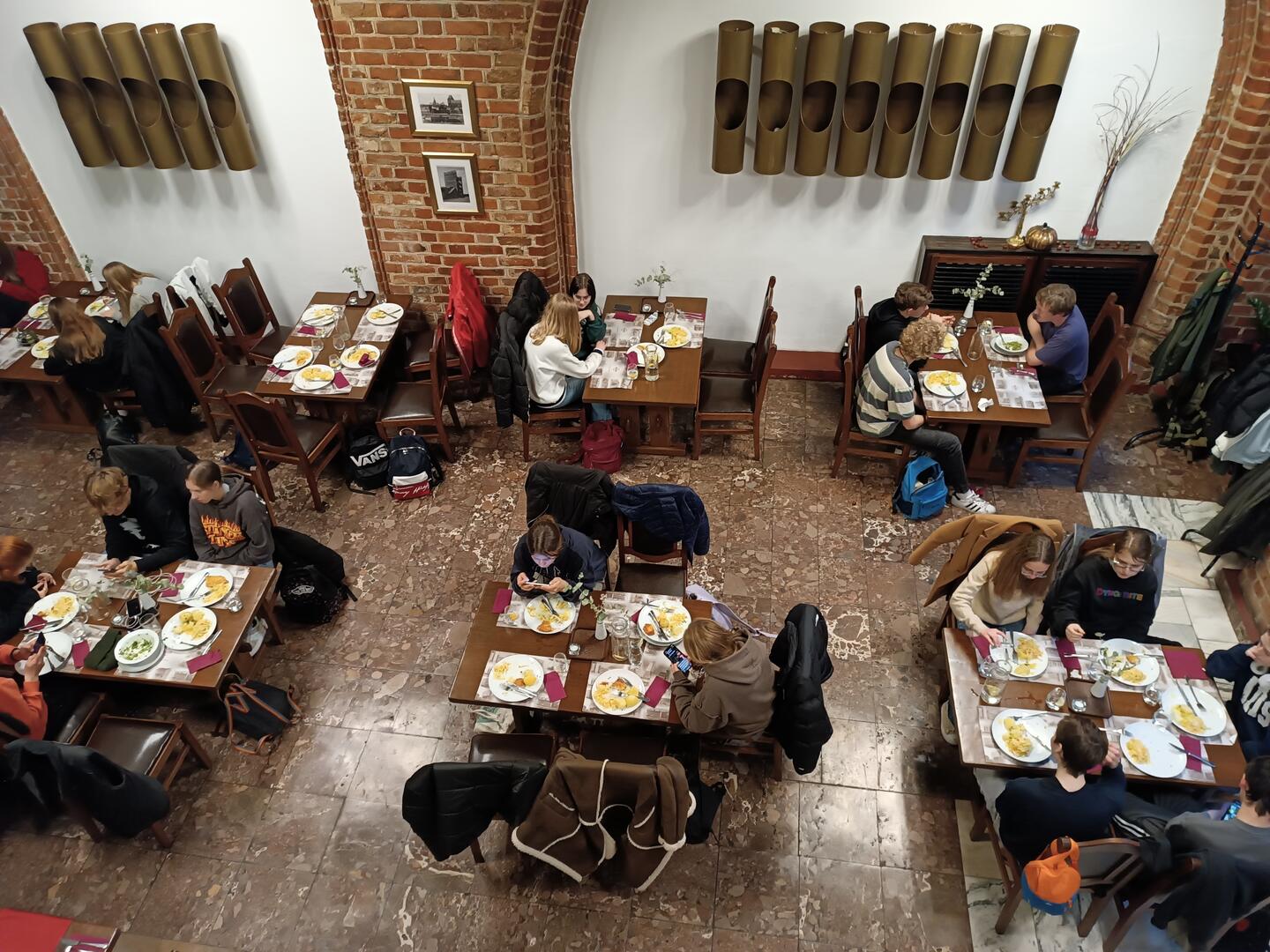 4-godzinny spacer po Toruniu wraz z przewodnictwem w ciekawej i niebanalnej formie, poczęstunek toruńskimi piernikami, wizyta w muzeum oraz domu wielkiego Astronoma Mikołaja Kopernika, projekcja filmu 4D - 'Wszechświat' , zwiedzanie katedry wraz z niezapomnianą wspinaczką na wieżę katedralną, krótka regeneracja przy obiedzie w słynnej starówkowej Restauracji Staropolskiej oraz dynamiczna i zagadkowa gra miejska z pysznymi podarunkami to w skrócie program naszego wypadu, który zdołaliśmy zmieścić podczas jednego dłuuugiego dnia. Warto było wstać o świcie aby zdążyć na pociąg, warto było spędzić w nim kilka godzin, warto było poznać się w środowisku pozaszkolnym i warto było porozmawiać o rzeczach niezwiązanych ze szkolną ławką - w dobrym towarzystwie takie wypady zawsze mają sens i zawsze jest warto :-)