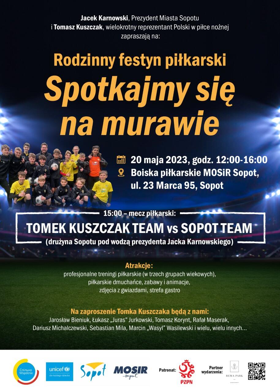20 maja o godzinie 15.00 na boisku przy ul. 23 Marca 95 drużyna Sopotu pod wodzą prezydenta Jacka Karnowskiego zmierzy się z drużyną Tomka Kuszczaka, wielokrotnego reprezentanta Polski i piłkarza Manchesteru United. Mecz zwieńczy festyn piłkarski „Spotkajmy się na murawie”, który zaplanowano w godz. 12.00-16.00. Wstęp wolny.