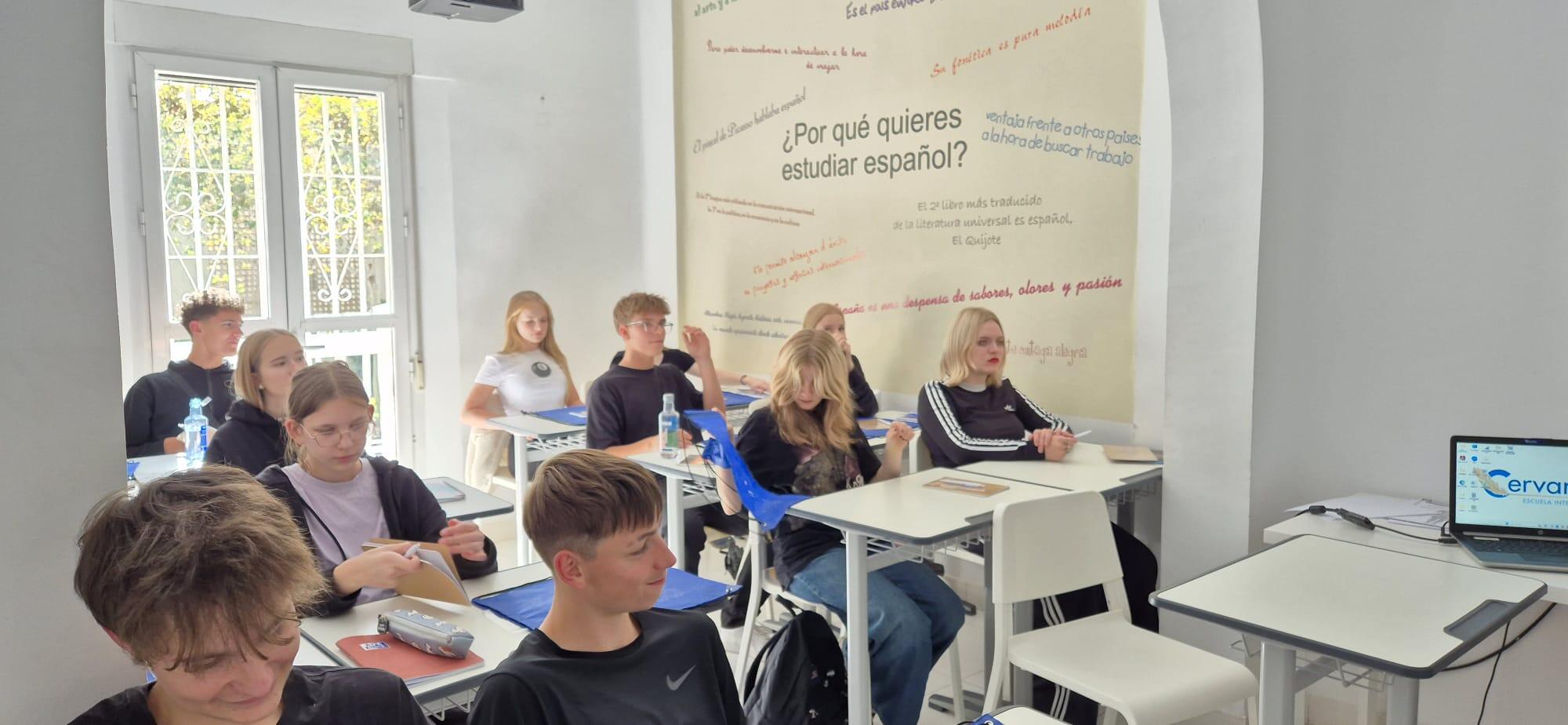 W piątek (18.10.24r.) klasa 2a rozpoczęła przygodę z językiem hiszpańskim w słonecznej Maladze. Wylądowaliśmy w Hiszpanii rano i pojechalismy do szkoły, gdzie czekały na nas hiszpańskie rodziny. Po południu mieliśmy już pierwsze lekcje z hiszpańskimi nauczycielami.