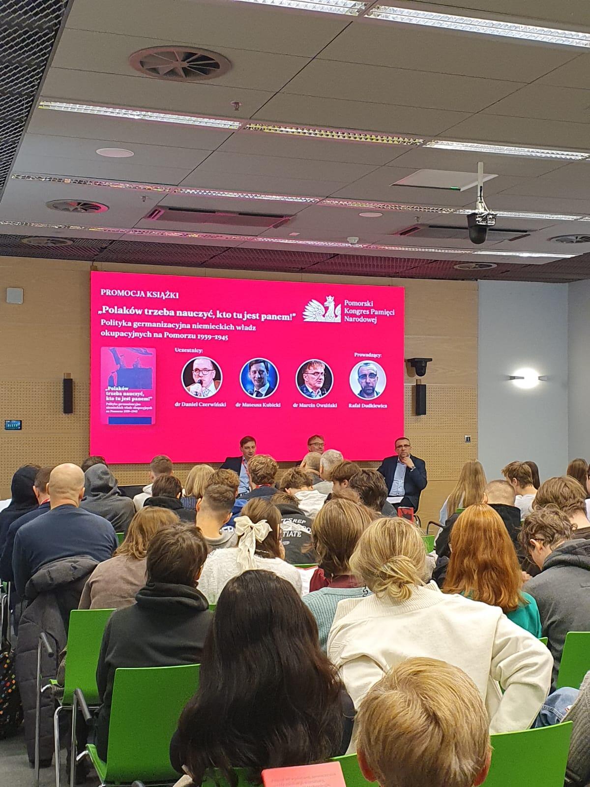 Dziś, uczniowie klas: II C i II D wzięli udział w Pomorskim Kongresie Pamięci Narodowej "Historia mówi przez pokolenia". Na początku udaliśmy się na wykład połączony z panelem dyskusyjnym "Polaków trzeba nauczyć, kto tu jest panem", w którym poruszono zagadnienie polityki germanizacyjnej niemieckich władz okupacyjnych na Pomorzu w latach 1939-1945. Na zakończenie obejrzeliśmy film "Zmarłych pogrzebać" w reżyserii Katarzyny Underwood.