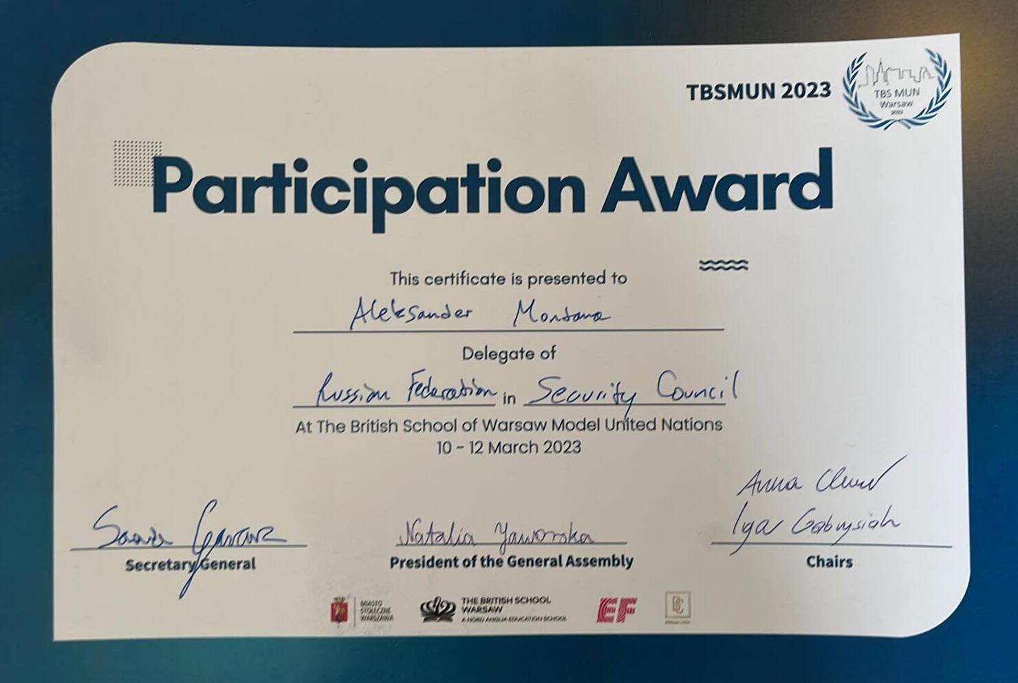 Aleksander na Model United Nation Conferences