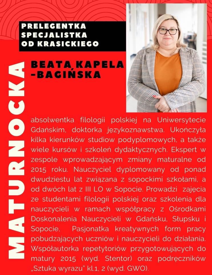 Beata Kapela- Bagińska na I Ogólnopolskiej Maturnocce Online