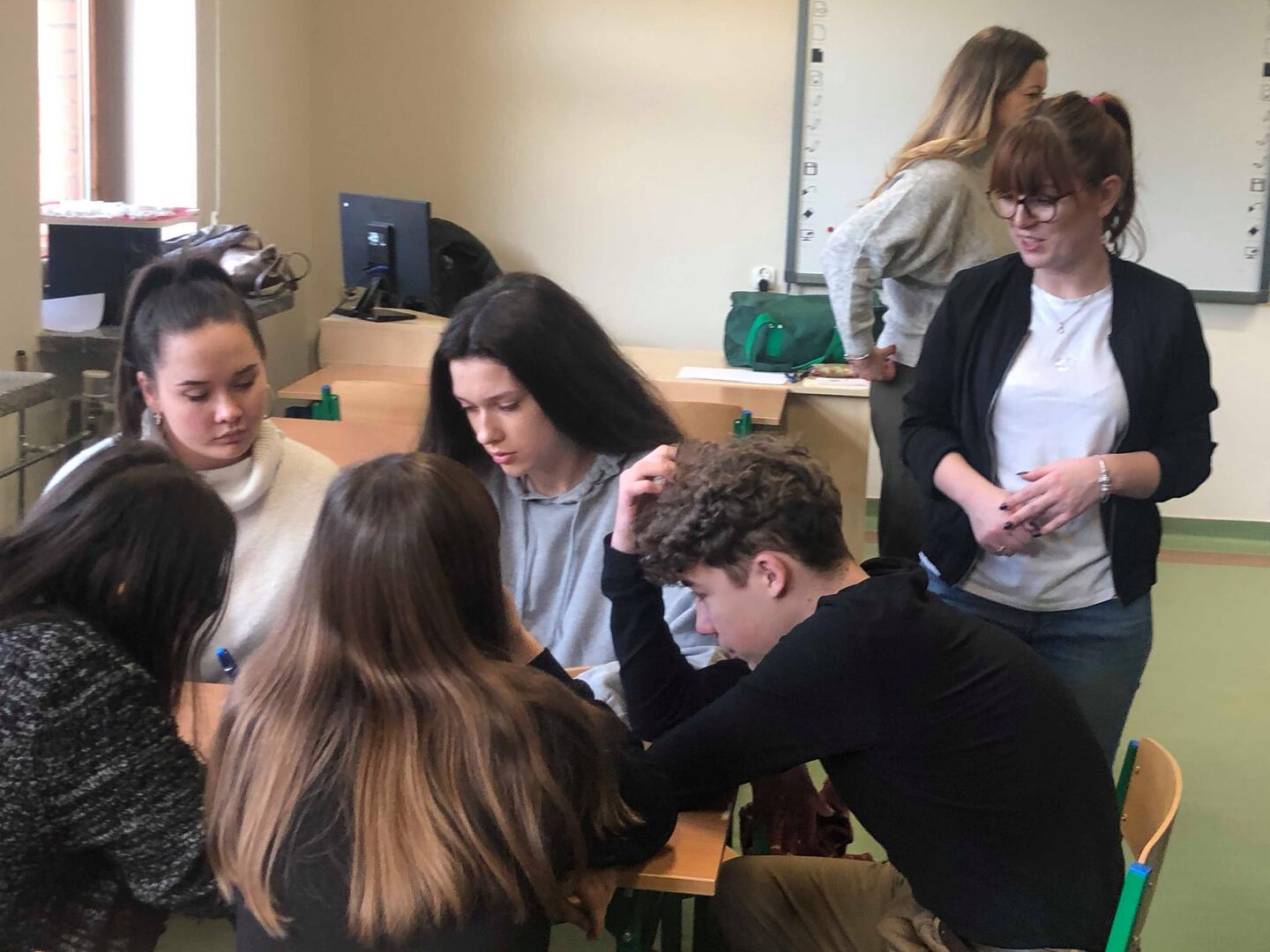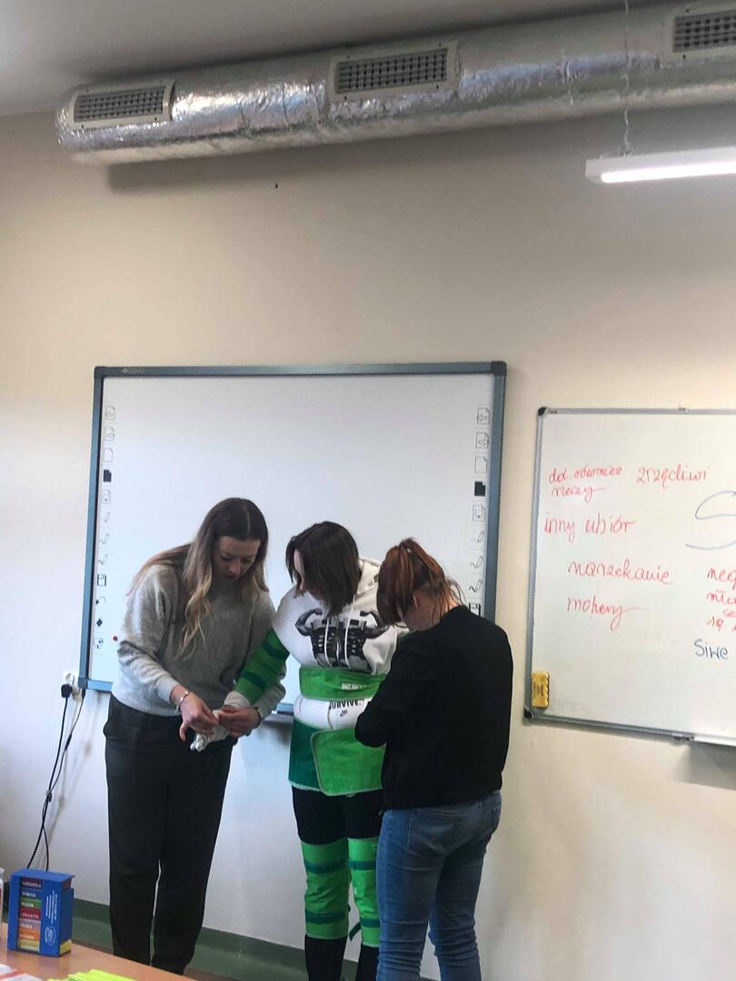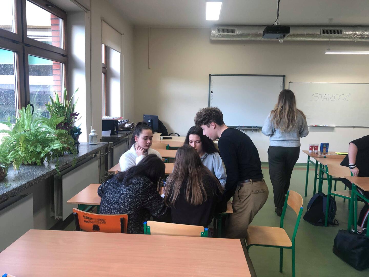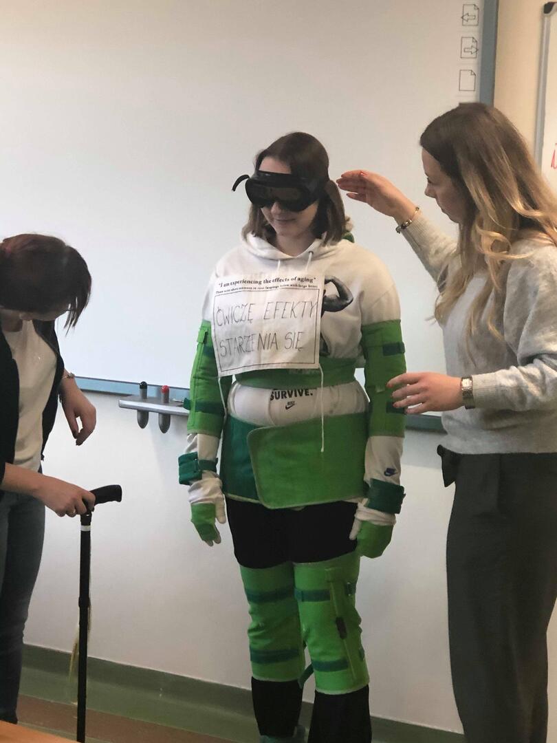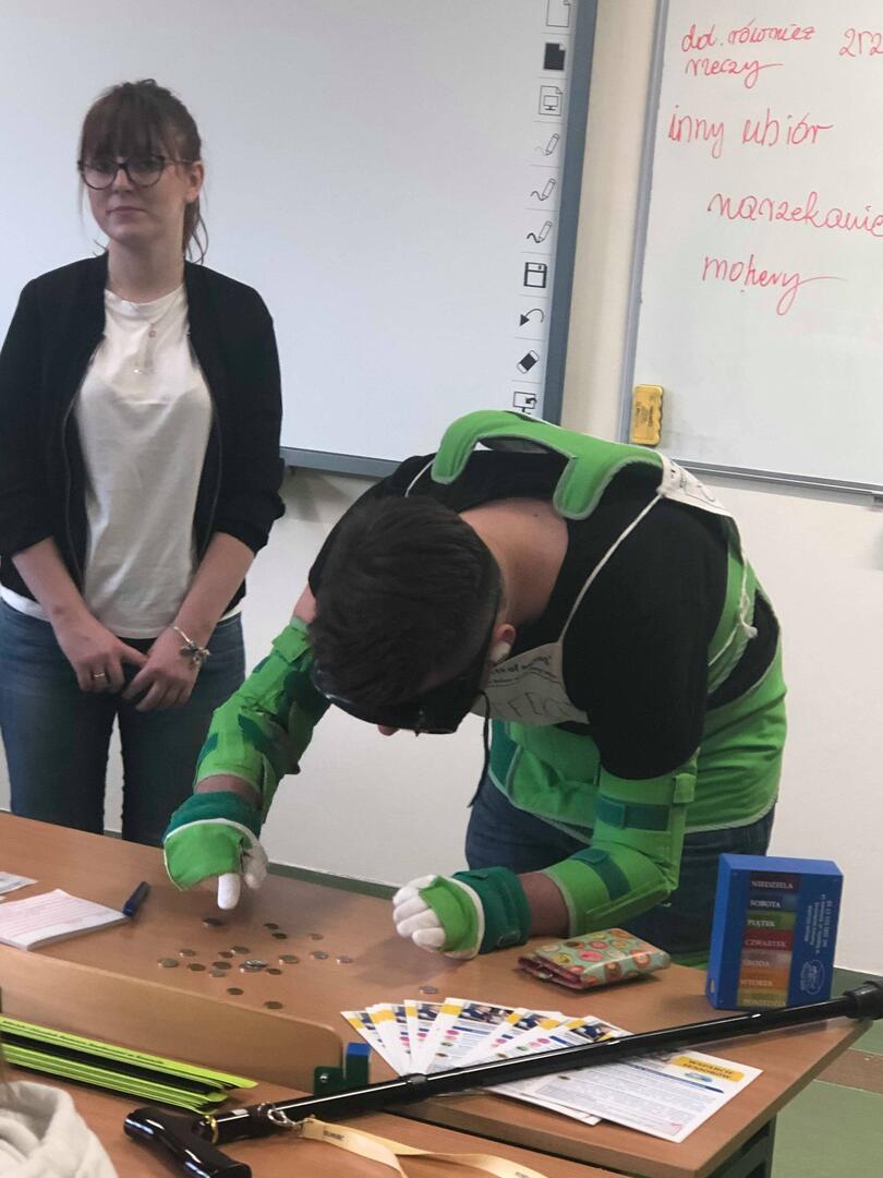 Dziś w klasach pierwszych odbyły się warsztaty: Bliżej starości przygotowane przez Miejski Osrodek Pomocy Społecznej. Uczniowie dzieki „symulatorowi starości” mogli poczuć, czym jest starość i jakie trudności musza pokonywać każdego dnia ludzie starsi, wykonując codzienne czynności. Było refleksyjnie. W warsztatach klasie 1 AP towarzyszyły kamery TVN 24