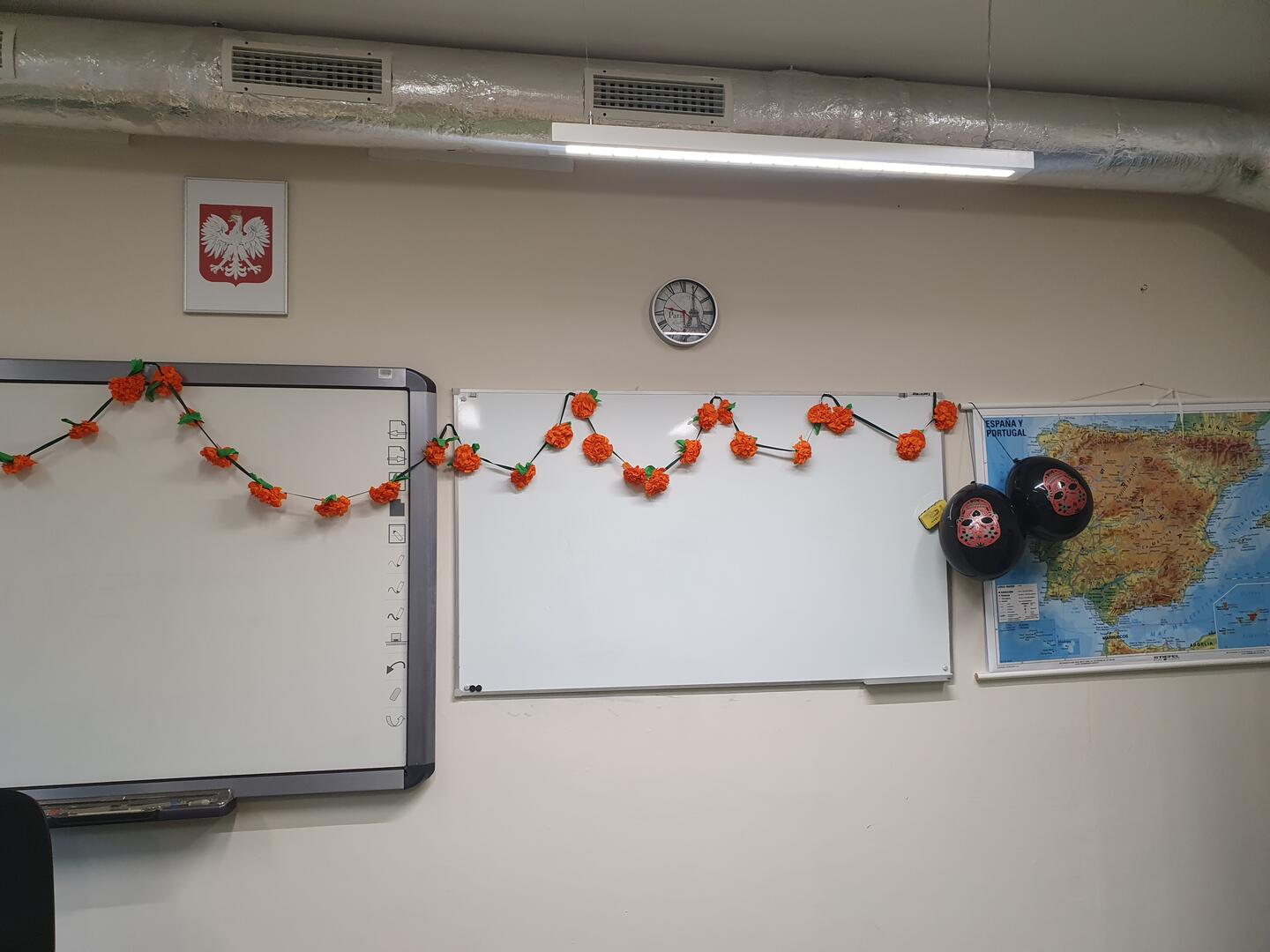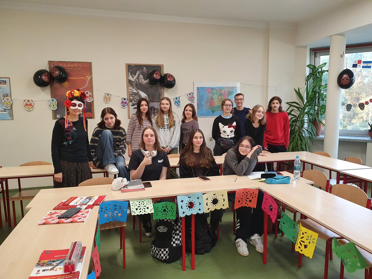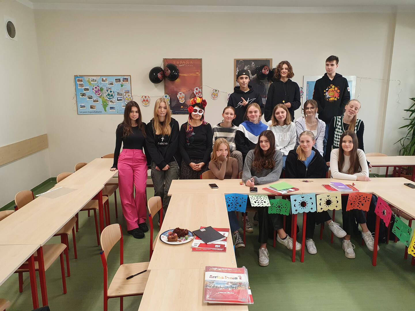 Dzisiaj tj 28 października klasa 1A, z rozszerzonym językiem hiszpańskim, poznawała zwyczaje meksykańskie dotyczące tego barwnego święta. Uczniowie przystroili salę dekoracjami z motywami charakterystycznymi dla Dnia Zmarłych, zapoznali się z ciekawymi materiałami audio-wizualnymi oraz wysłuchali bardzo popularnej piosenki pt. "Llorona" w kilku wersjach ;) Nauka języka to również poznawanie kultury krajów hiszpańskojęzycznych!