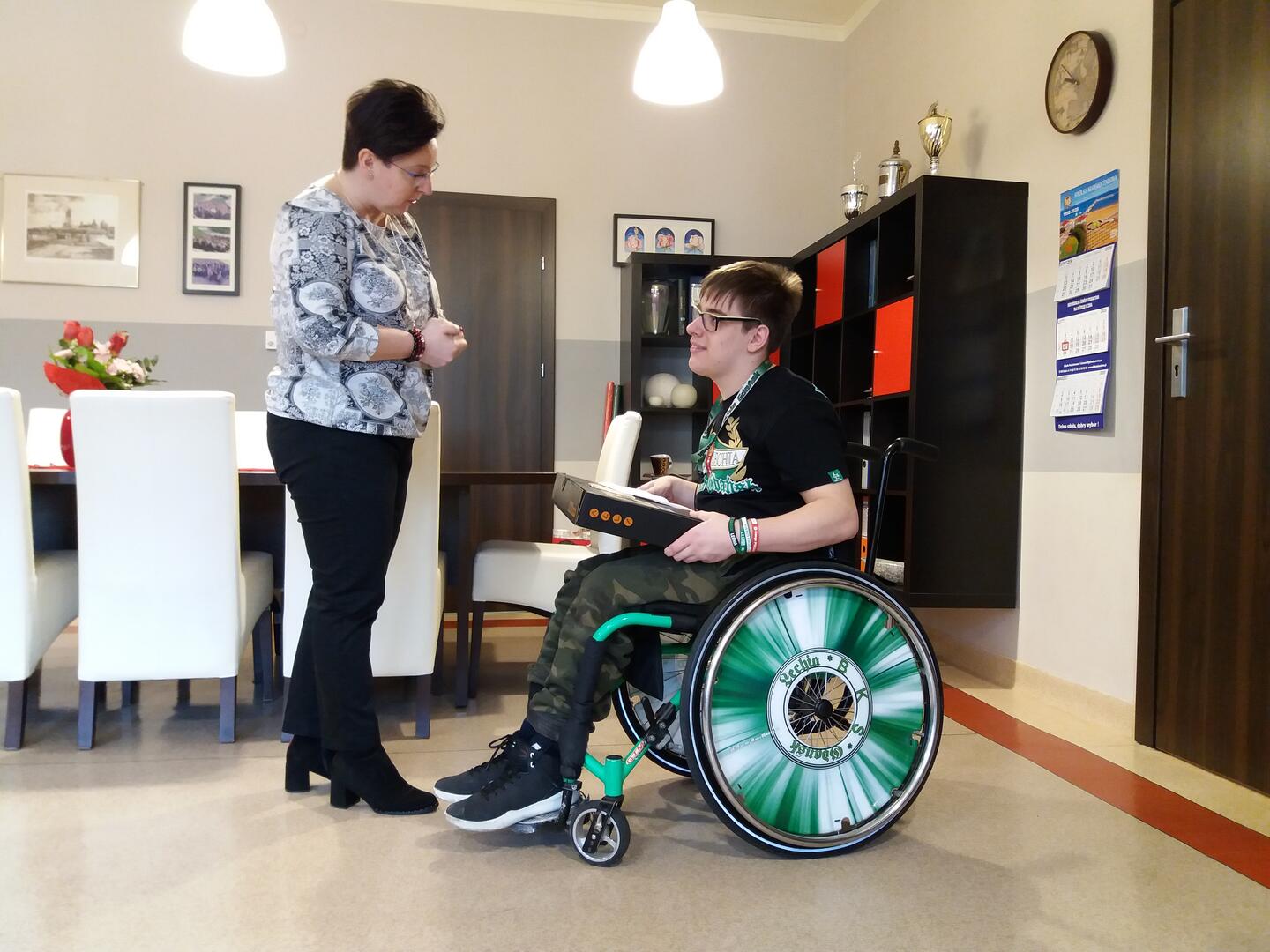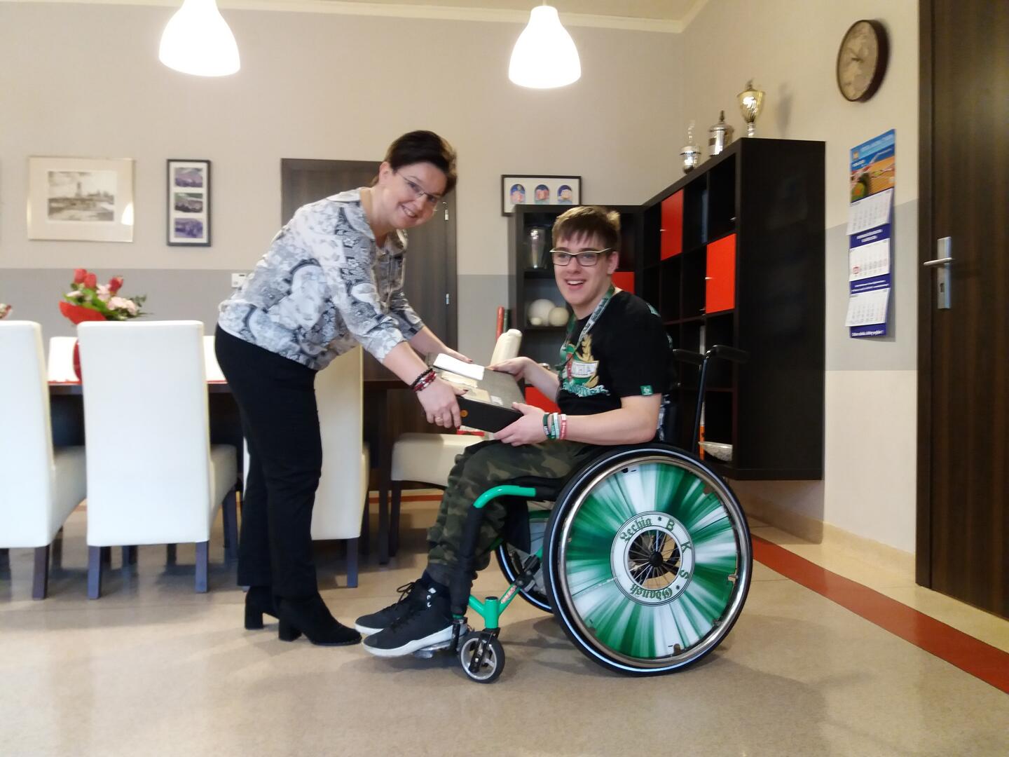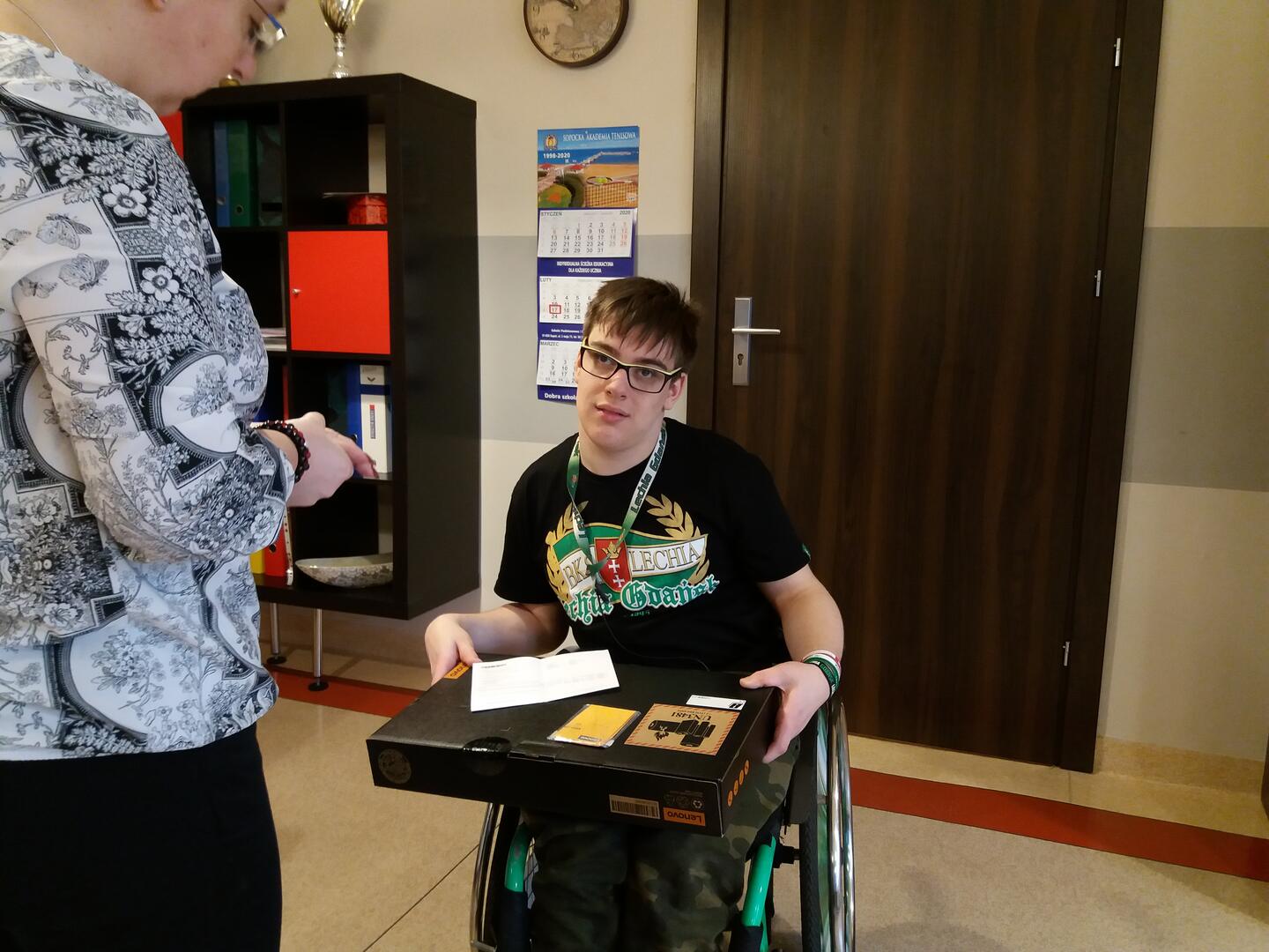 Dobry duch naszej szkoły, Pan Paweł Szymkowiak niegdyś zgłosił się do szkoły oferując kupno sprzętu komputerowego potrzebującemu pomocy uczniowi. Wówczas otrzymała go uczennica w bardzo trudnej sytuacji osobistej, rok później Pan Szymkowiak ponowił swoja pomoc i tym razem mogliśmy wesprzeć i w pewnym sensie odmienić życie kolejnego ucznia. Tym razem to my poprosiliśmy o pomoc Pana Pawła dla Marka Mizery. Marek dzięki temu laptopowi , będzie mógł zamieniać mowę na tekst pisany, będzie mógł korzystać z podręczników w wersji elektronicznej i dostosowań do swoich potrzeb.                Bardzo serdecznie dziękujemy!