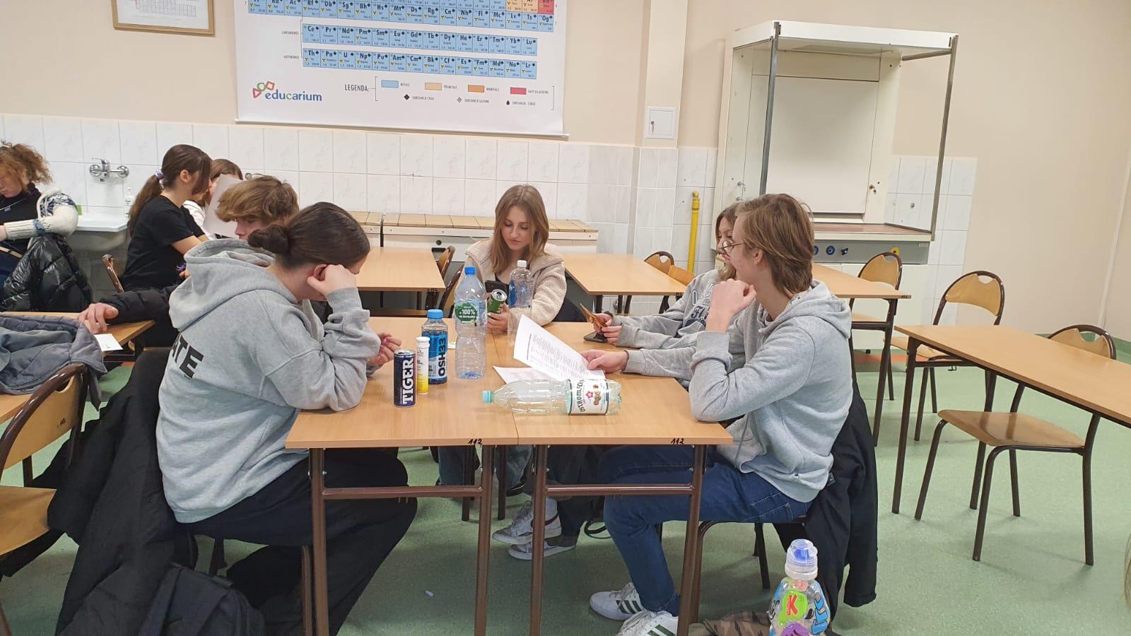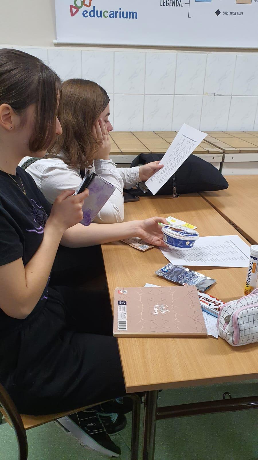W sali chemicznej były zadania - czytanie i analiza składu produktów spożywczych i kosmetyków.