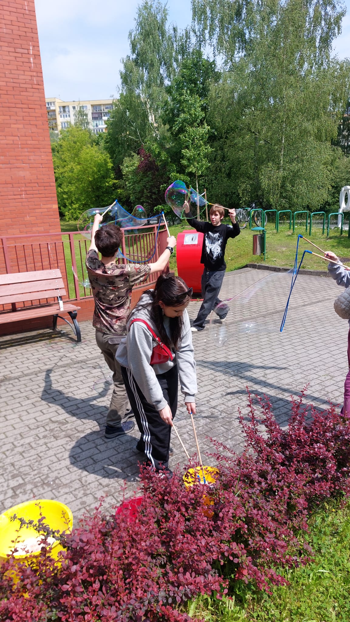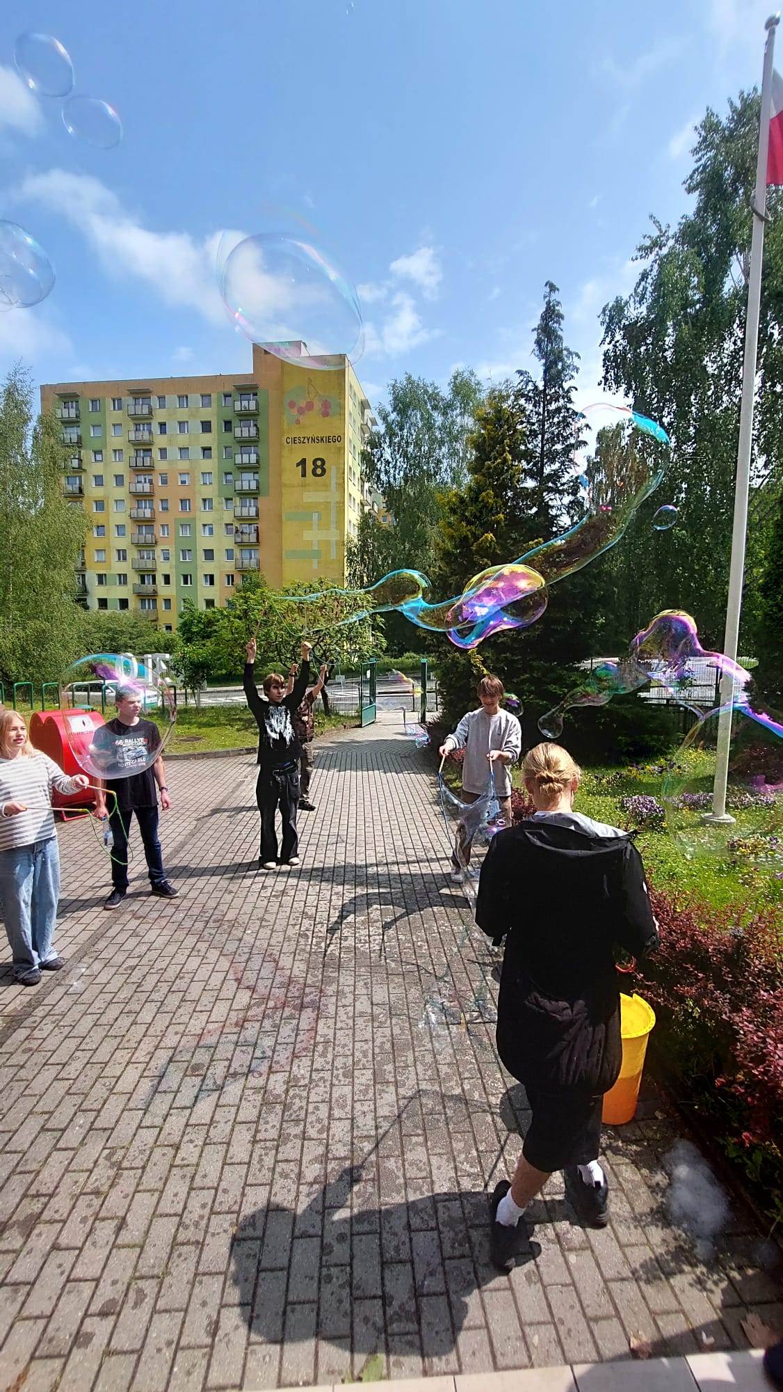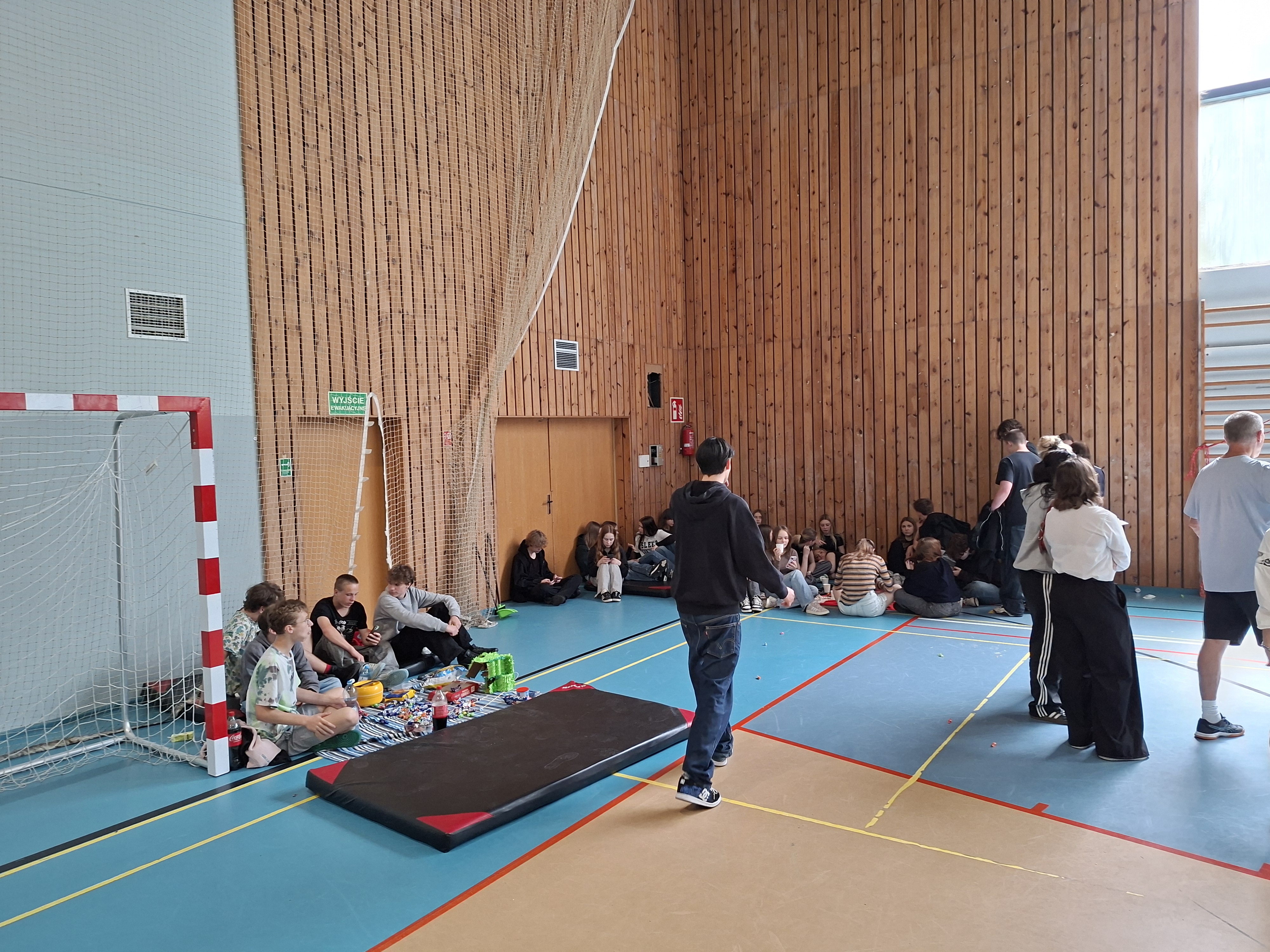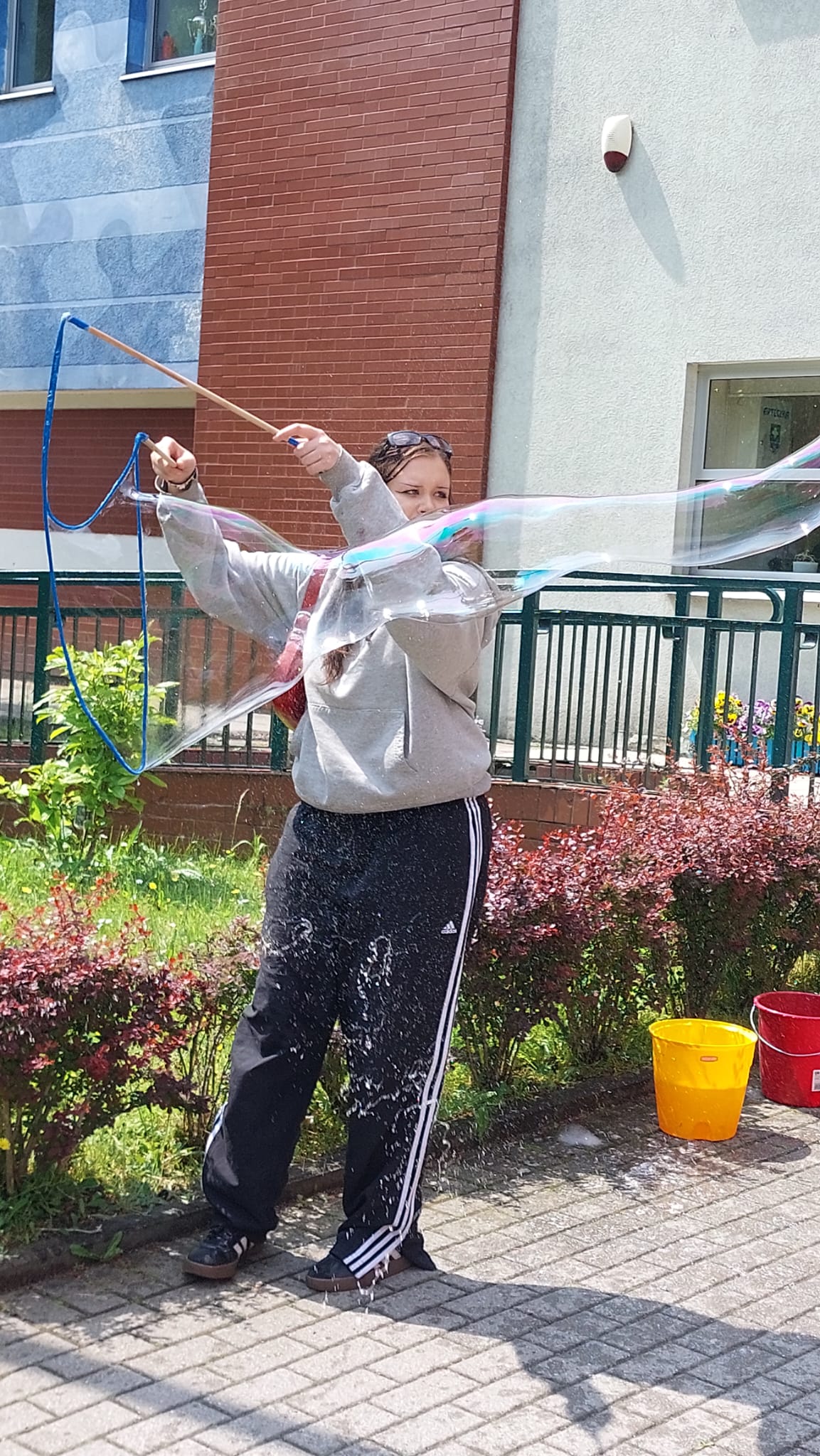 Dzisiaj świetnie się bawiliśmy. Przeżyliśmy dreszczyk emocji czekając w kolejce do losowania na loterii fantowej. Niczym Sherlock Holmes identyfikowaliśmy Duże dziś Dzieci na zdjęciach sprzed lat. Były fantastyczne bańki wielkości asteroidy unoszące się nad naszym LO. Razem z klasą pomimo niepogody piknikowaliśmy na sali gimnastycznej. Nasi trenerzy zorganizowali nam fajne zawody klasowe, a na koniec zagraliśmy z nimi mecz siatkówki. Pan Marcin specjalnie zwolnił się z pracy, żeby zagrać z uczniami. Ksiądz Łukasz postarał się, aby być z nami. Nie było słońca na niebie, ale Duże Dziecko było dzisiaj szczęśliwe i uśmiechnięte od ucha do ucha, przesłodzone watą cukrową degustowaną bez limitów. Ten Dzień Dużego Dziecka, jak różowa chmurka będzie unosił się w naszej pamięci.