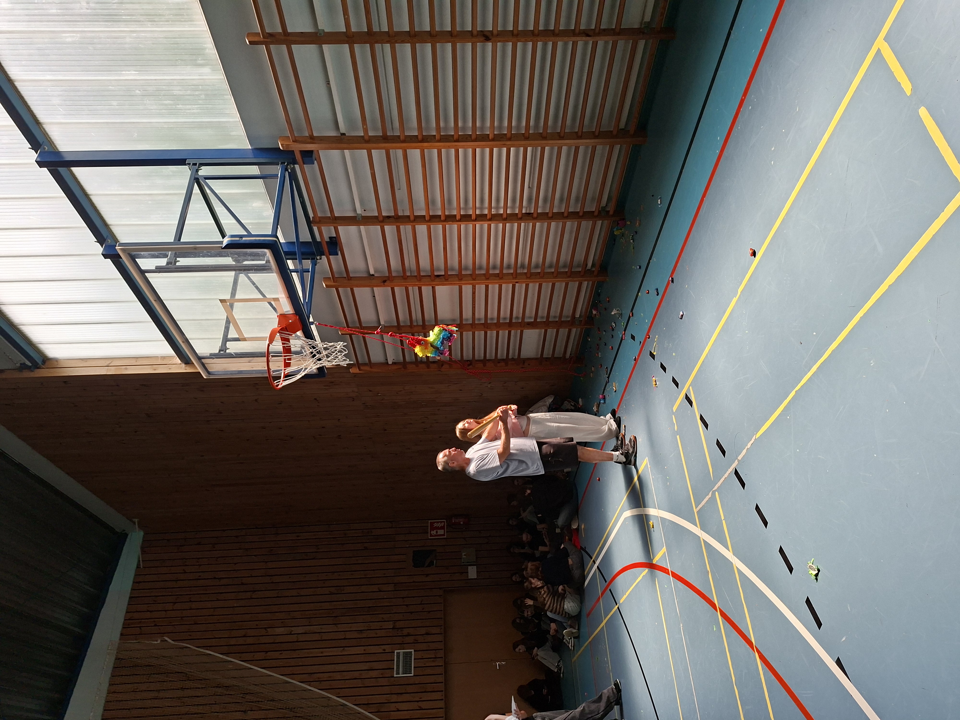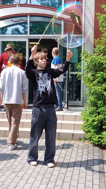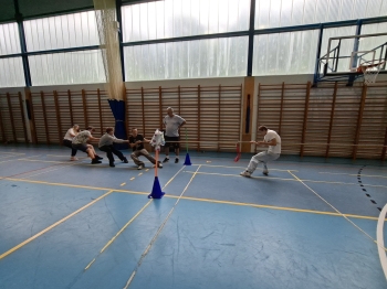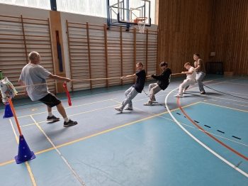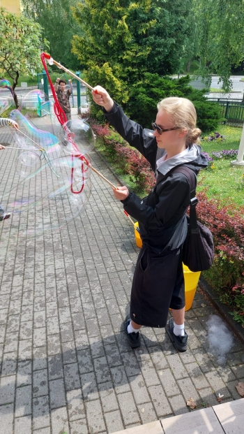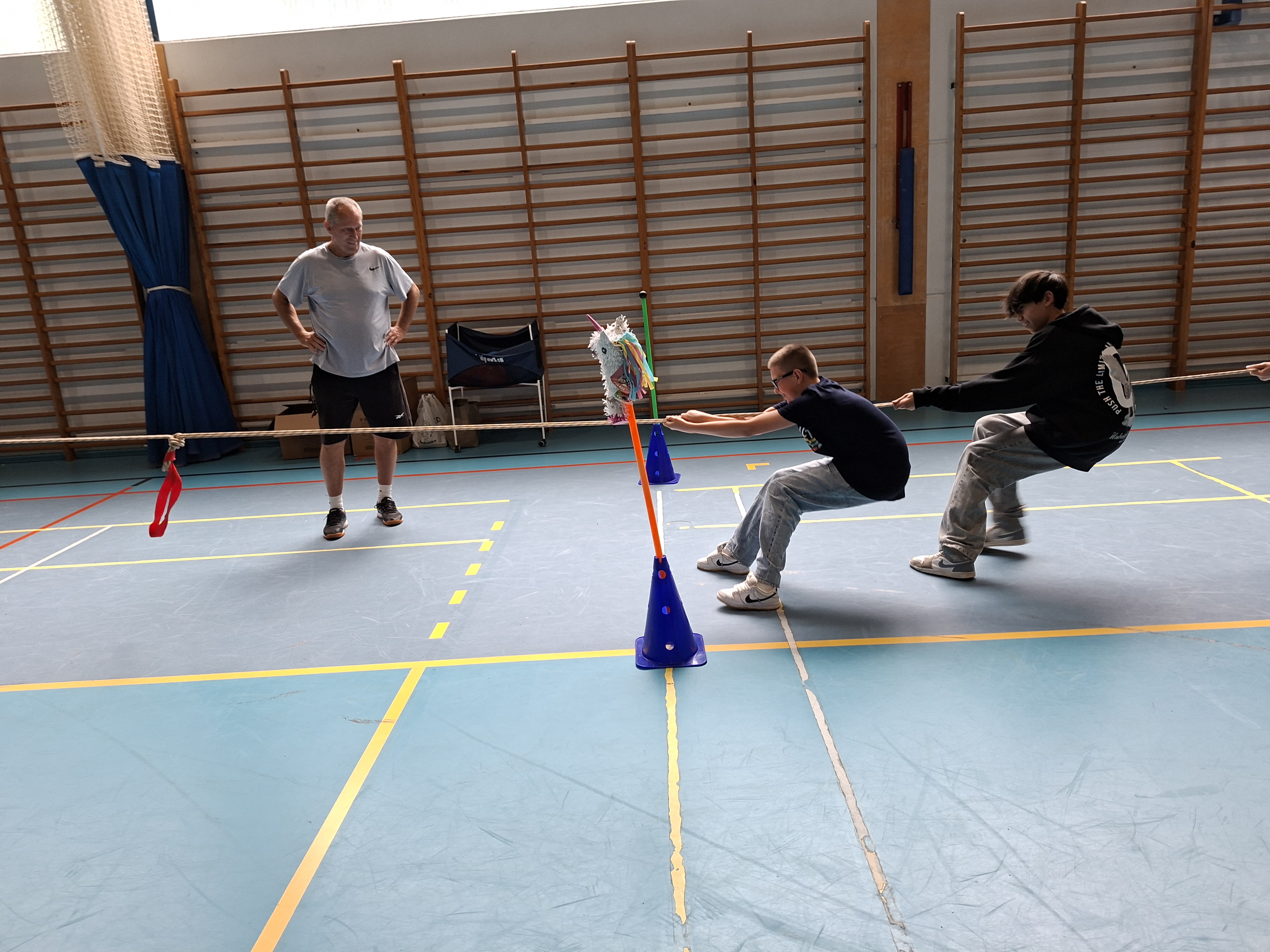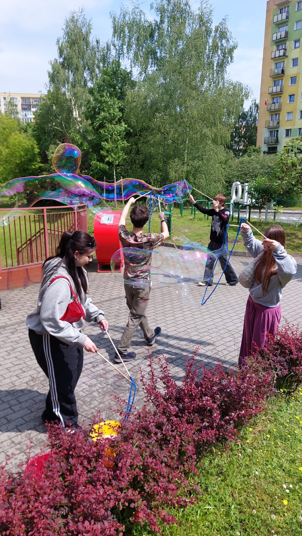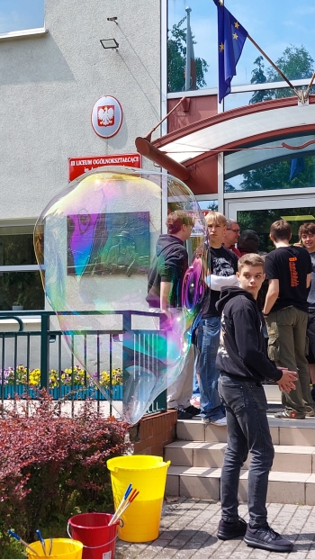 Dzisiaj świetnie się bawiliśmy. Przeżyliśmy dreszczyk emocji czekając w kolejce do losowania na loterii fantowej. Niczym Sherlock Holmes identyfikowaliśmy Duże dziś Dzieci na zdjęciach sprzed lat. Były fantastyczne bańki wielkości asteroidy unoszące się nad naszym LO. Razem z klasą pomimo niepogody piknikowaliśmy na sali gimnastycznej. Nasi trenerzy zorganizowali nam fajne zawody klasowe, a na koniec zagraliśmy z nimi mecz siatkówki. Pan Marcin specjalnie zwolnił się z pracy, żeby zagrać z uczniami. Ksiądz Łukasz postarał się, aby być z nami. Nie było słońca na niebie, ale Duże Dziecko było dzisiaj szczęśliwe i uśmiechnięte od ucha do ucha, przesłodzone watą cukrową degustowaną bez limitów. Ten Dzień Dużego Dziecka, jak różowa chmurka będzie unosił się w naszej pamięci.