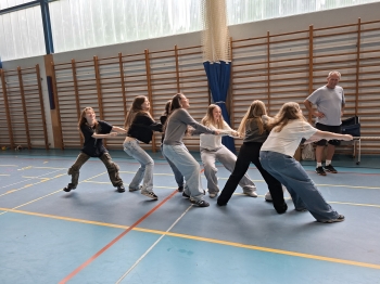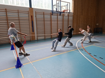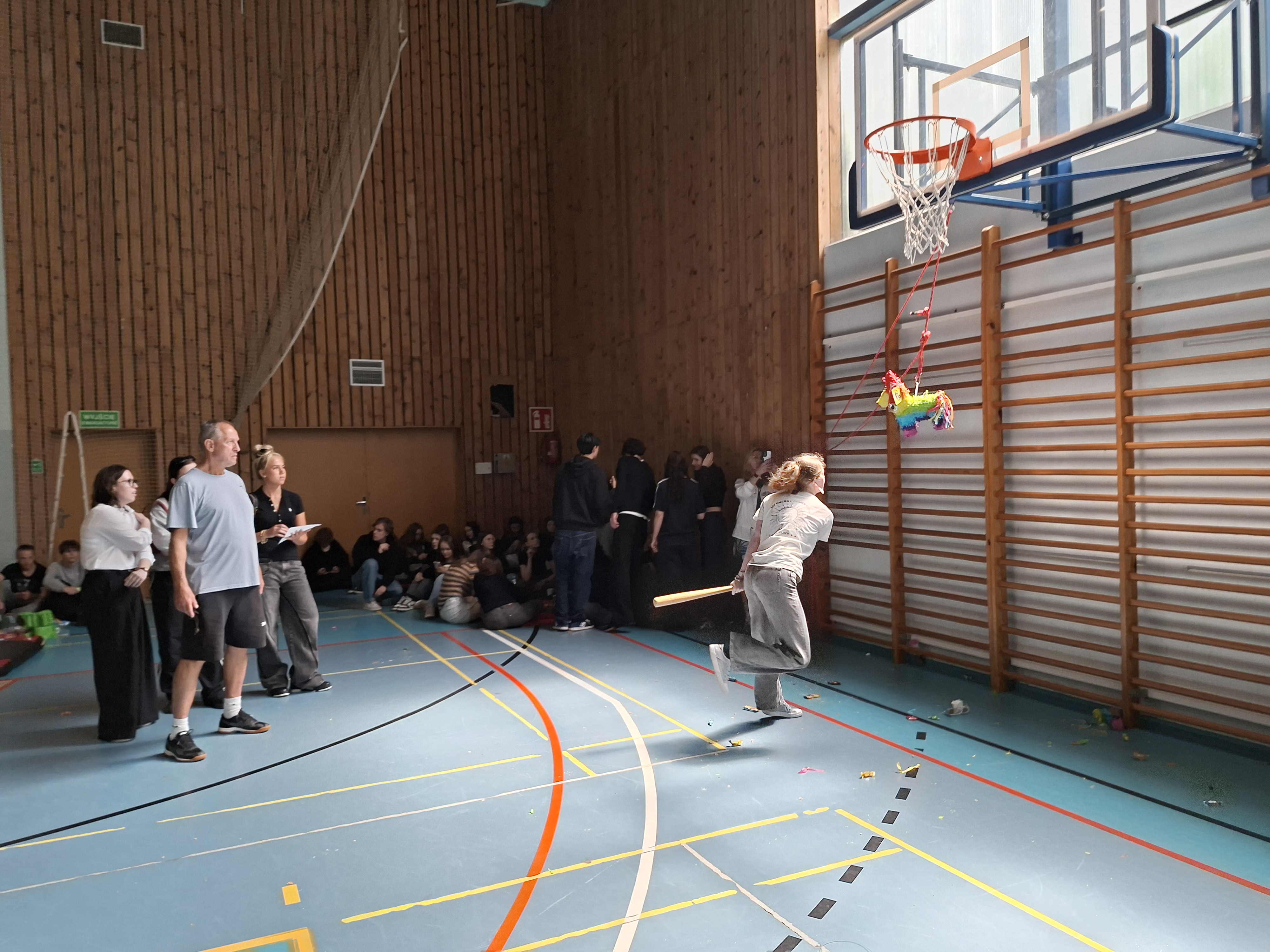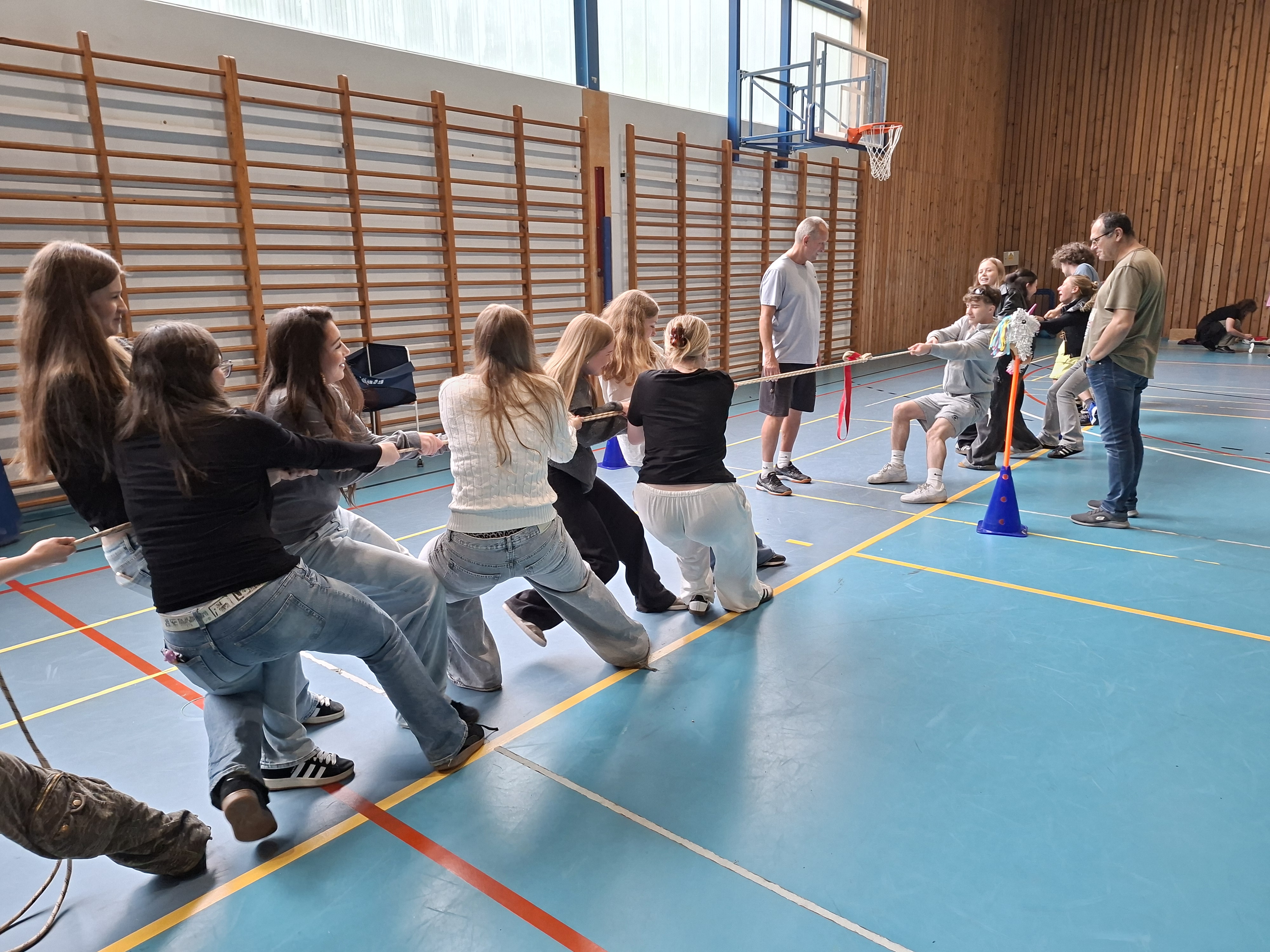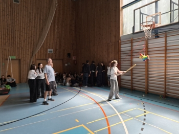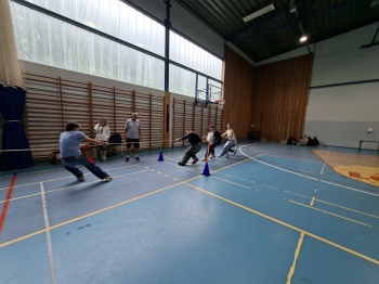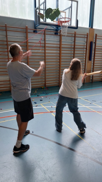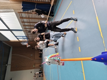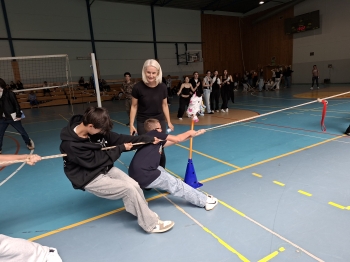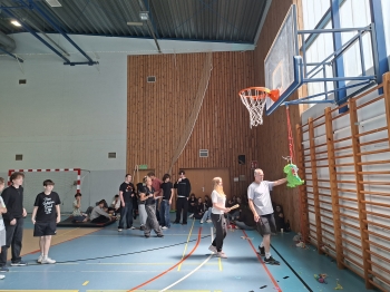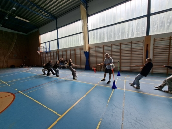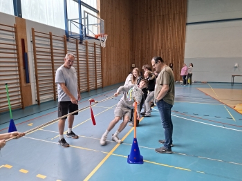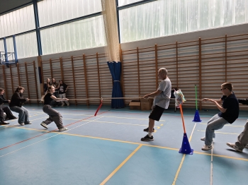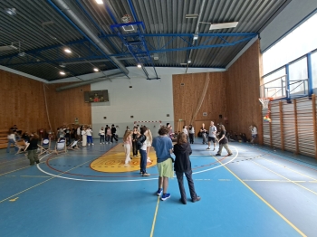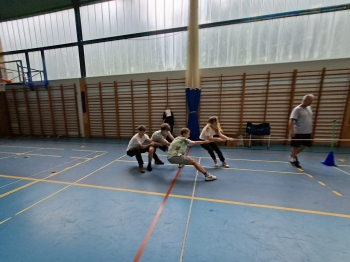 Dzisiaj świetnie się bawiliśmy. Przeżyliśmy dreszczyk emocji czekając w kolejce do losowania na loterii fantowej. Niczym Sherlock Holmes identyfikowaliśmy Duże dziś Dzieci na zdjęciach sprzed lat. Były fantastyczne bańki wielkości asteroidy unoszące się nad naszym LO. Razem z klasą pomimo niepogody piknikowaliśmy na sali gimnastycznej. Nasi trenerzy zorganizowali nam fajne zawody klasowe, a na koniec zagraliśmy z nimi mecz siatkówki. Pan Marcin specjalnie zwolnił się z pracy, żeby zagrać z uczniami. Ksiądz Łukasz postarał się, aby być z nami. Nie było słońca na niebie, ale Duże Dziecko było dzisiaj szczęśliwe i uśmiechnięte od ucha do ucha, przesłodzone watą cukrową degustowaną bez limitów. Ten Dzień Dużego Dziecka, jak różowa chmurka będzie unosił się w naszej pamięci.