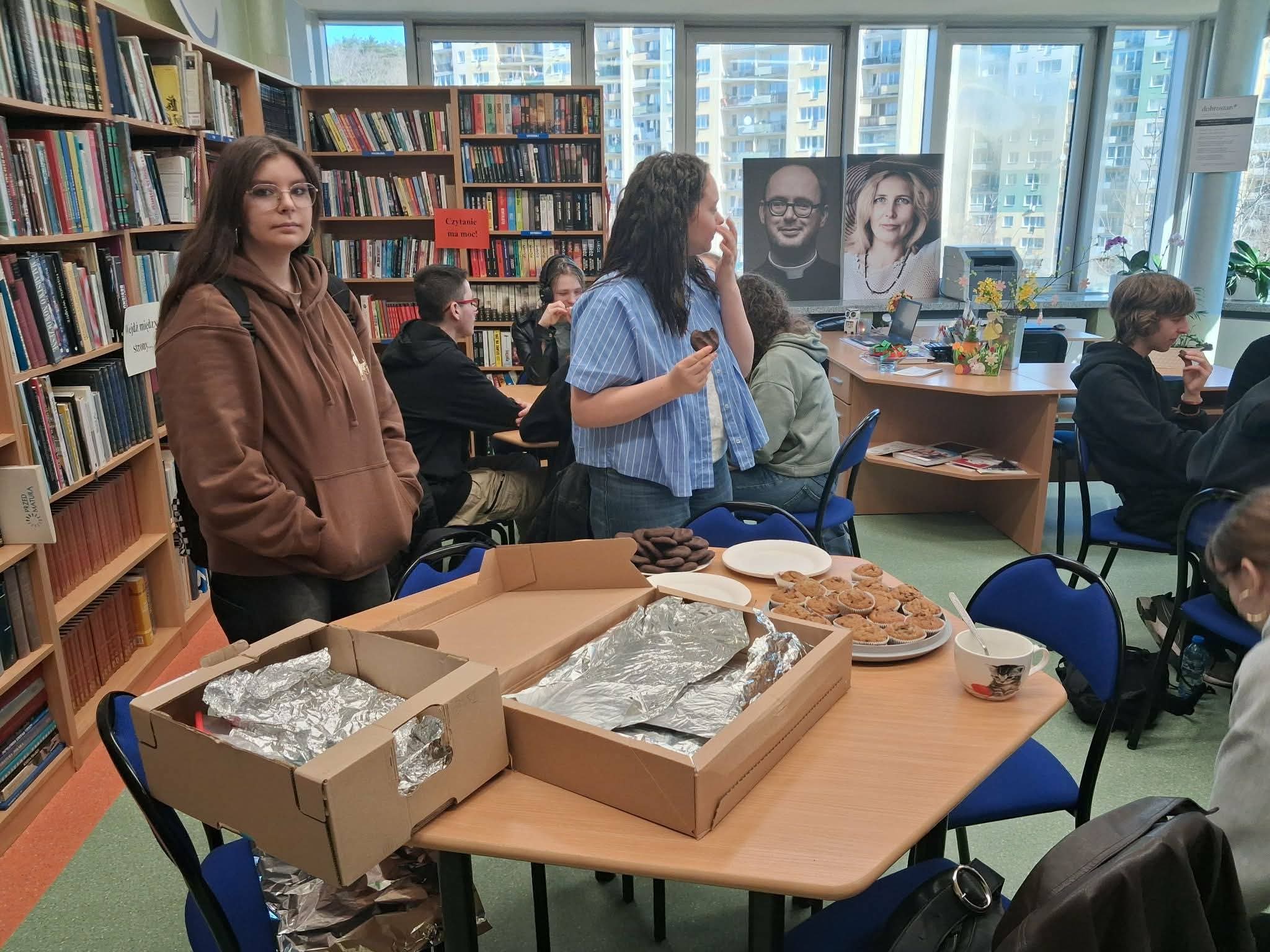 Dodatkowo, na korytarzach panowała bardzo przyjazna atmosfera. Uczniowie pełnili rolę przewodników, oprowadzając gości po szkole oraz opowiadając o codziennych zajęciach i życiu w liceum. W specjalnie przygotowanej stołówce można było posilić się domowymi wypiekami i napojami, co sprzyjało integracji i rozmowom.