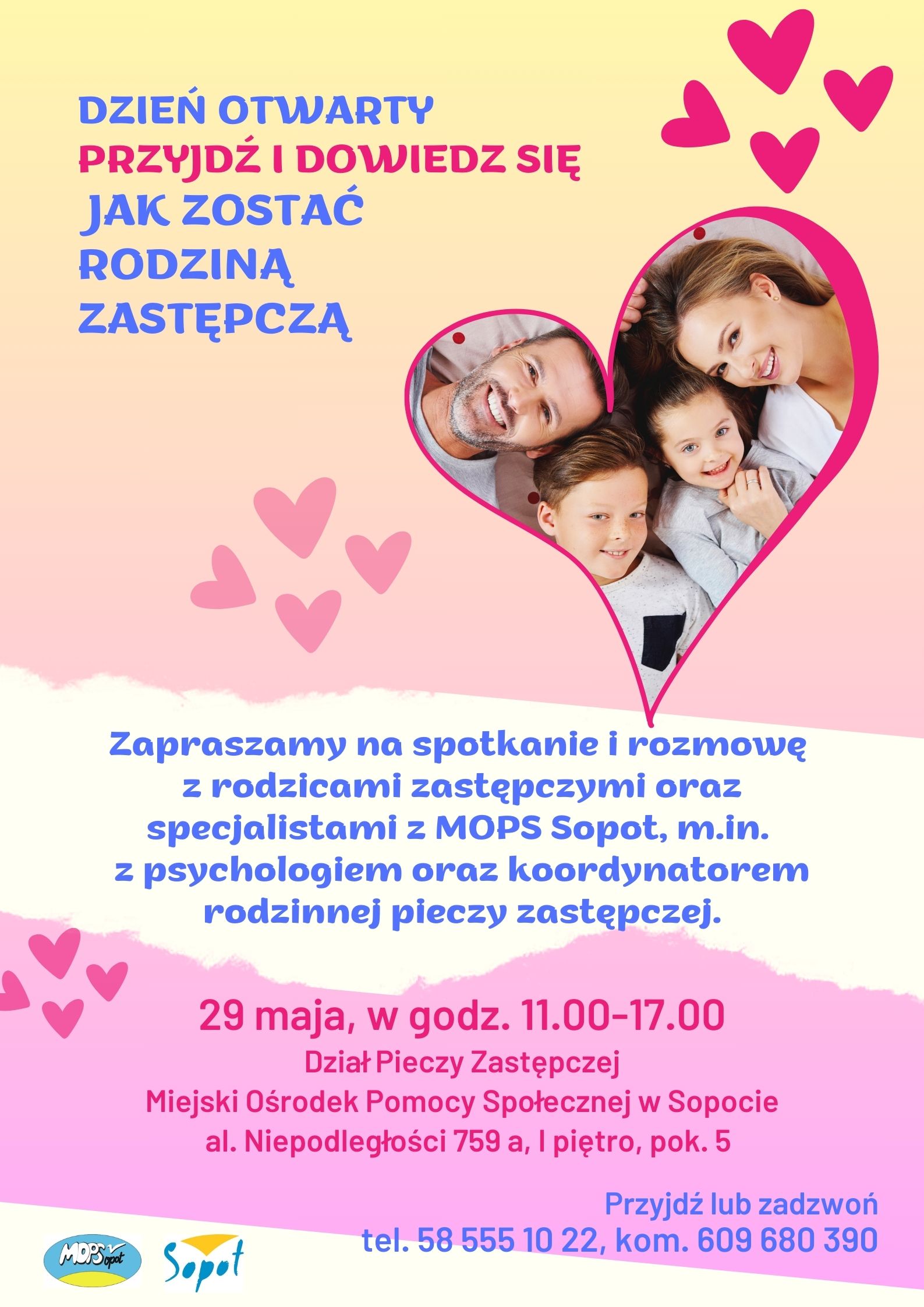 Zapraszamy 29 maja, w godz. 11.00-17.00 do Działu Pieczy Zastępczej MOPS Sopot, al. Niepodległości 759 a, I piętro, pok. 5.
