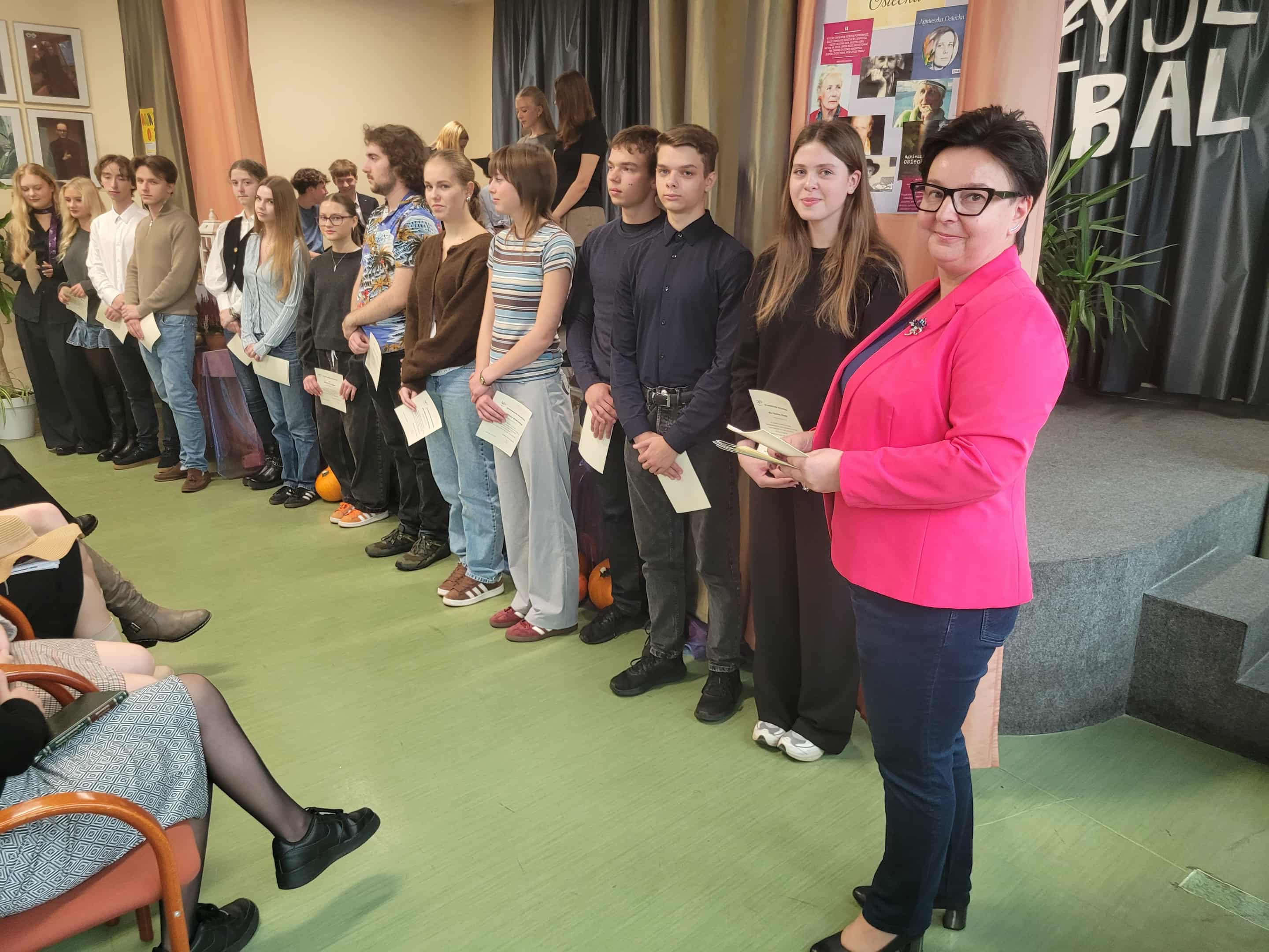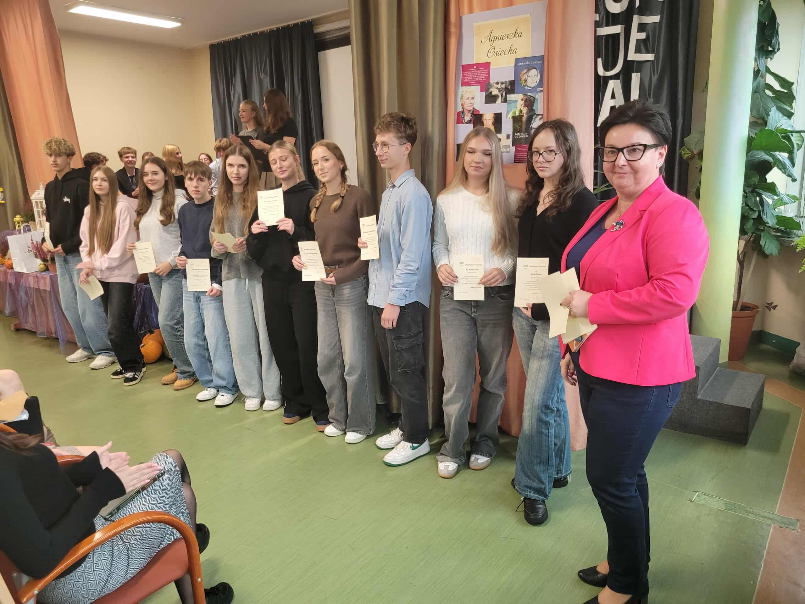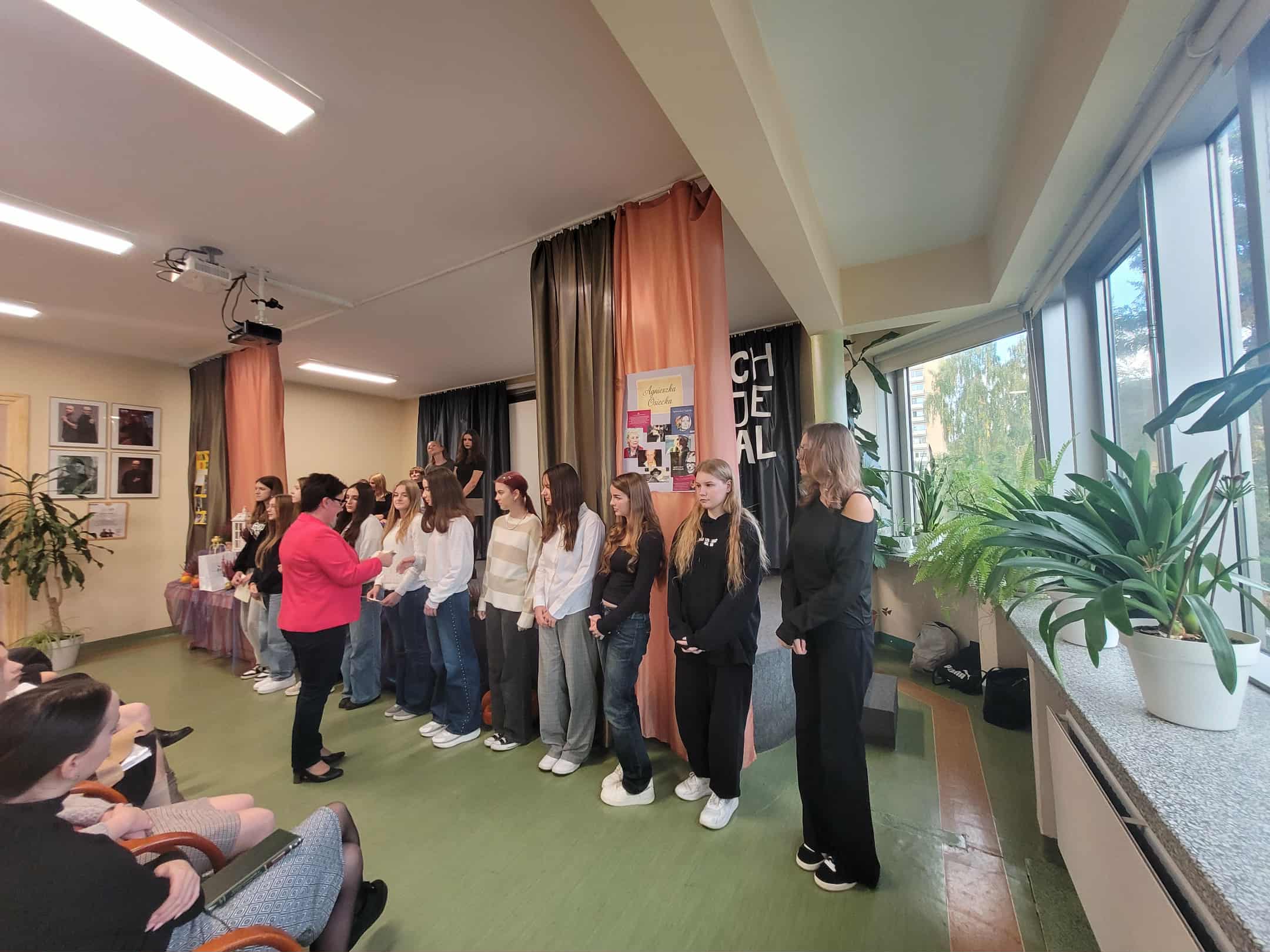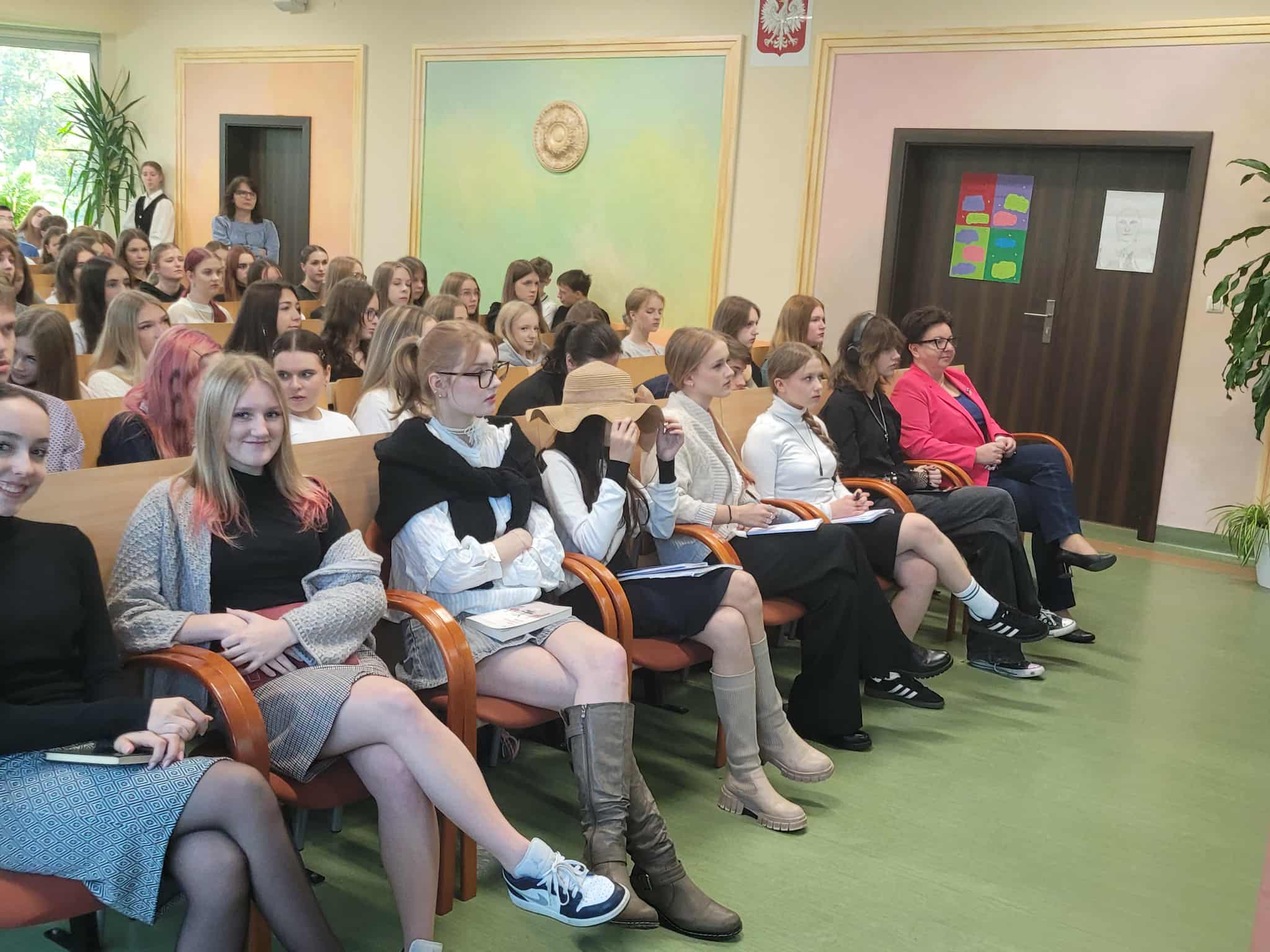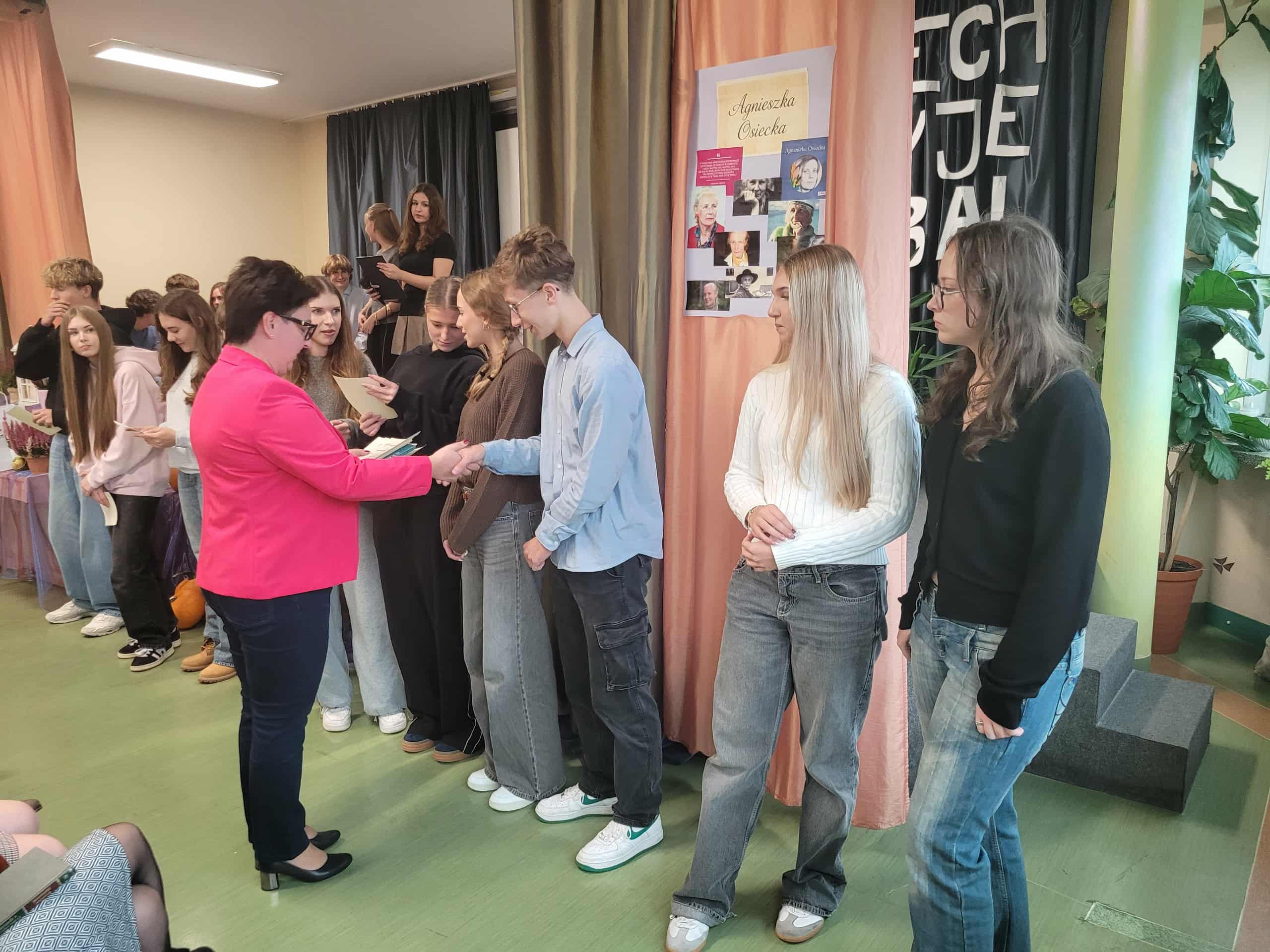 7 października 2025 roku odbył się uroczysty apel z okazji Dnia Patronki naszej Szkoły. Klasy pierwsze zaangażowały się w organizację tego ważnego wydarzenia: była prezentacja biografii Agnieszki Osieckiej, recytowano najpopularniejsze Jej wiersze i zaprezentowano pokaz mody przy dźwiękach znanej muzyki ze słowami poezji autorki. Na koniec Pani Dyrektor uhonorowała nagrodą wybitnych stypendystów naszej szkoły w kategoriach: frekwencja, wyniki naukowe oraz sportowe.