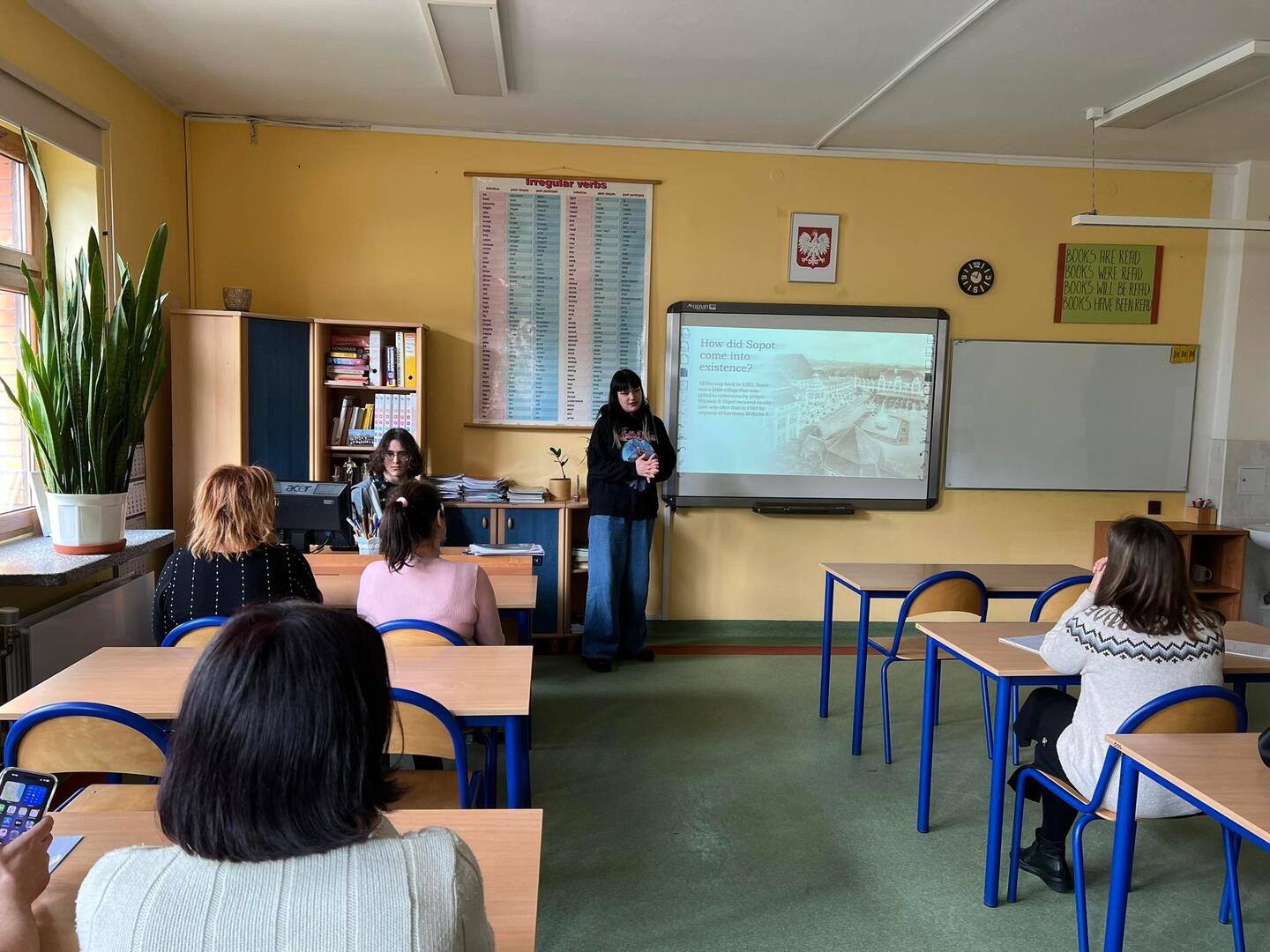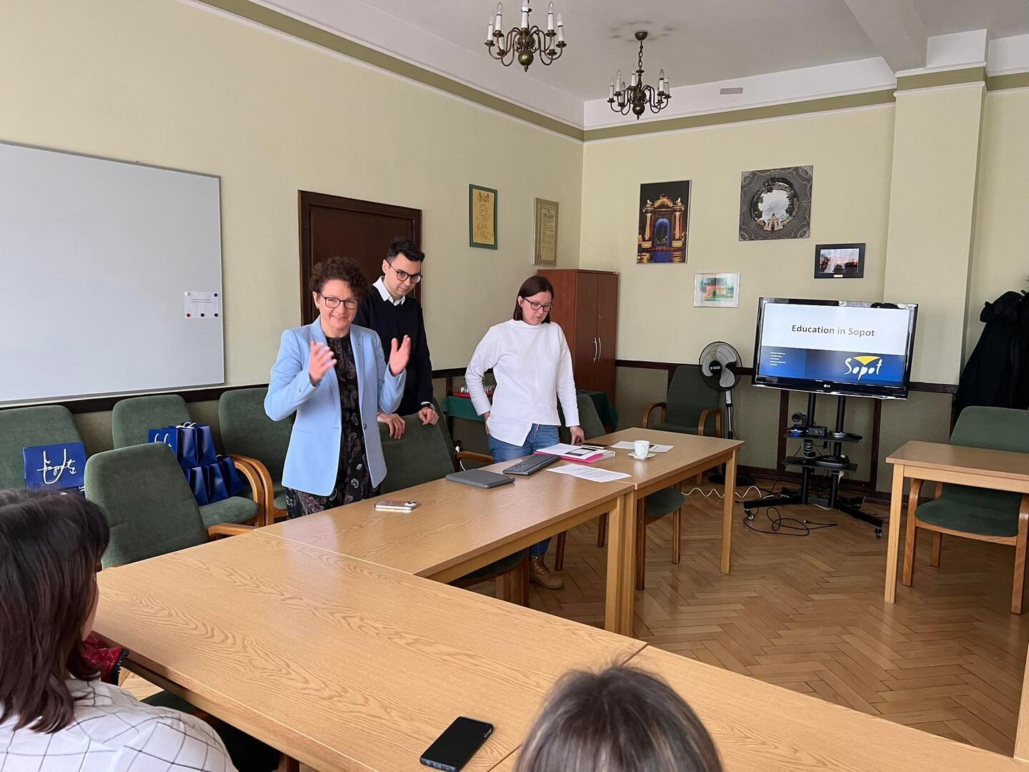 W dniach 27 - 31 marca gościmy w naszej szkole partnerów projektu „DigitALL Schools” w ramach programu Erasmus+. Pierwszy dzien upłynął na spotkaniu w Urzędzie Miasta Sopotu, gdzie Pani wiceprezydentka Magdalena Czarzyńska - Jachim wraz z wicedyrektorem Wydziału Oświaty Panem Jakubem Pilarskim oraz Panią Aleksandrą Antoniewicz przedstawili gościom z Hiszpanii, Słowenii, Węgier, Turcji i Finlandii założenia sopockiej edukacji oraz rozwiązania dotyczące wykorzystania ICT w szkołach. Wizytę w szkole rozpoczęło spotkanie z Panią dyrektor Danutą Klapper-Szczucką, a następnie nasi goście zwiedzali szkołę, odwiedzali uczniów na zajęciach, podczas których było sporo okazji do porozmawiania i poćwiczenia języka angielskiego oraz hiszpańskiego w praktyce. Popołudnie spędziliśmy na zwiedzaniu Sopotu, a wieczor zakończyliśmy miłą kolacją. Przed nami kolejne dni