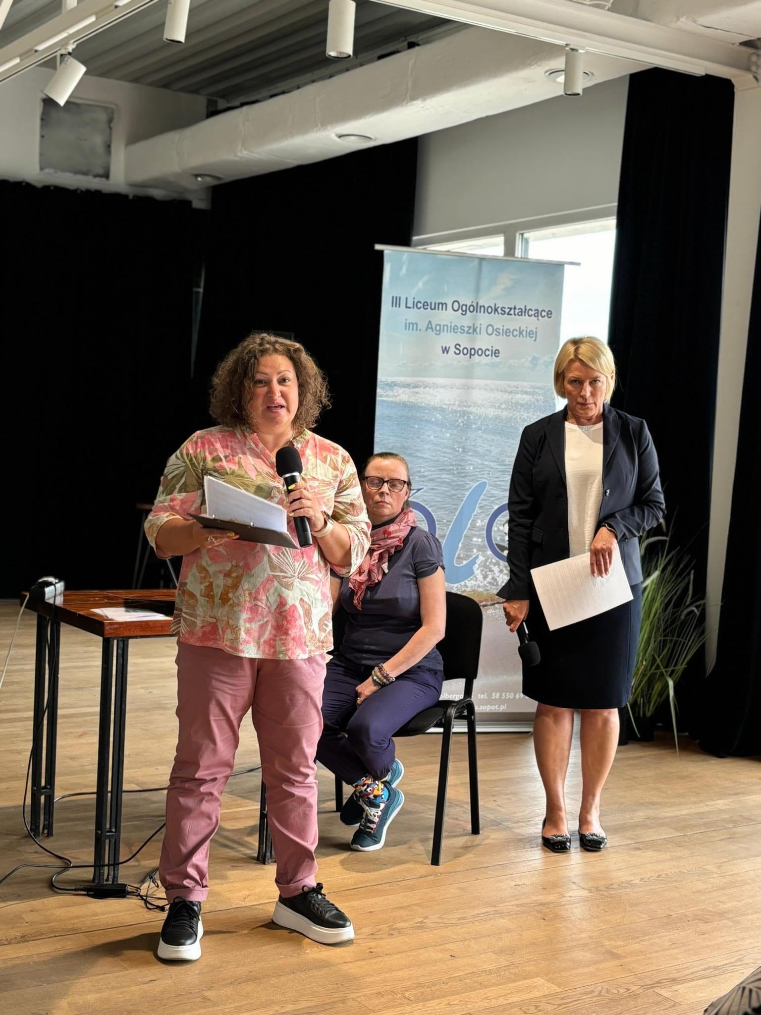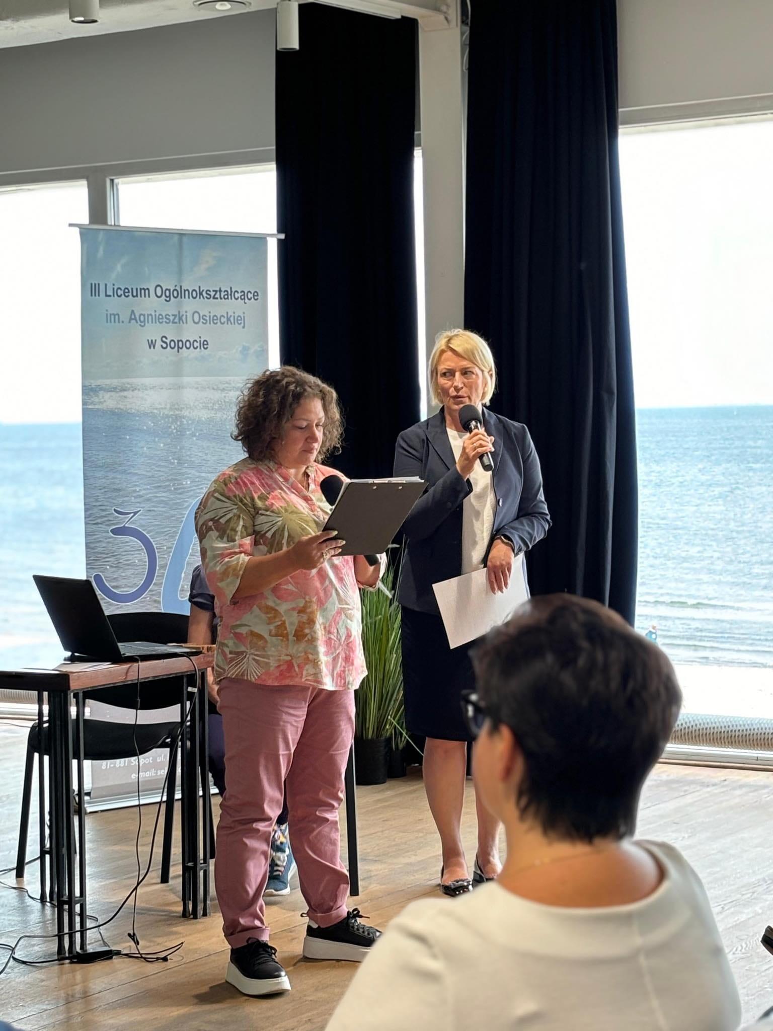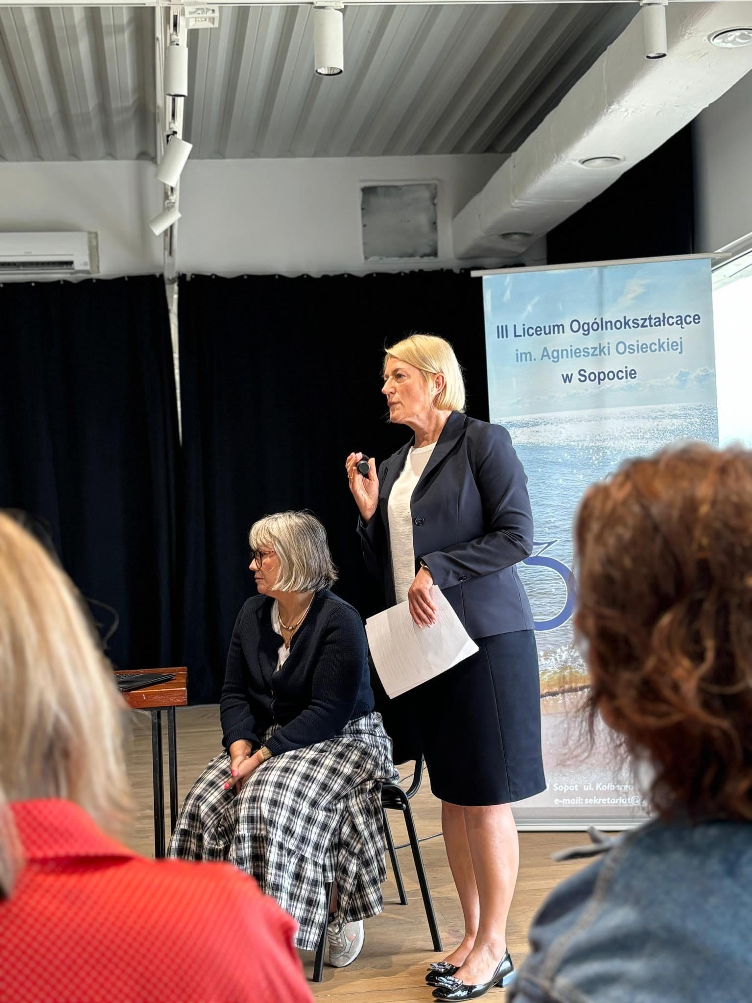 Dzisiejsza konferencja upowszechniająca „We are all Europe” poświęcona szeroko pojętej edukacji włączającej to owoc współdziałania Sopockiego Ośrodka Doskonalenia Nauczycieli oraz 3 Liceum Ogólnokształcącego w Sopocie realizującego projekt Erasmus+, który zakłada szkolenie nauczycieli w zakresie szeroko pojętej inkluzji w szkołach europejskich. Pani Beata Kapela-Bagińska koordynatorka projektu i doradczyni w SODN zaprezentowała założenia projektu polegające na inkluzji w zakresie metod pracy z uczniami o specjalnych potrzebach edukacyjnych, równości płci oraz obywatelstwa europejskiego. Dzięki partnerom z Portugalii i Bułgarii nauczyciele polskich szkół mogli poznać rozwiązania zastosowane w innych krajach i porównać je z tymi, które już znają. Gościniami wydarzenia były: Pani profesor UG Jolanta Rzeźniczak-Krupa oraz Pani doktor Joanna Doroszuk, które zaprezentowały wyniki badań nad inkluzywnością w polskich szkołach. Doradczynie SODN - Anna Domachowska i Maria Eiselt przedstawiły zagadnienia włączania uczniów w edukacji wczesnoszkolnej i obywatelskiej. Zagadnienie kształcenia obywatelskości dopełniło wystąpienie nauczycielek z Zespołu Szkół Nr 8 w Gdańsku - Magdaleny Łukasiak i Elżbiety Jankowskiej-Pietras, które omówiły projekt „Gdańskich lekcji obywatelskich”. Dziękujemy za Państwa obecność i zainteresowanie zaproponowaną przez nas problematyką.
