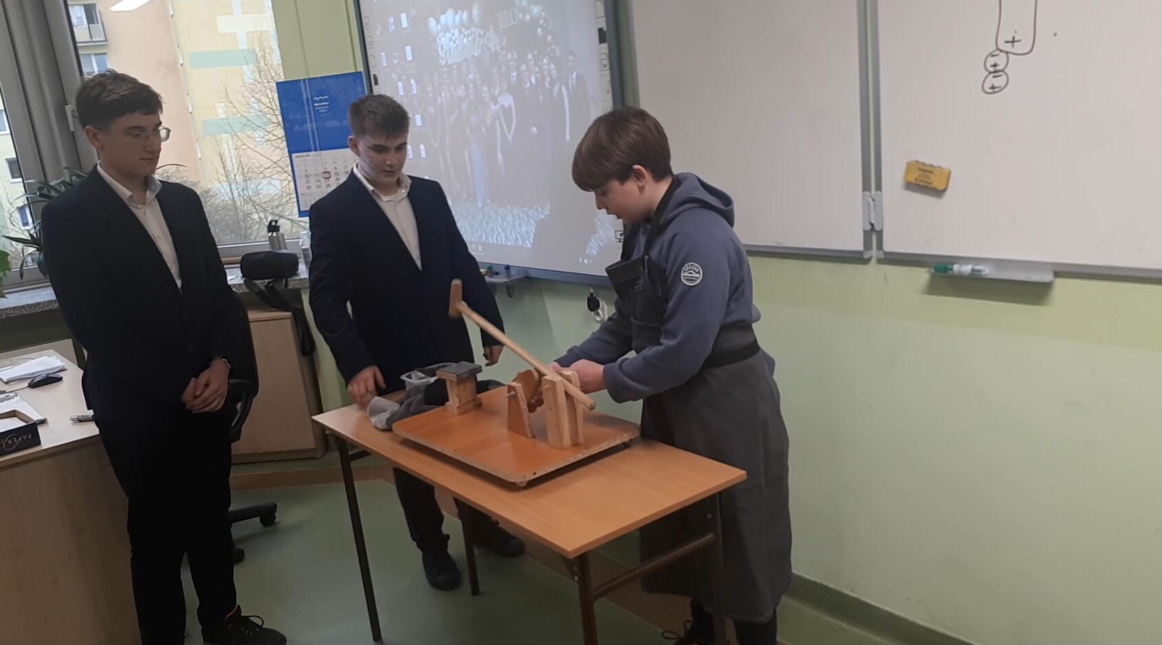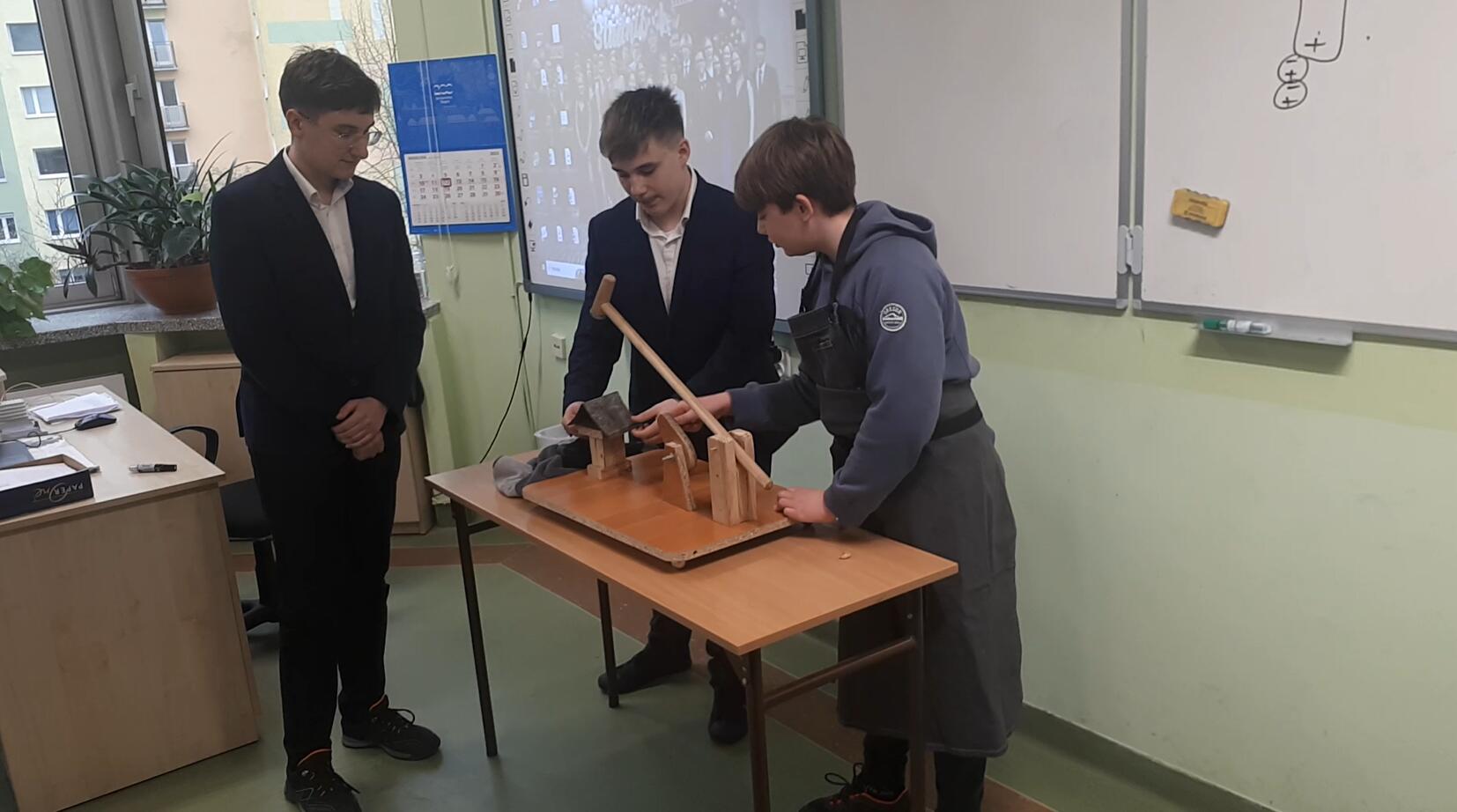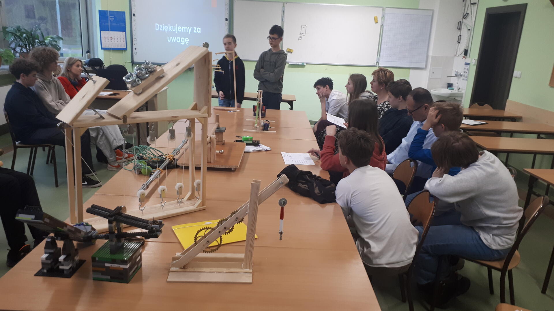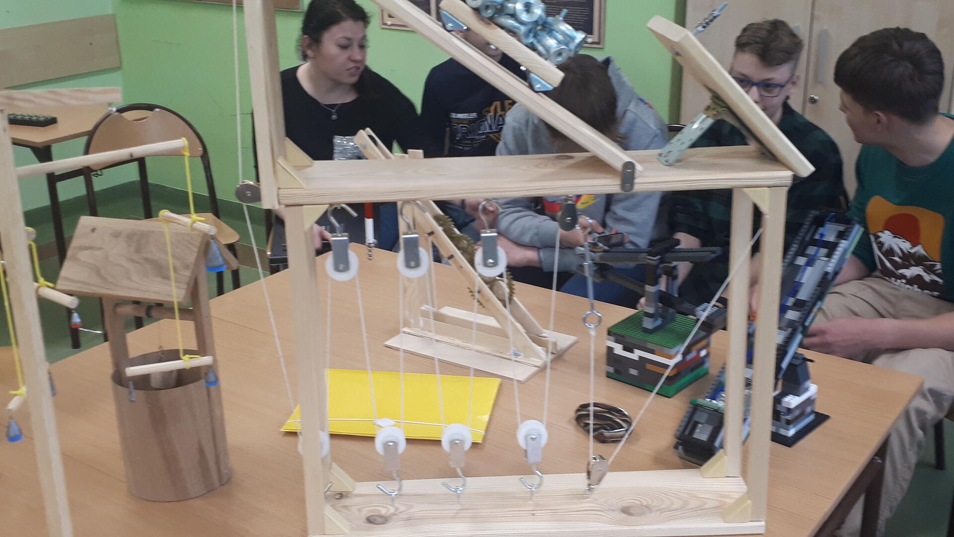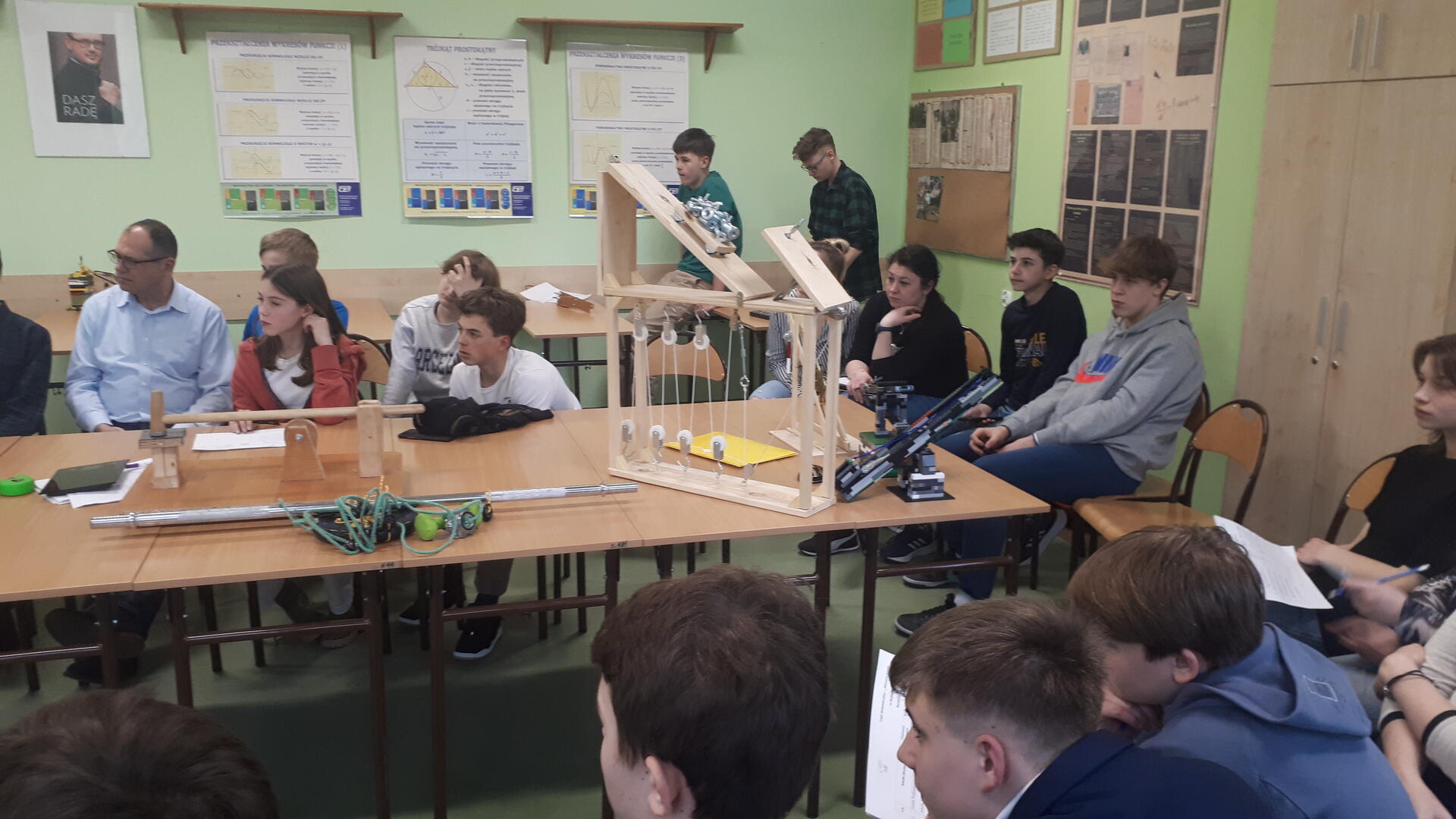 W piątek 14 kwietnia odbył się Konkurs „Matematyka w Fizyce” dla uczniów szkół podstawowych. Tematem przewodnim tegorocznej edycji były Maszyny proste w działaniu. Uczestnicy, zmierzyli się z testem sprawdzającym wiedzę, a następnie prezentowali zaprojektowane i skonstruowane przez siebie urządzenia działające na zasadzie wykorzystania jednej lub kilku maszyn prostych.