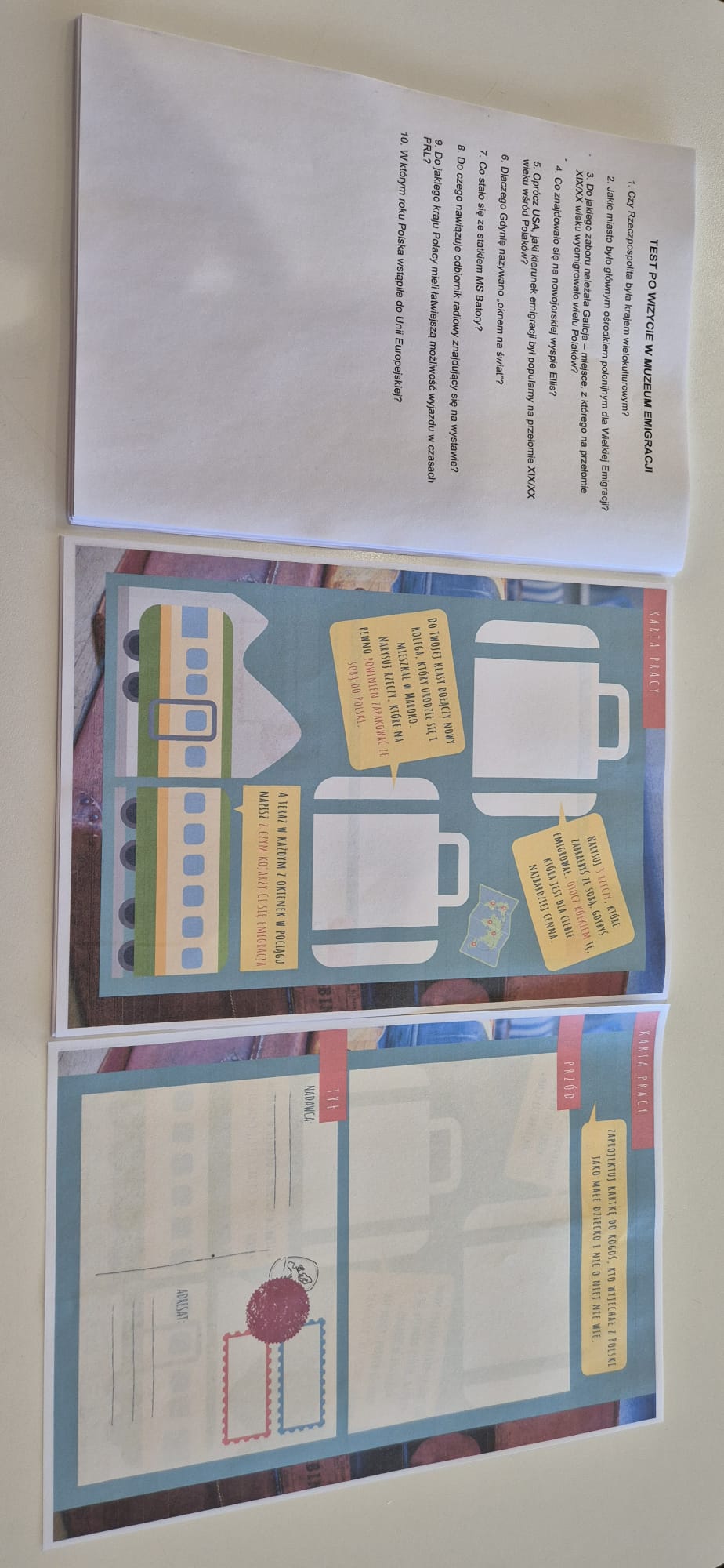 Po warsztatach, wzbogacaliśmy swoją wiedzę z historii. Podczas zwiedzania Muzeum szukaliśmy odpowiedzi do pytań z kart pracy. Następnie wykonaliśmy zadanie, które nas zachęciło do refleksji na temat emigracji. Dzisiejsza wizyta w Muzeum Emigracji była dla nas bardzo pouczająca.