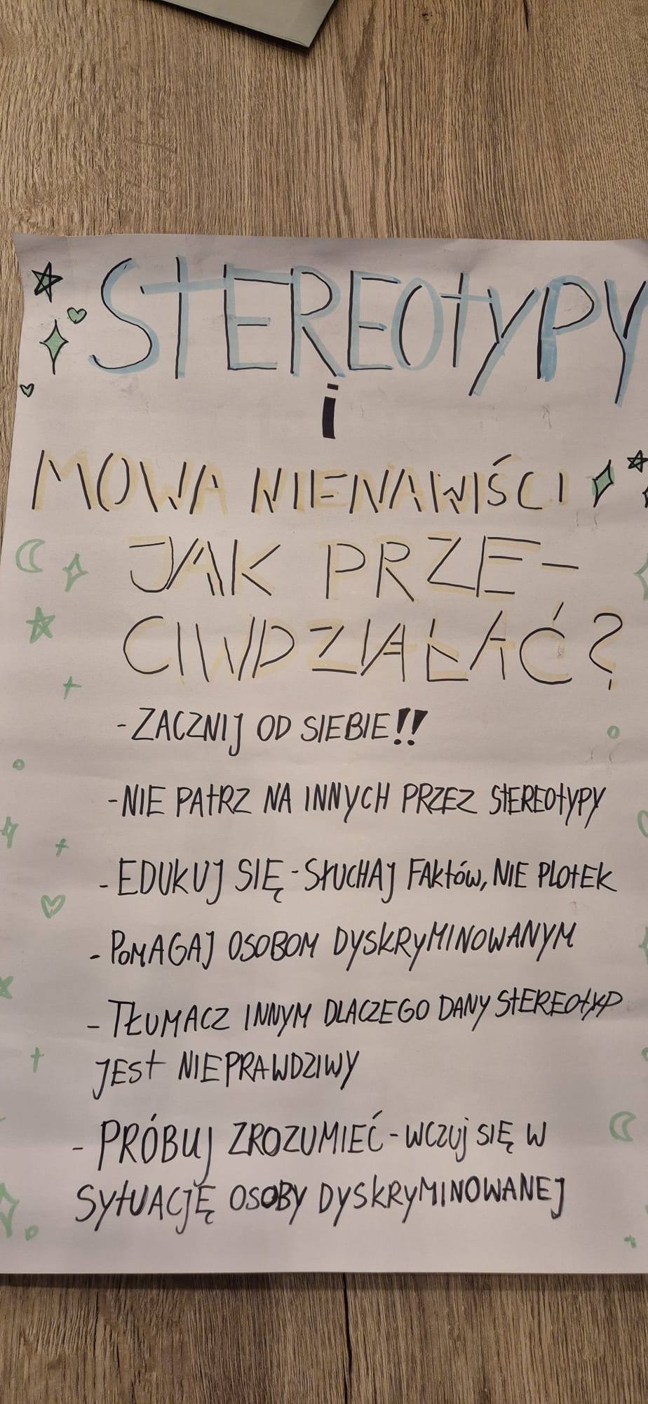 We wtorek 17 grudnia klasa 3A uczestniczyła w bardzo ciekawych warsztatach antydyskryminacyjnych#naucz się reagować. Uczniowie pogłębiali wiedzę na temat dyskryminacji oraz jej mechanizmów. Mieli okazję przekonać się jak wielką moc, zarówno pozytywną jak i negatywną, mają słowa oraz poćwiczyć reagowanie na mowę nienawiści i wykluczenia w grupie.