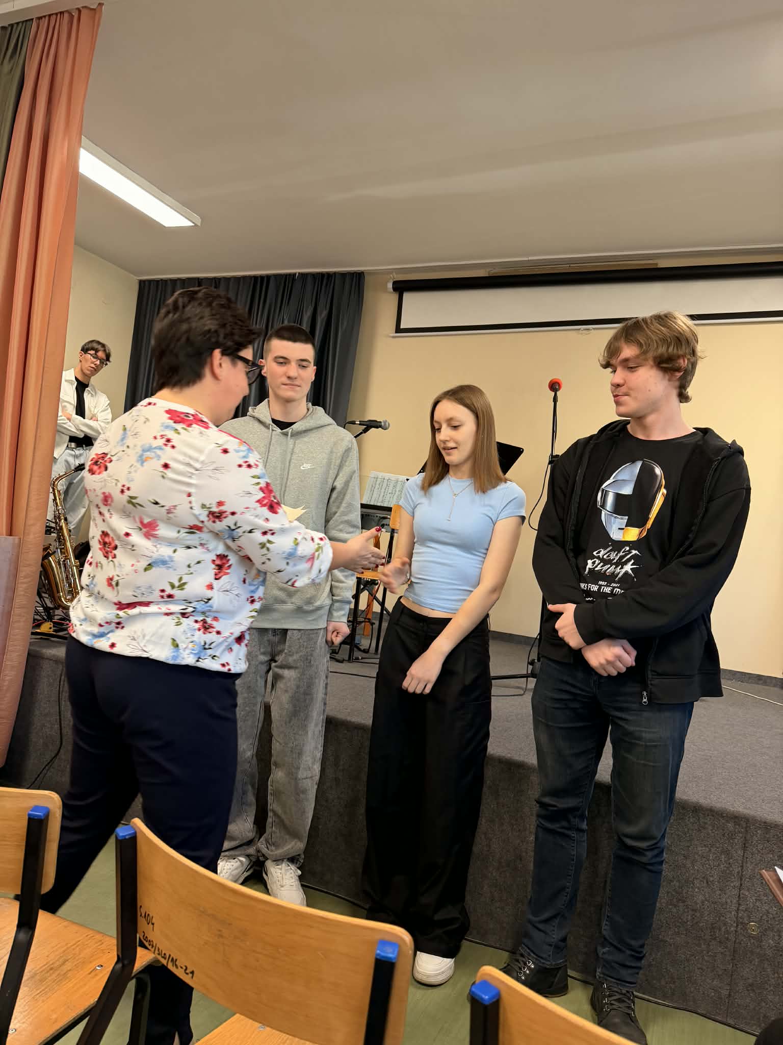 Przy okazji koncertu Pani Dyrektor rozdała stypendia za pierwszy semestr roku 2025/26.