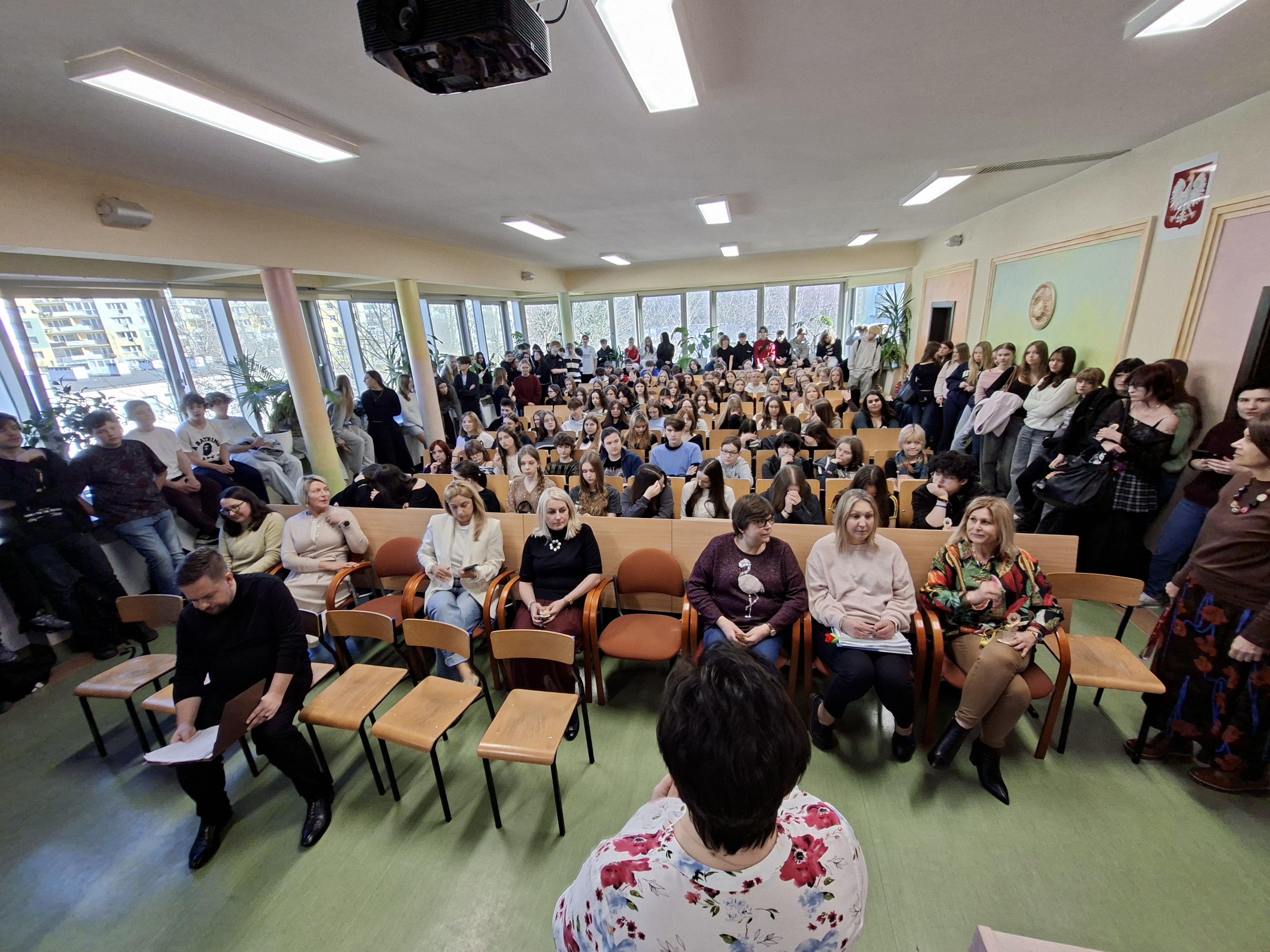Dziś w Auli ks. Kaczkowskiego odbył się koncert filozoficzny, z okazji Dnia Kobiet. Lirycznie i z humorem. Po to, aby wyrazić wdzięczność i szacunek wszystkim kobietom.  Nieoczywiste połączenia i refleksje. Renata Przemyk: "Babę zesłał Pan", a Baruch Spinoza. Marek Grechuta: "Będziesz moją Panią", a Platon. Adele: "Someone like You", a Fryderyk Nietzsche. Stephen Sanchez: "Until i found You" - Ed Sheeran: "Perfect" - Bad Bunny: "Baile Involvidable", a Henri Bergson. Męski i niesamowity zespół muzyczny - złożony z 7 naszych uczniów (4 utwory). Pan Paweł Kołodziejek i pan konserwator Jarek... (2 utwory). Opieka merytoryczna i nieoceniona pomoc: pani Małgorzata Tuptało i pani Jolanta Rulewska-Przybek. Konferansjerzy: Mateusz Powązka, Marcin Szmuniewski, Paweł Kołodziejek. Scenariusz koncertu: Paweł Kołodziejek oraz Raymi Uriona-Renes.