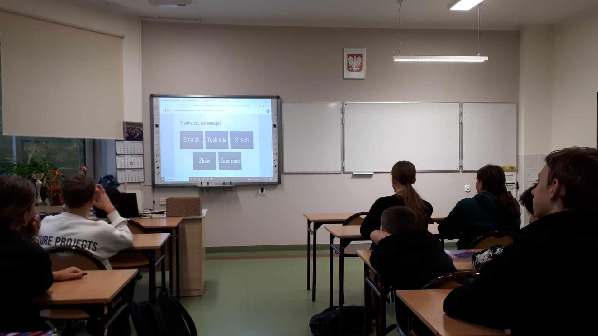 Spotkanie prowadził p. Tomasz Bilicki – nauczyciel i terapeuta pracujący z nastolatkami. Lekcja odbyła się w ramach Ogólnopolskiej Kampanii Dzieciństwo bez Przemocy.