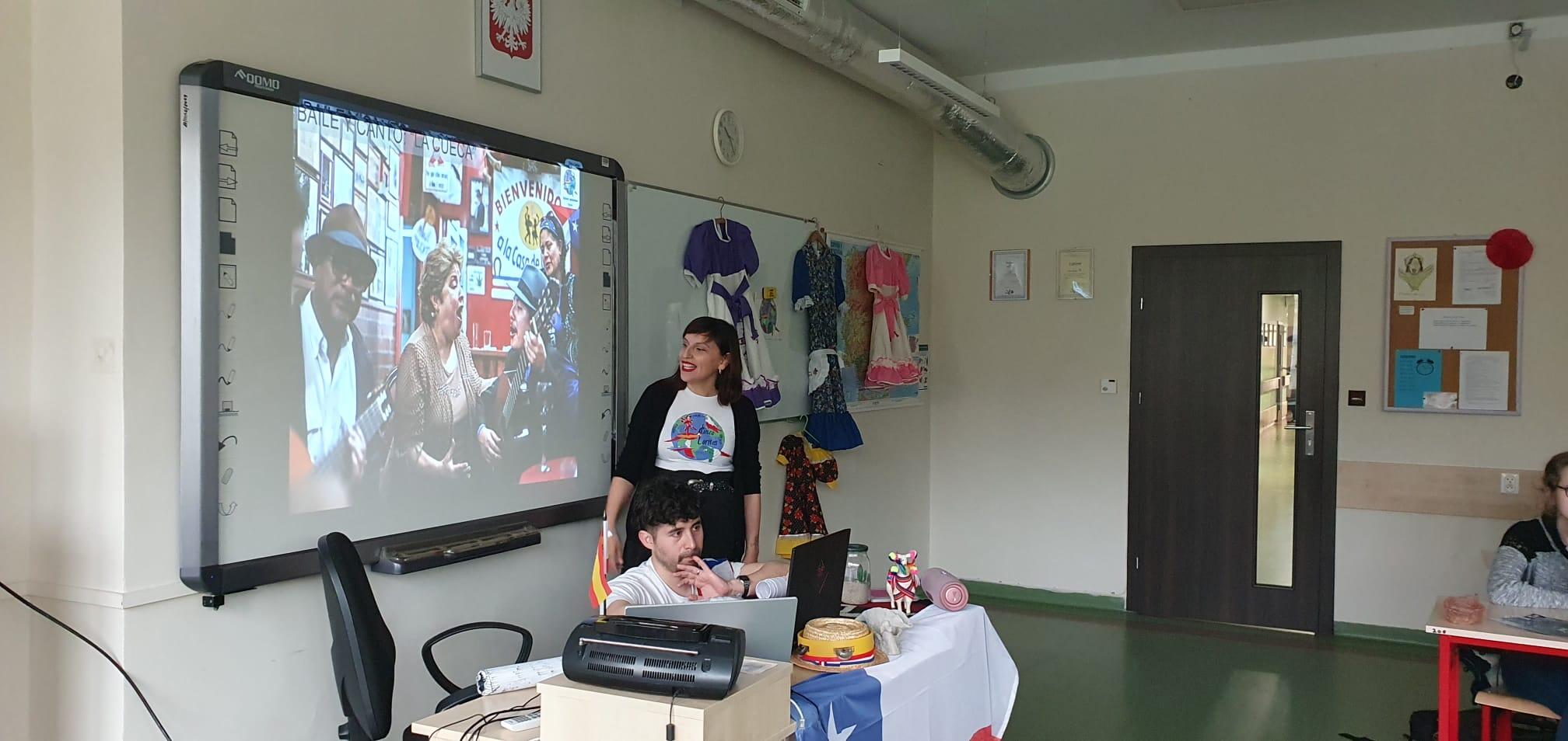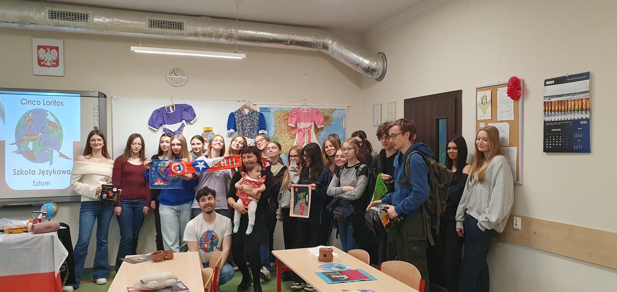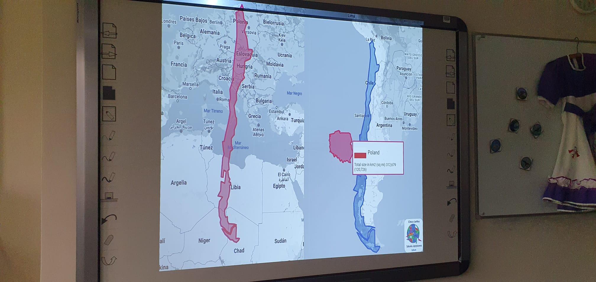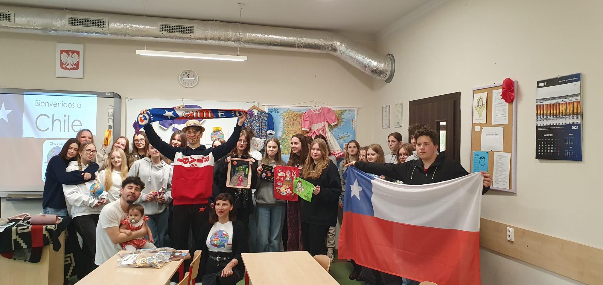 We wtorek 16 kwietnia klasy 1A oraz 2A miały przyjemność uczestniczyć w warsztatach "Lecimy do Chile". Zajęcia przeprowadzili rodowici Chilijczycy obecnie pracujący w szkole językowej Cinco Loritos w Sztumie. W ciągu godziny dowiedzieliśmy się bardzo dużo o tym odległym, ale bardzo ciekawym kraju. Sprawdziliśmy też swoją znajomość języka hiszpańskiego, ponieważ całe zajęcia były prowadzone w tym języku.