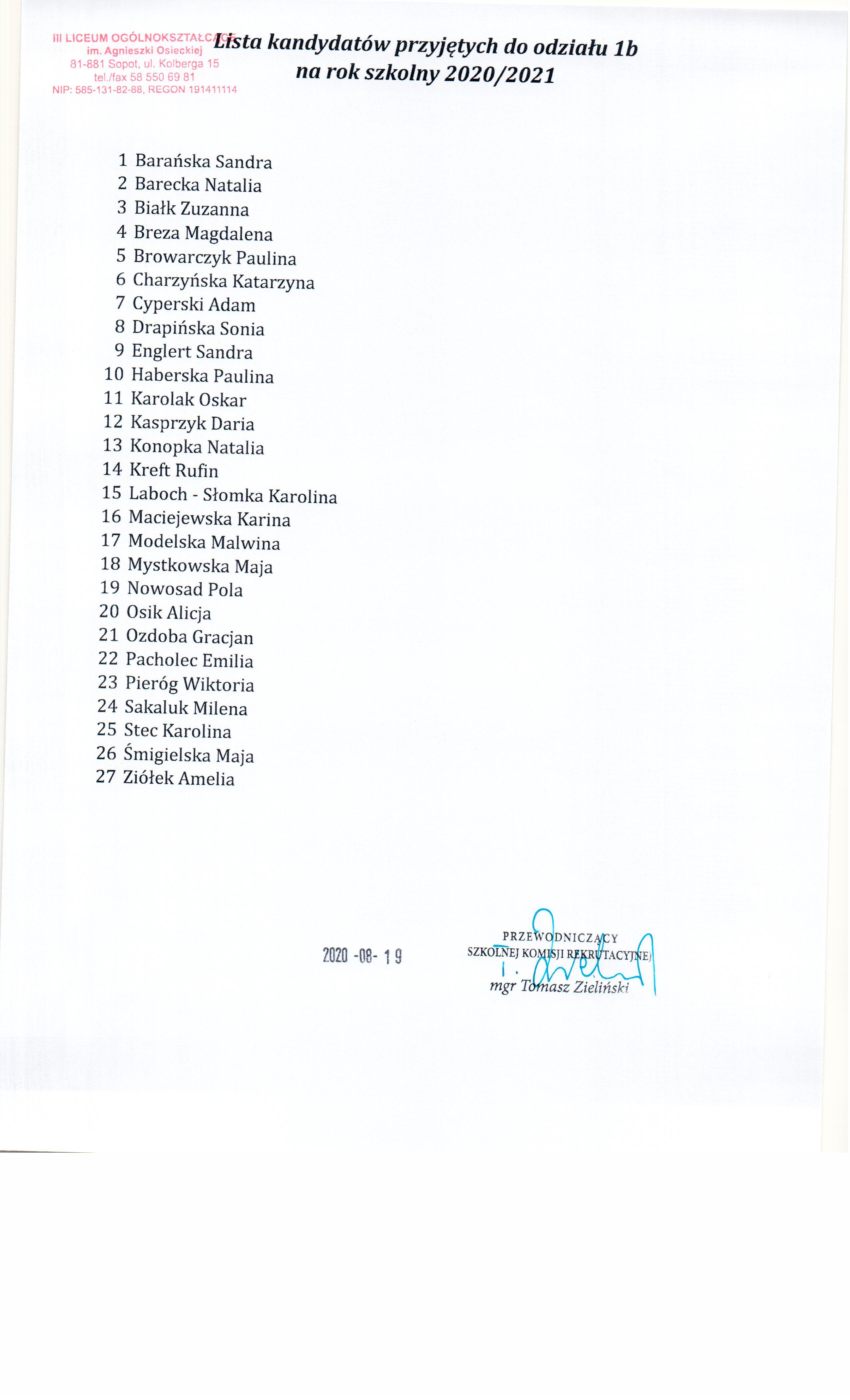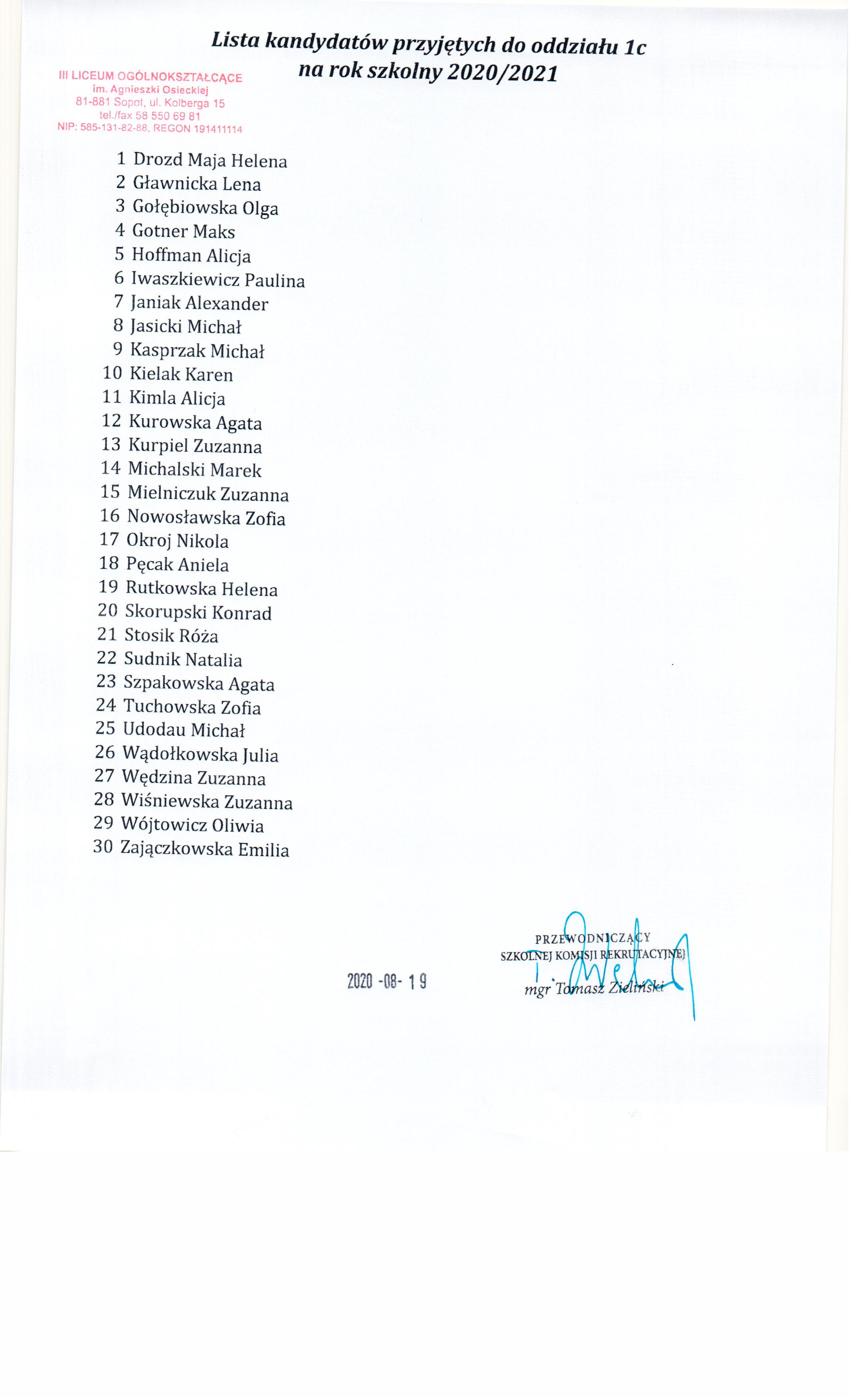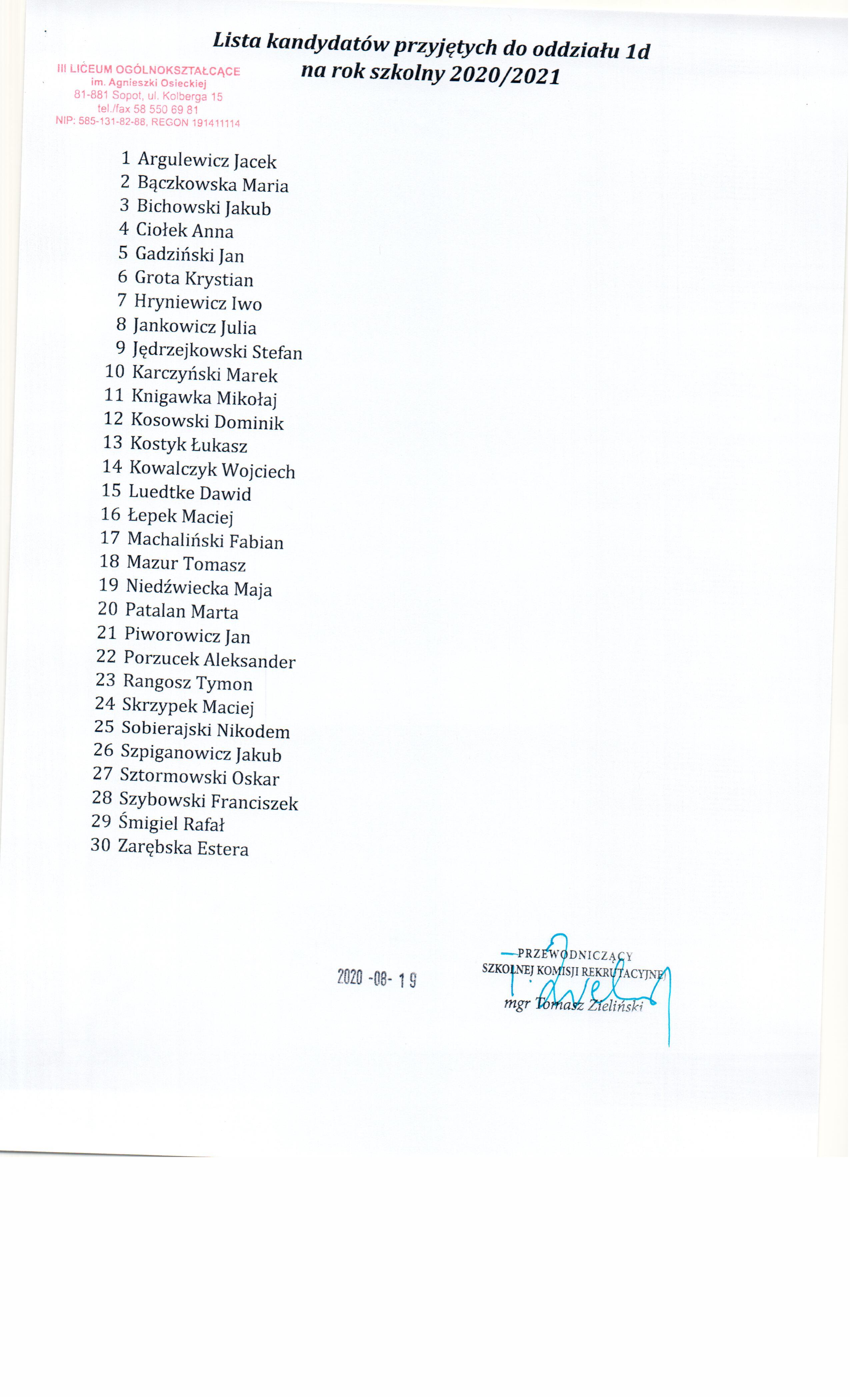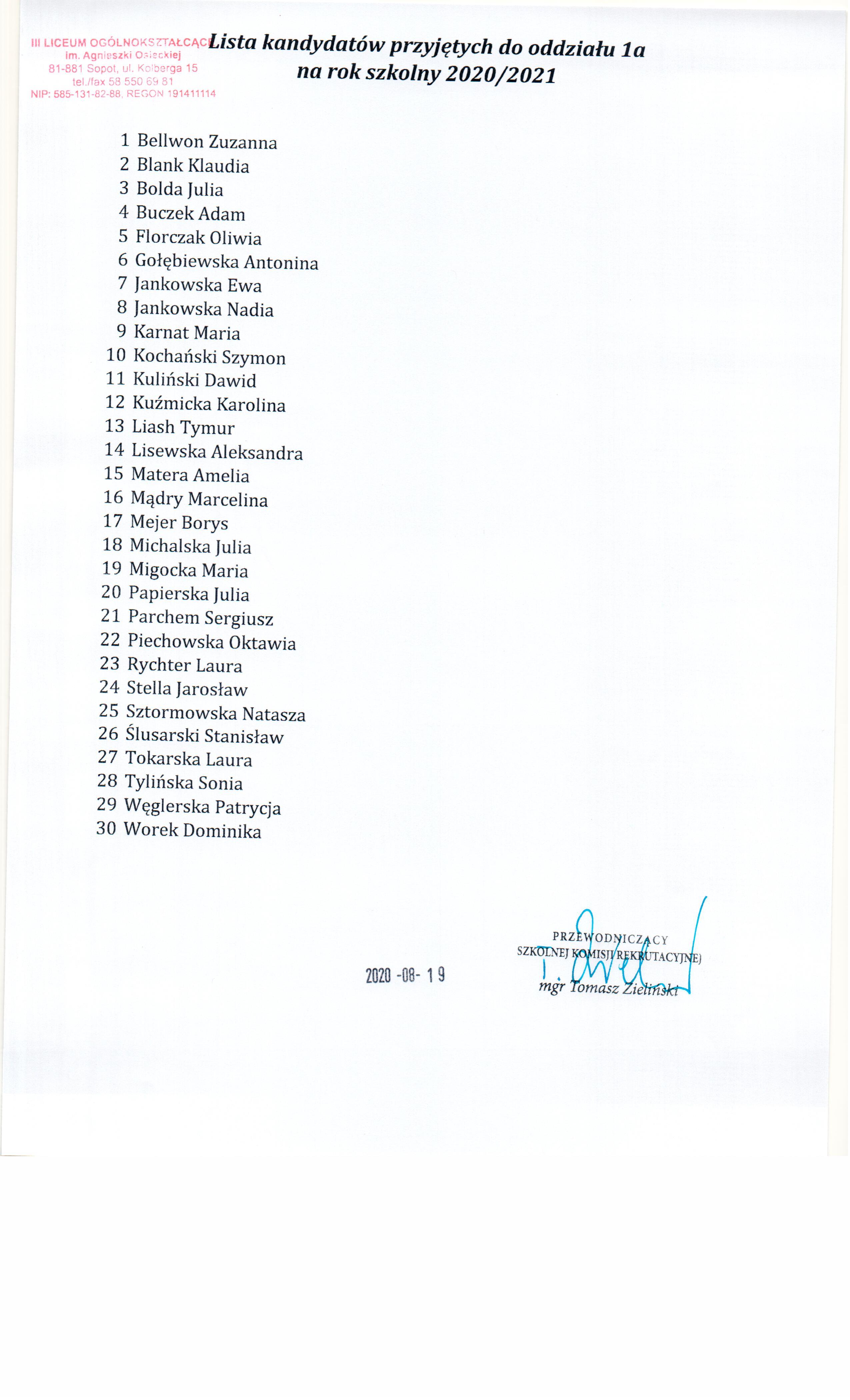 Lista kandydatów przyjętych do 3 Liceum Ogólnokształcącego w Sopocie