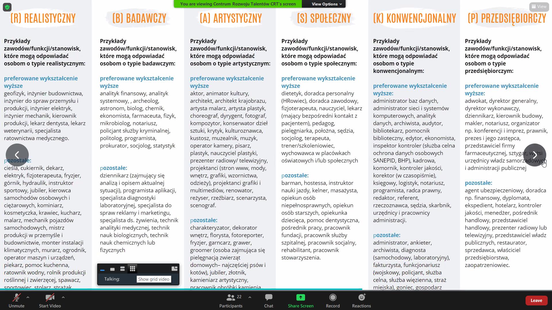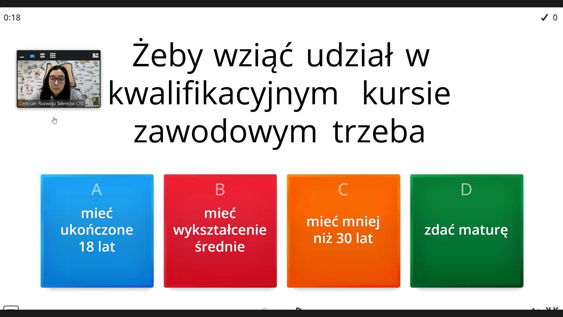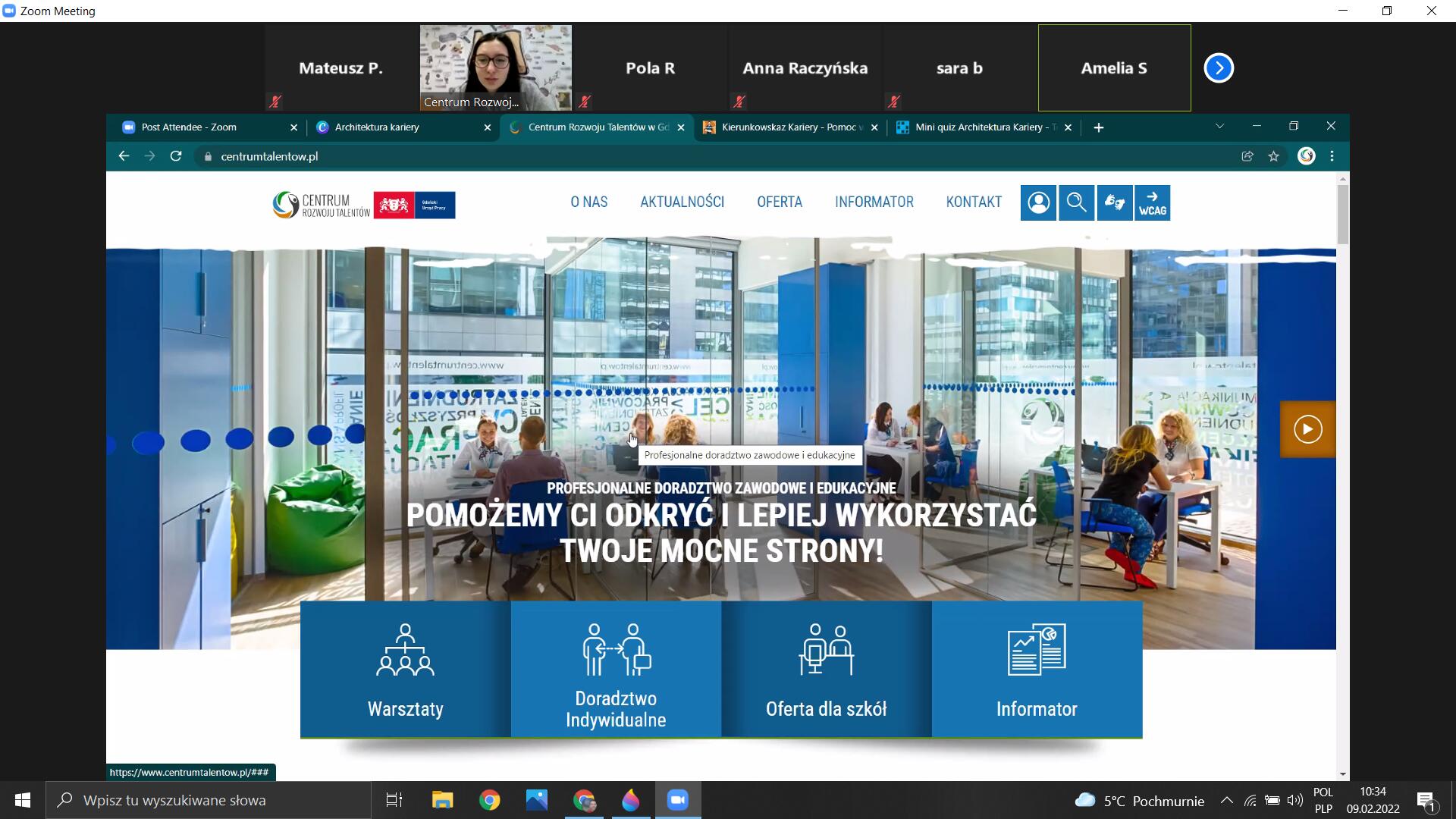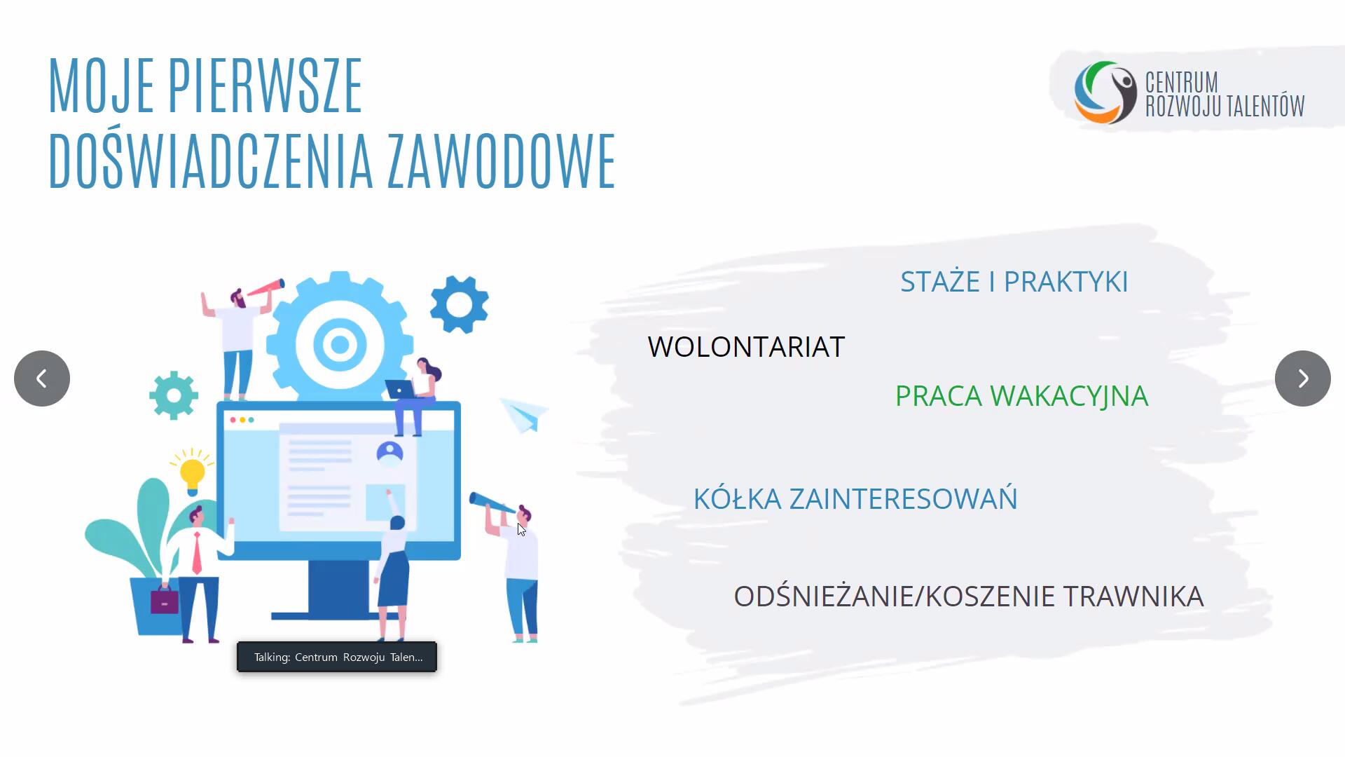 W dniu 9 lutego uczniowie klas maturalnych uczestniczyli w zajęciach online organizowanych przez Centrum Rozwoju Talentów z Gdańska. Maturzyści mogli dowiedzieć się o swoich kompetencjach, poznali jak i kiedy najlepiej zdobyć cenne doświadczenie po szkole i jakie są ścieżki dalszego rozwoju. Była to dla nich bezcenne wsprarcie w tak trudnych wyborach życiowych.