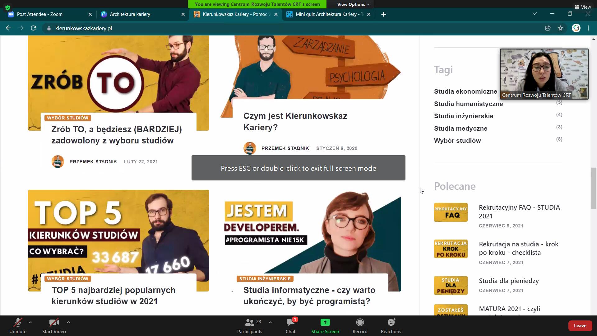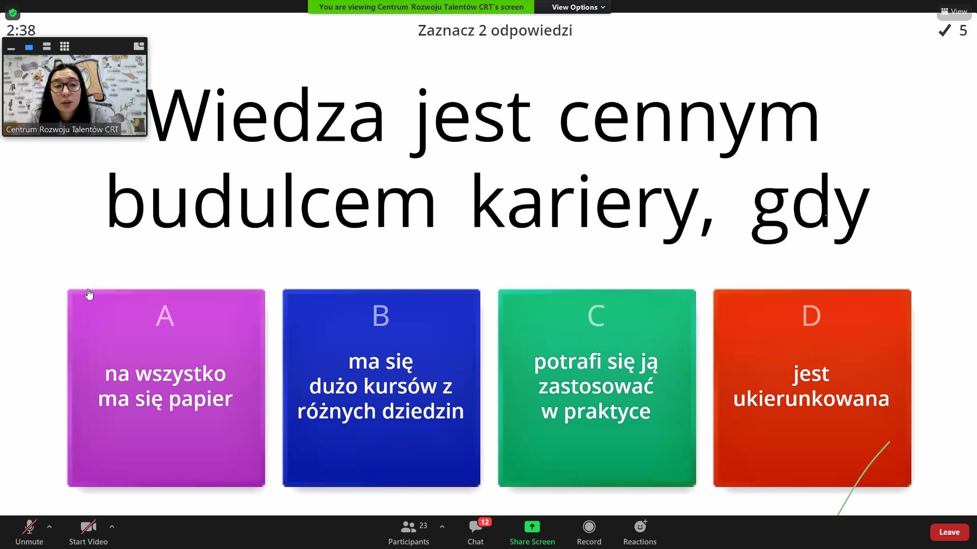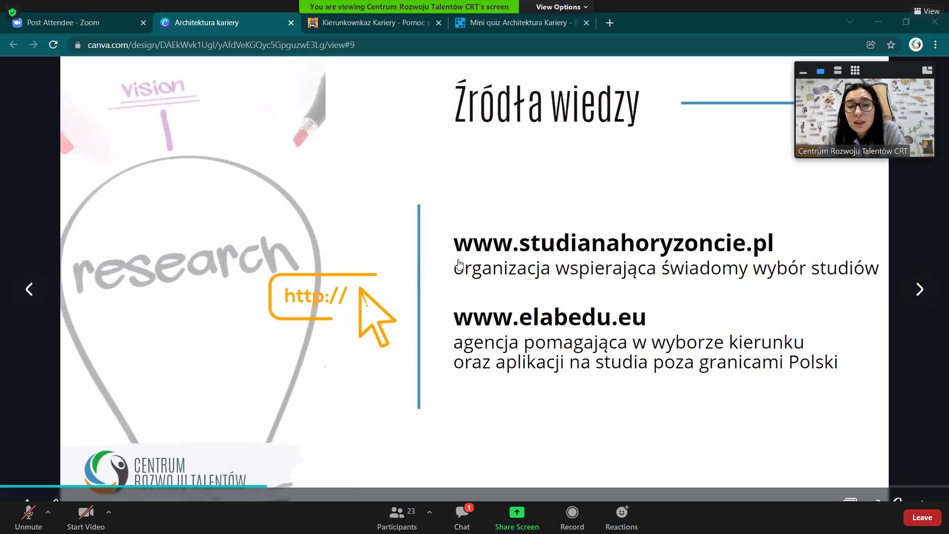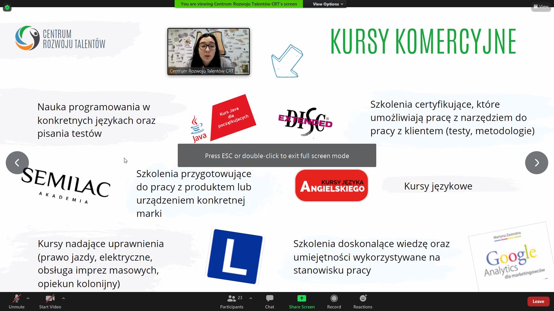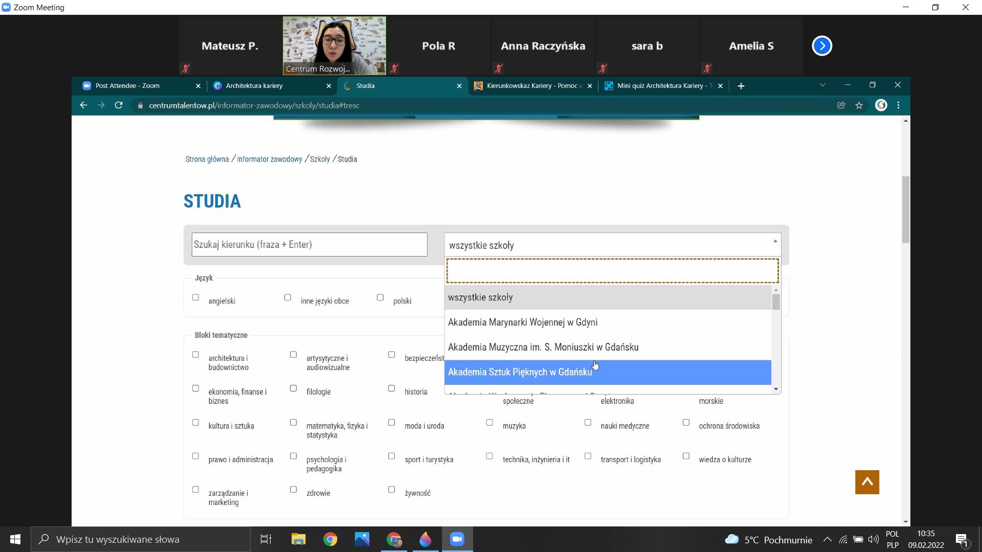 W dniu 9 lutego uczniowie klas maturalnych uczestniczyli w zajęciach online organizowanych przez Centrum Rozwoju Talentów z Gdańska. Maturzyści mogli dowiedzieć się o swoich kompetencjach, poznali jak i kiedy najlepiej zdobyć cenne doświadczenie po szkole i jakie są ścieżki dalszego rozwoju. Była to dla nich bezcenne wsprarcie w tak trudnych wyborach życiowych.
