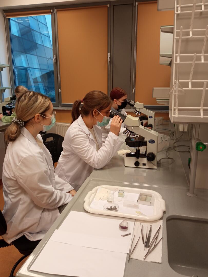 pod mikroskopem. Wykonywaliśmy preparaty mikroskopowe i obserwowaliśmy m.in. różne rodzaje
