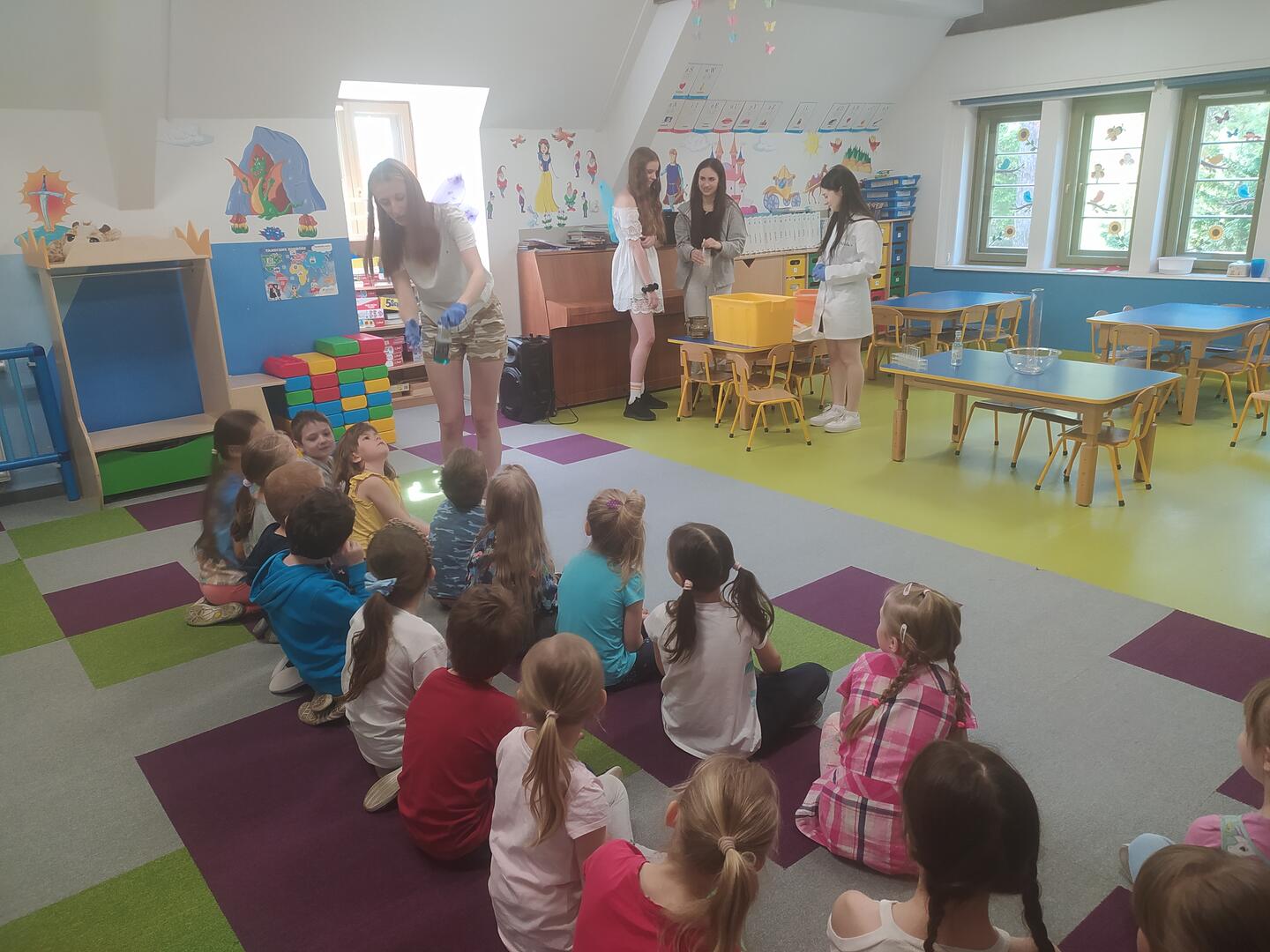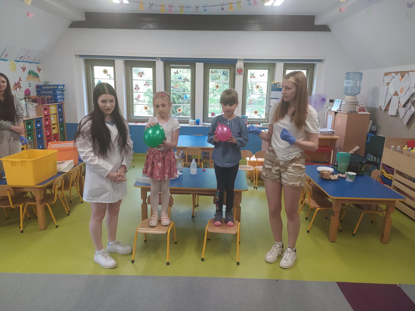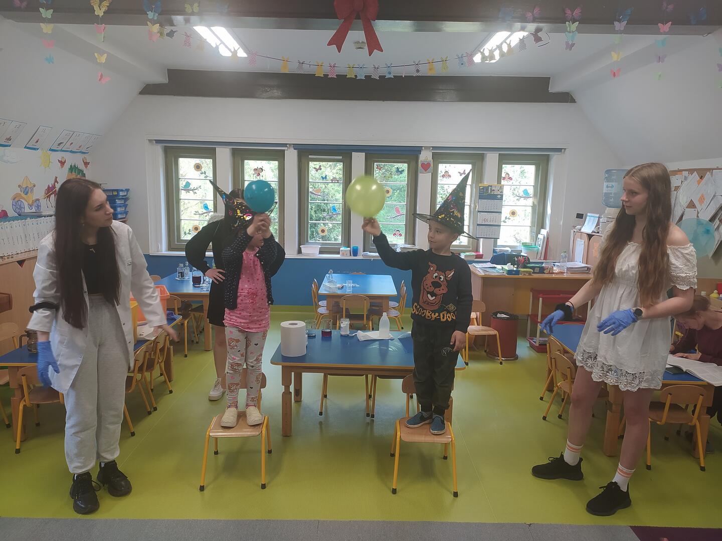 19 maja uczennice z klasy 3BP (Nina, Ewelina, Olga i Wiktoria) pod przykrywką: alchemików i wróżek zaprezentowały w przedszkolu nr 4 w Sopocie doświadczenia chemiczne: