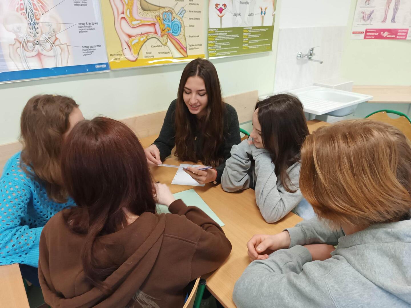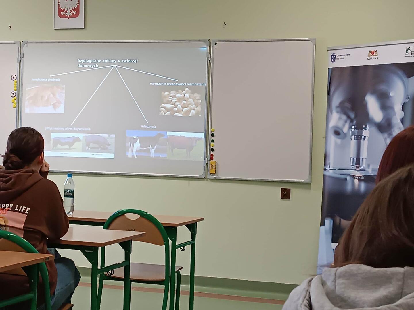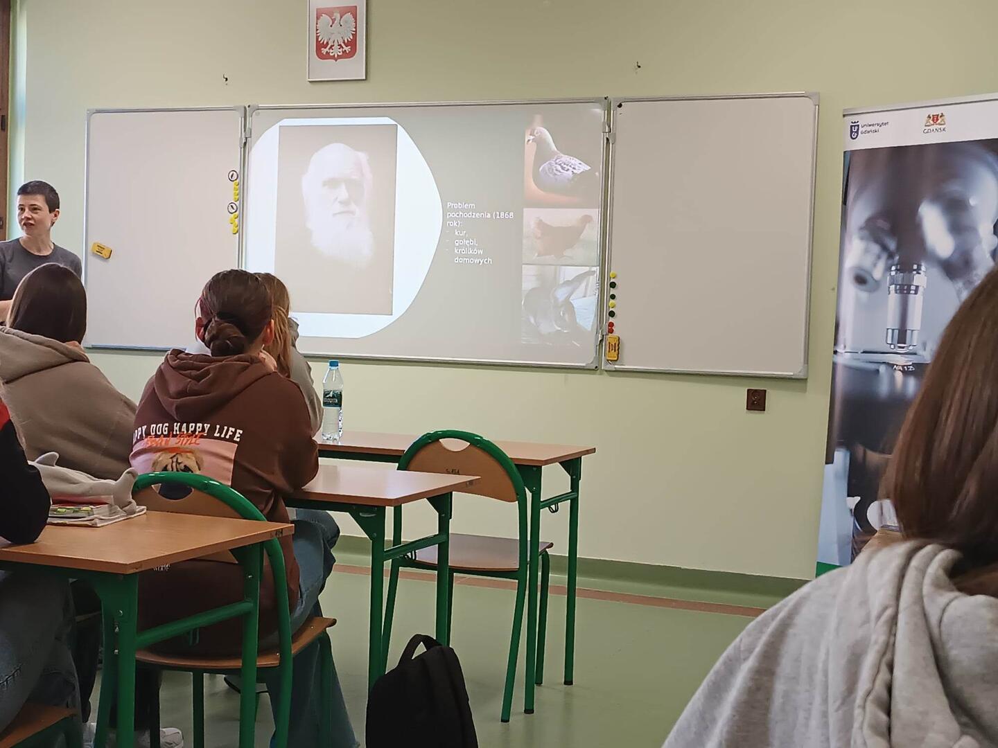 19 kwietnia na lekcjach biologii klasa 2b gościła dr Annę Kot z wydziału Biologii UG. Pani dr Anna Kot wprowadziła nas wyczerpująco w temat oswajania zwierząt, poznaliśmy źródła wiadomości o pochodzeniu udomowionych zwierząt, czym jest oswojenie a udomowienie, jakie zmiany morfologiczne i anatomiczne pojawiły się u zwierząt domowych, historię udomowienia popularnych zwierząt gospodar¬skich (bydło, świnia, kury, gęsi, koza, owce) oraz innych: koń, pies, kot. Następnie pracowaliśmy w grupach oraz dyskutowaliśmy na temat praw zwierząt w kontekście wykorzystania ich przez człowieka.