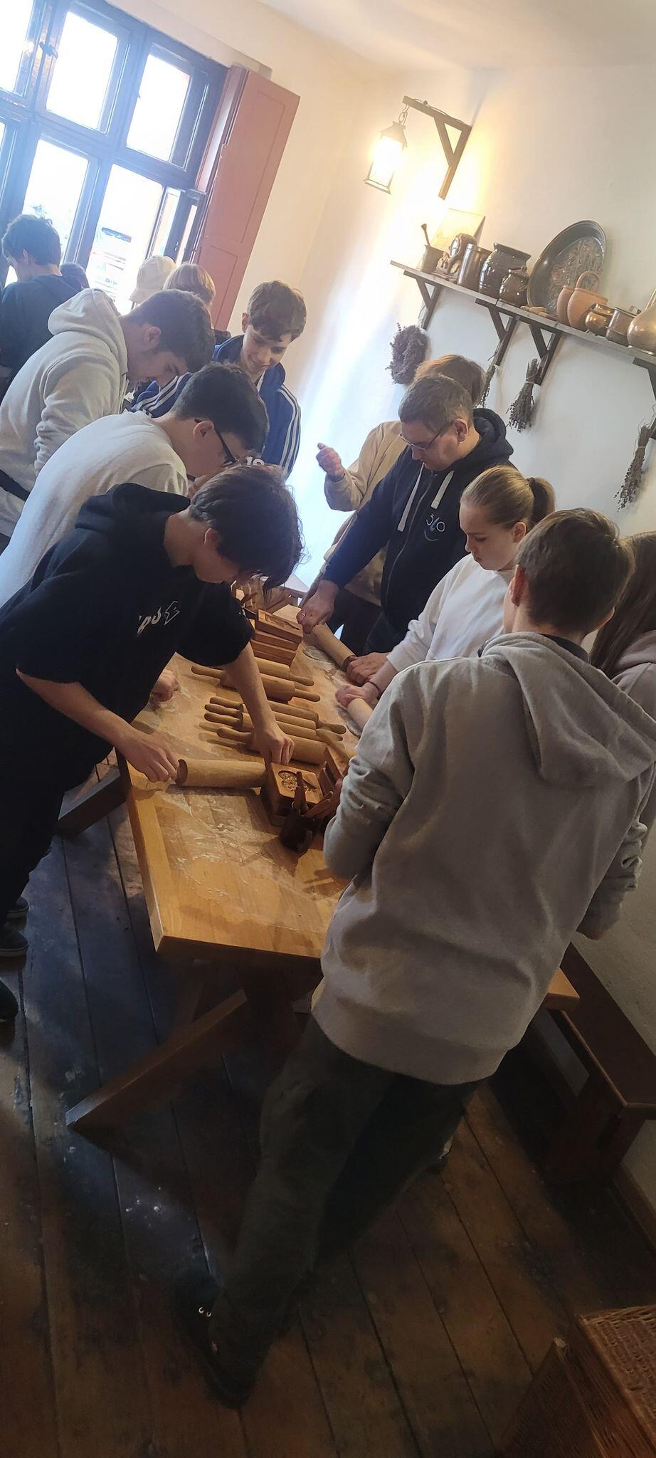 Już o godzinie 10 spotkaliśmy się z panią przewodnik, która towarzyszyła nam przez 6 godzin. W tym czasie zwiedziliśmy Dom Mikołaja Kopernika (wraz z projekcją filmu 4D „Wszechświat”) następnie po obiedzie udaliśmy się do Piernikarni Starotoruńskiej, żeby wysłuchać mistrzów „pierniczenia” i samodzielnie wypiec pierniki. Następnie udaliśmy się na grę miejską, żeby przypomnieć sobie zakamarki gotyckiego Starego Miasta.