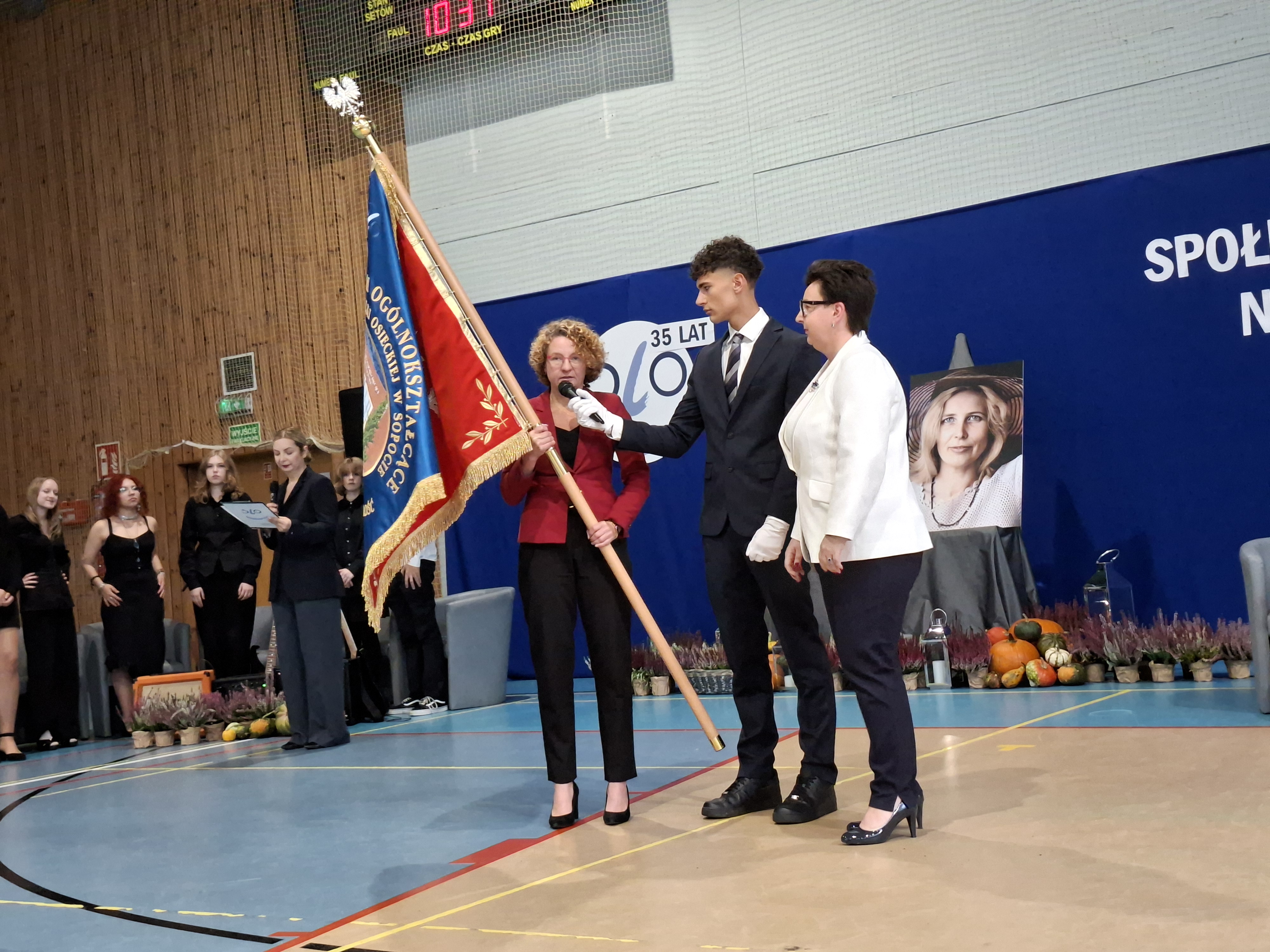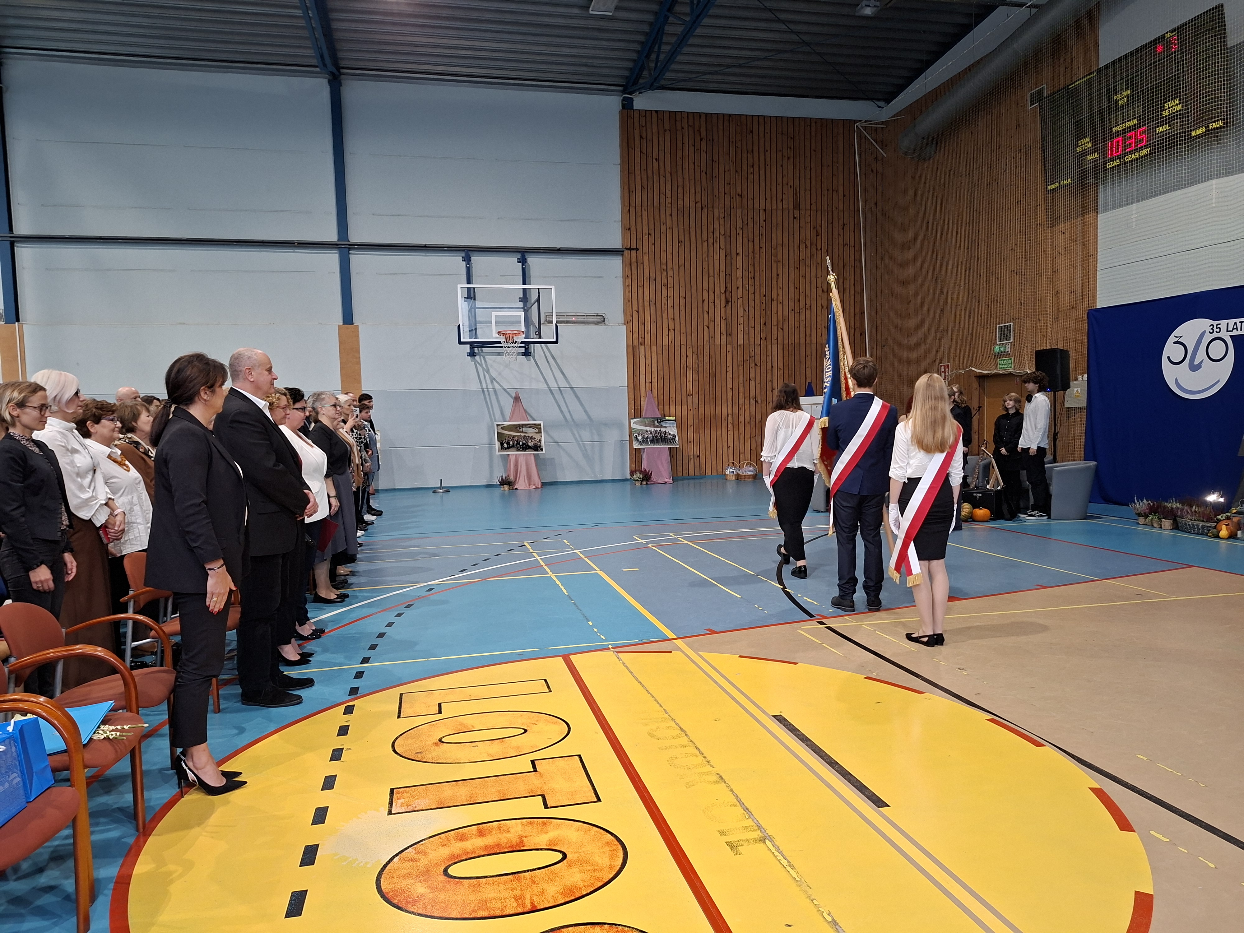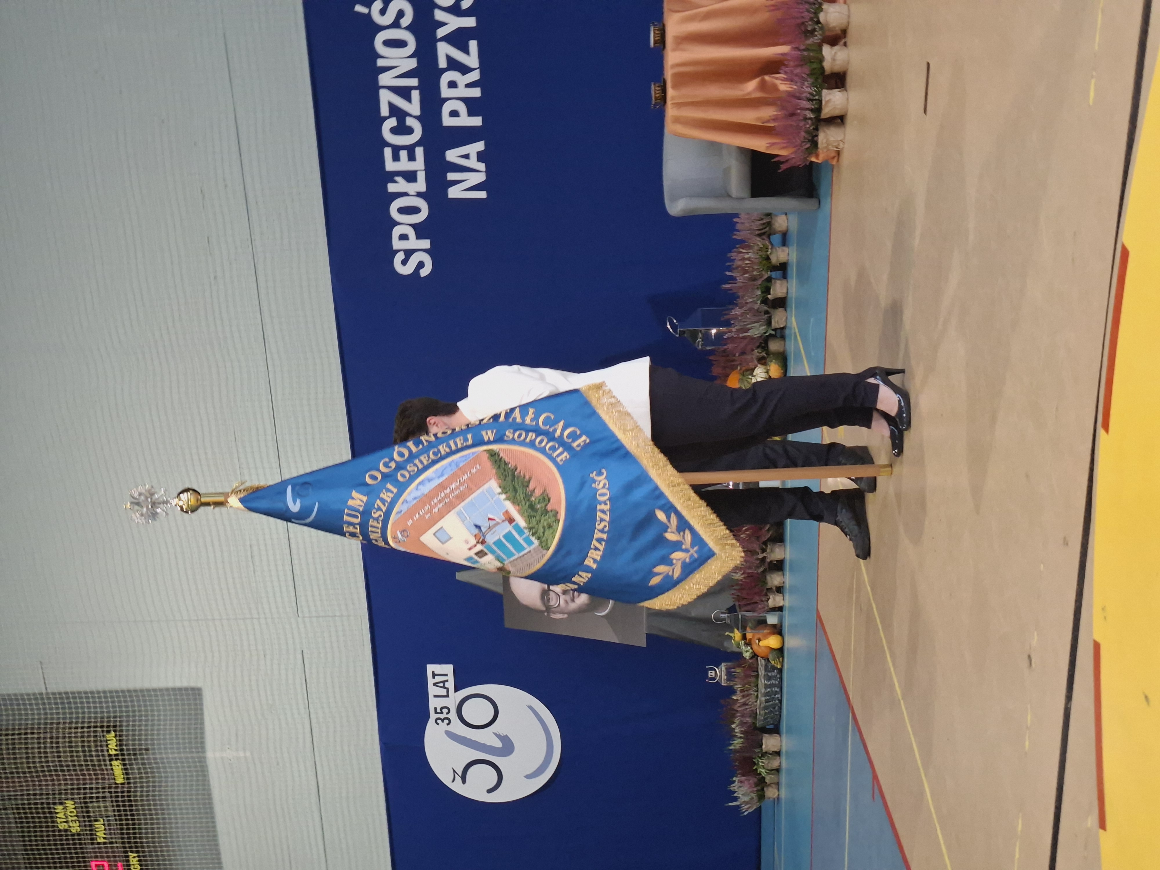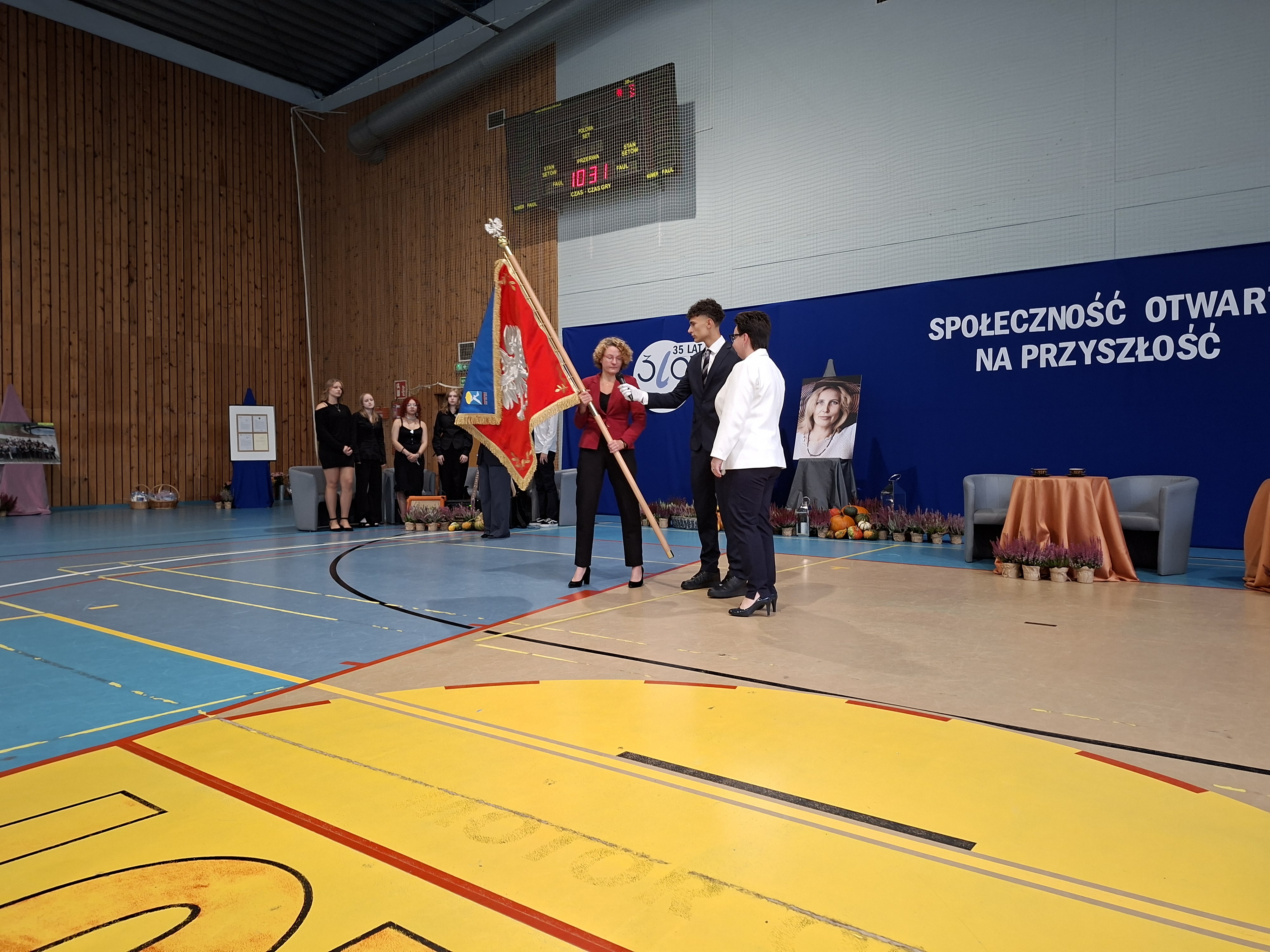 9 października obchodziliśmy Jubileusz 35-lecia połączony z nadaniem naszej szkole Sztandaru. Został on ufundowany przez Prezydentkę Miasta Sopotu, Panią Magdalenę Czarzyńską-Joachim i wykonany w pracowni Haftina w Piotrkowie Trybunalskim. Motto umieszczone na sztandarze: SPOŁECZNOŚĆ OTWARTA NA PRZYSZŁOSC był jednocześnie motywem przewodnim szkolnej uroczystości.