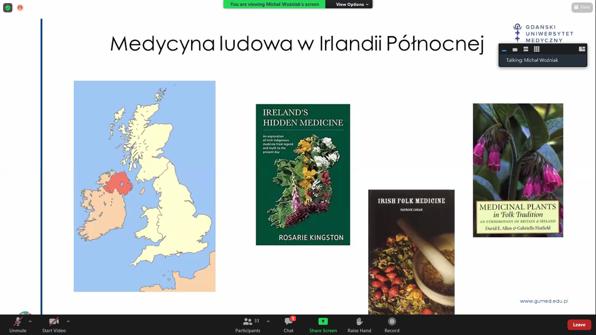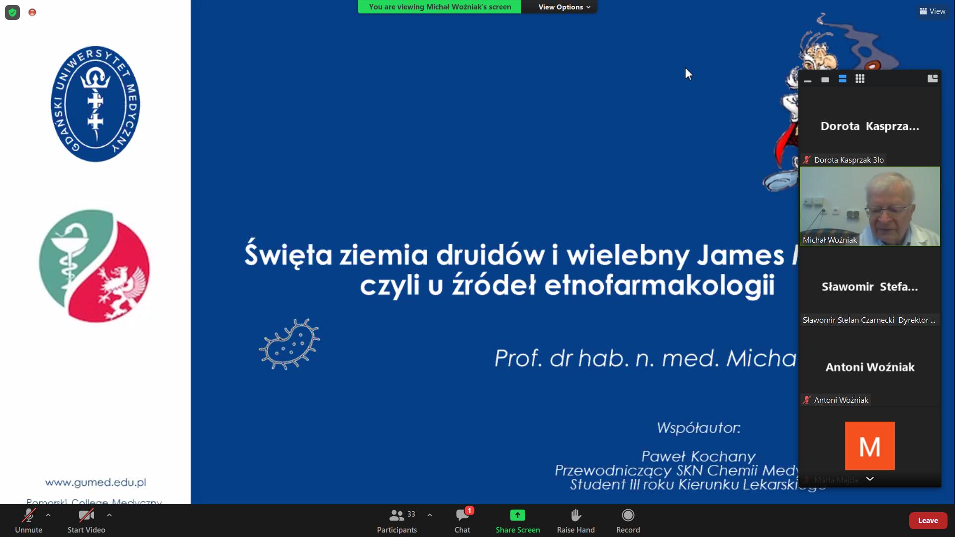 "Święta ziemia Druidów i wielebny James McGirr, czyli u źródeł  etnofarmakologii" - wykład przedstawił prof dr hab n. med. Michał Wożniak.