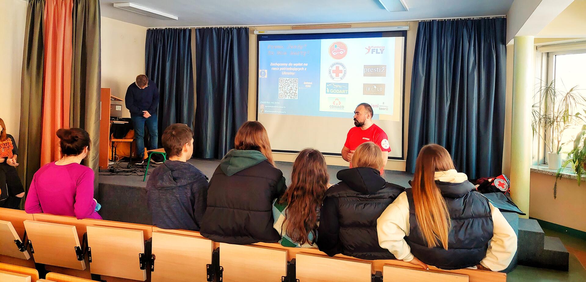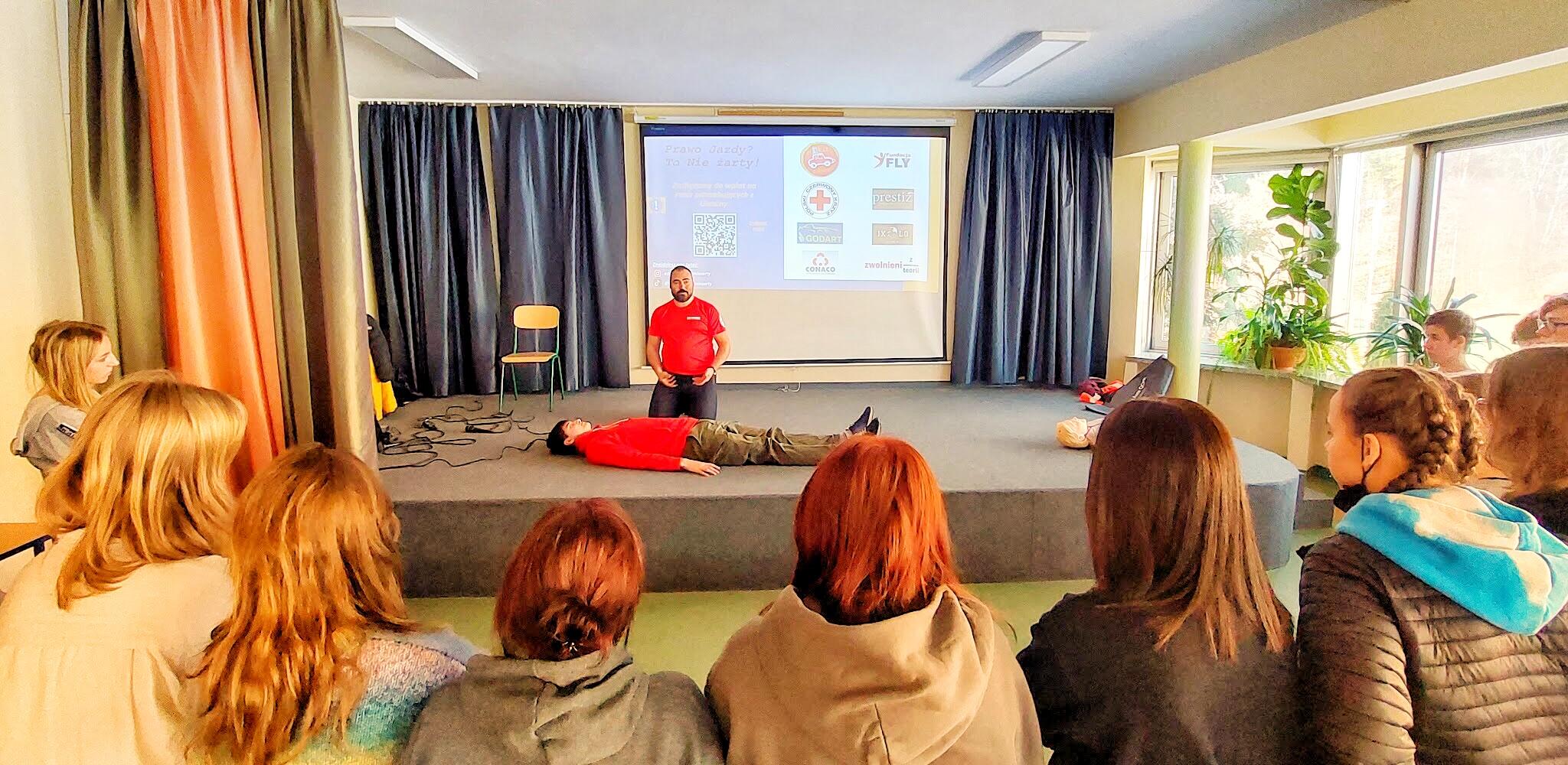24 marca w naszym liceum odbyły się warsztaty realizowane przez uczniów gdyńskiego IX LO w ramach olimpiady Zwolnieni z teorii. Cała akcja była poświęcona uświadomieniu uczniom, że prawo jazdy to poważna sprawa. Podczas warsztatów uczestnicy dowiedzieli się więcej o egzaminie na prawo jazdy, a także mieli szansę utrwalić sobie jak zachować się w trakcie wypadku samochodowego.