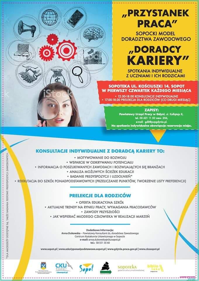 Zapraszamy wszystkich zainteresowanych indywidualnymi spotkaniami z doradcami zawodowymi oraz preleklcją na temat ścieżki uczelnianej i zawodowej.
