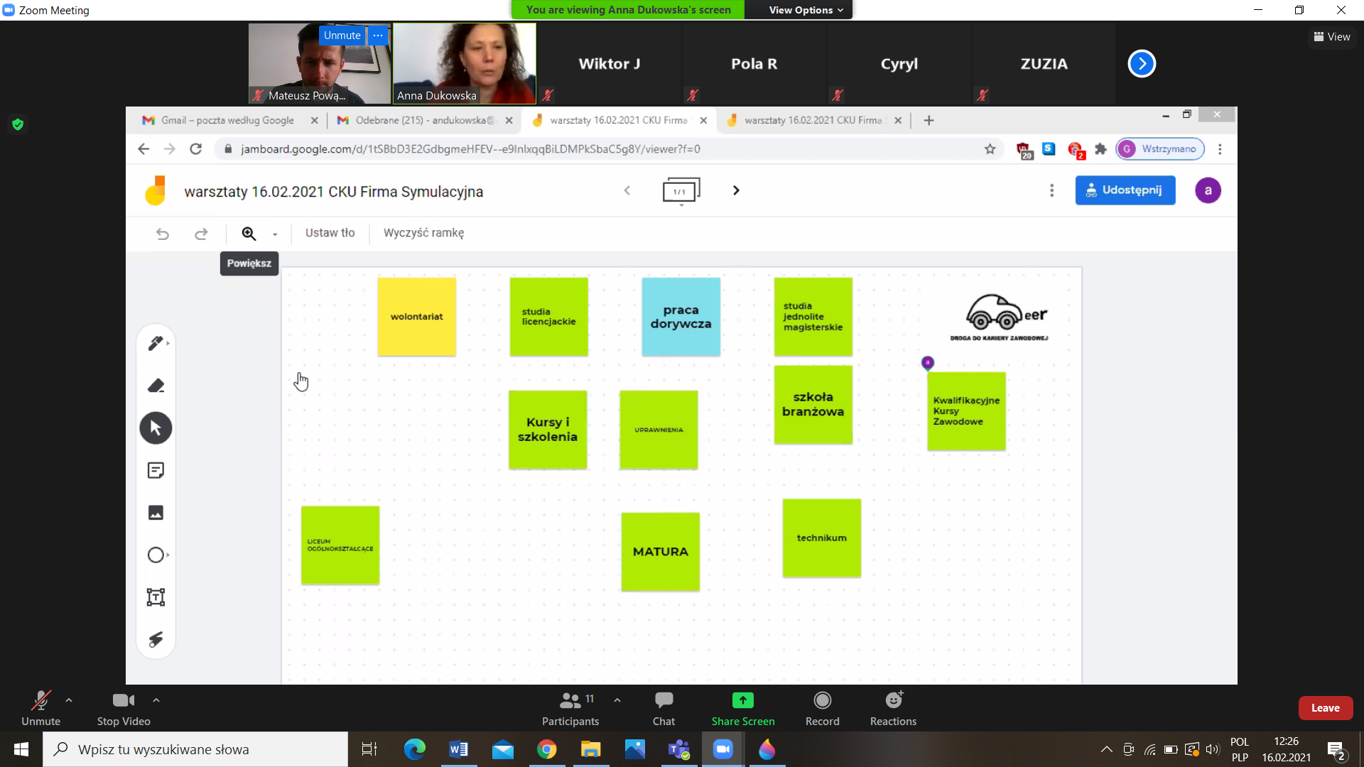 W dniu 16.02.2021 klasa 2BG miała przyjemność uczestniczyć w bardzo ciekawych warsztatach dotyczących swojej przyszłości.