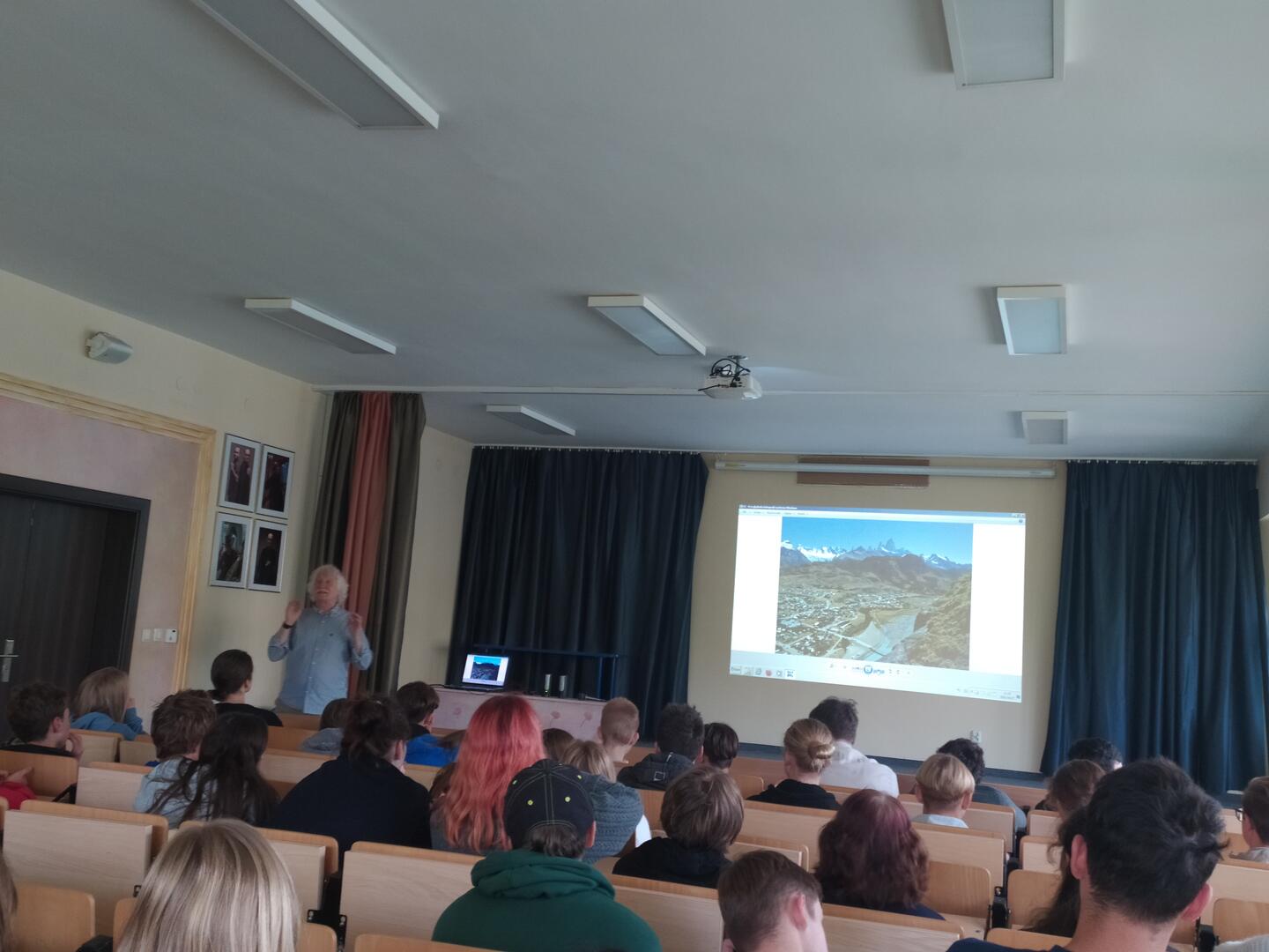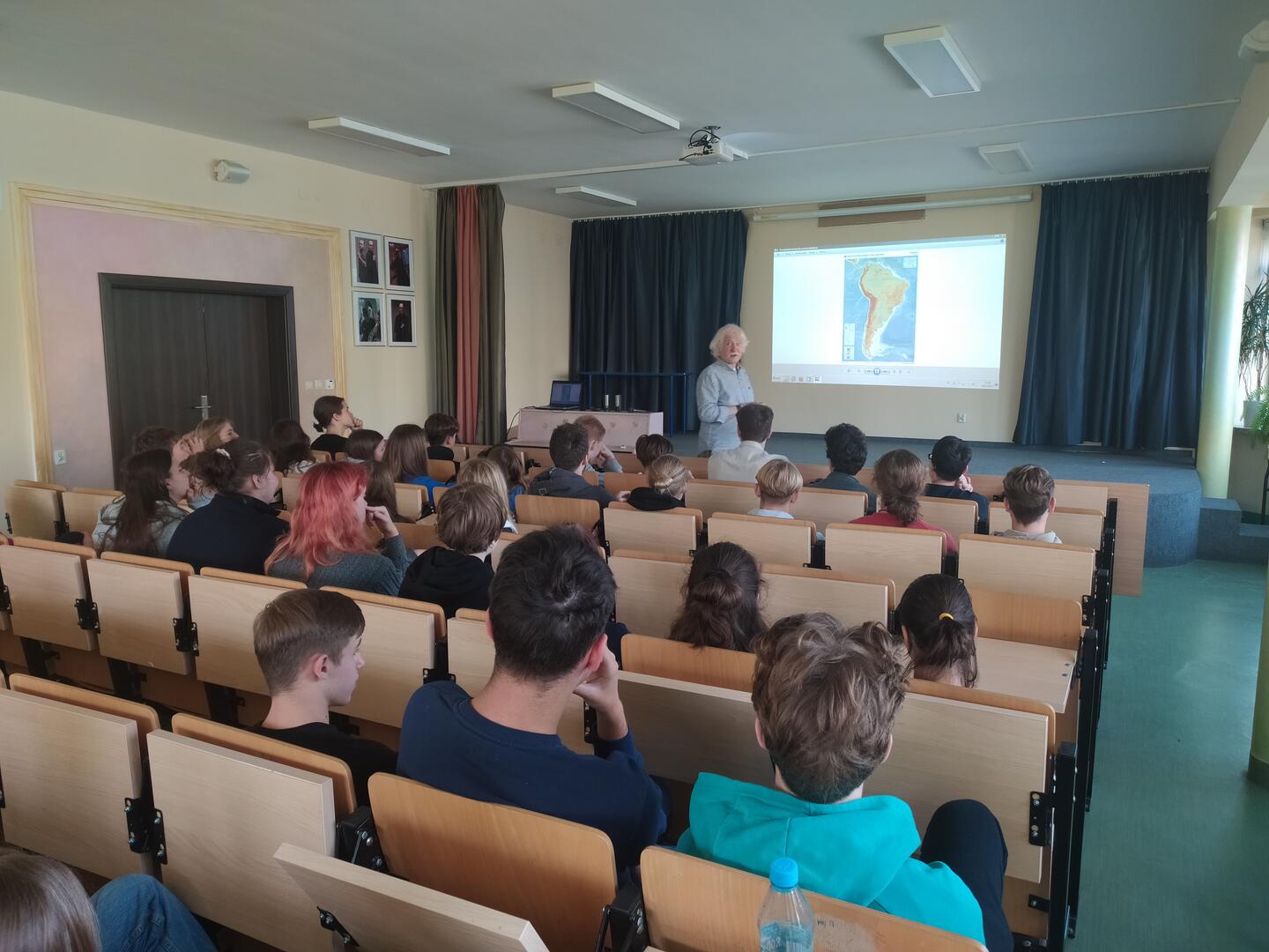 27 września klasy 1c i 3c miały okazję wysłuchać wykładu o Patagonii pana Krzysztofa Kasprzyka. Geografa, dziennikarza, poetę, podróżnika. Pan Kasprzyk związany jest z Sopotem, jednak swoje życie dzieli jeszcze na Patagonie i Toronto. Już od 10 października w filii biblioteki sopockiej "Broadway" będzie można obejrzeć wystawę prac podróżnika "Patagonia. Dwa parki: Los Glaciares i Torres del Paine"