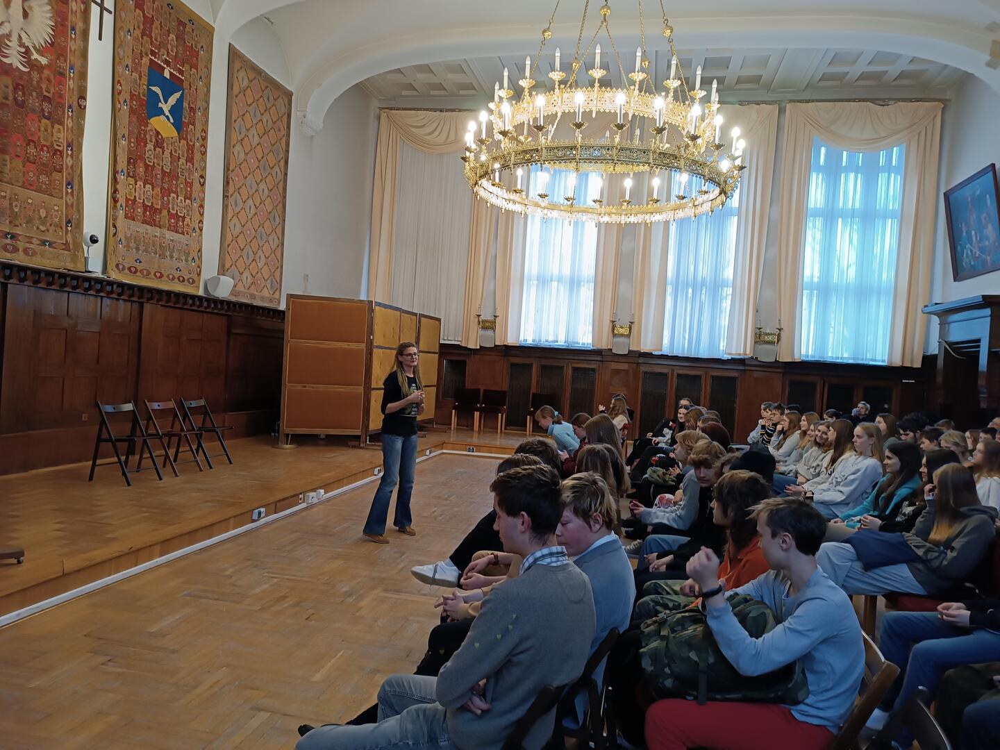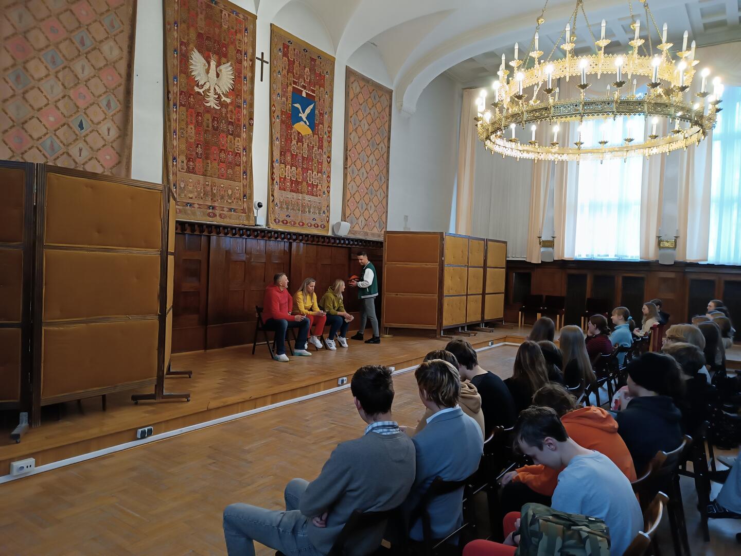 14.12 uczniowie wszystkich klas pierwszych udały się do UM w Sopocie, aby obejrzeć wyjątkowy spektakl pt. 'Bądź miła' , który dotyczył tematu cyberprzemocy, hejtu w internecie i wpływu treści umieszczanych w portalach społecznościowych na młodych ludzi. Spektakl wystawili strażnicy wydziału profilaktyki Straży Miejskiej w Warszawie i całe spotkanie było prowadzone przez moderatora. Spektakl miał niekonwencjonalny przebieg, podczas którego uczniowie mogli wdać się w interakcję z aktorami, przeprowadzać dyskusję z moderatorem spotkania oraz mogli modyfikować fabułę w miejscach gdzie uzawali to za stosowne bądź bardziej efektywne w kontekście oczekiwanych rezultatów końcowych przedstawianej historii.