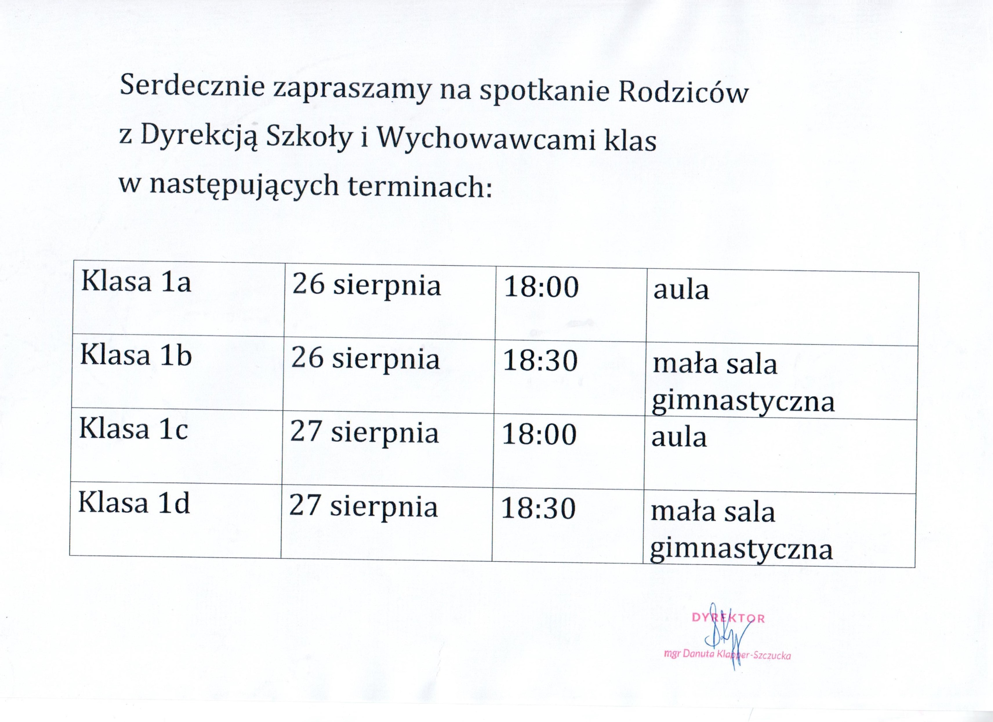 zapraszamy do zapoznania się z harmonogramem spotkań przed rozpoczęciem roku szkolnego :