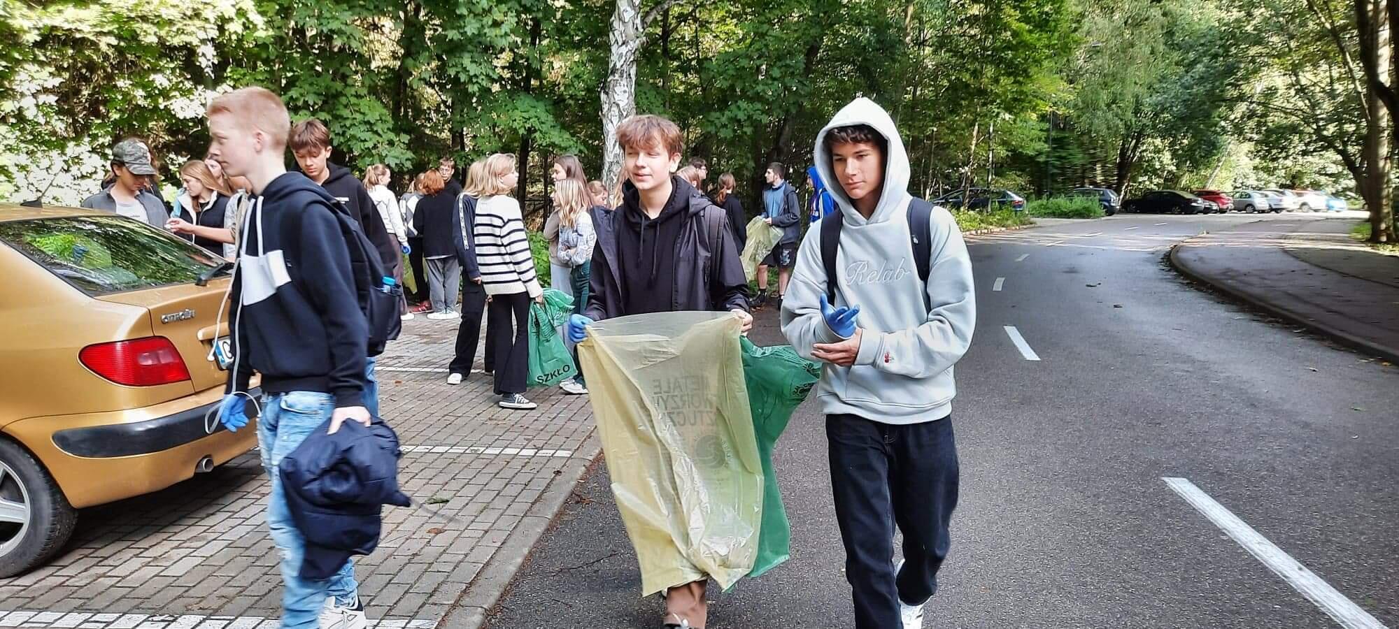 Niech las pozostanie lasem-Akcja Sprzatanie Świata. Okolice naszej szkoły regularnie zaśmiecane przez człowieka wczoraj i dziś zostały choć trochę wysprzątane z butelek i puszek przez klasy 1B i 1C. Dziekujemy w imieniu natury! :)