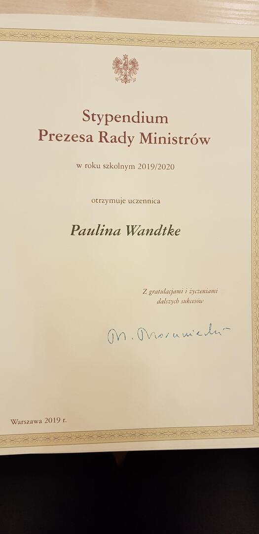 Stypendium Prezesa Rady Minitstrów                   dla Pauliny Wandtke !!!