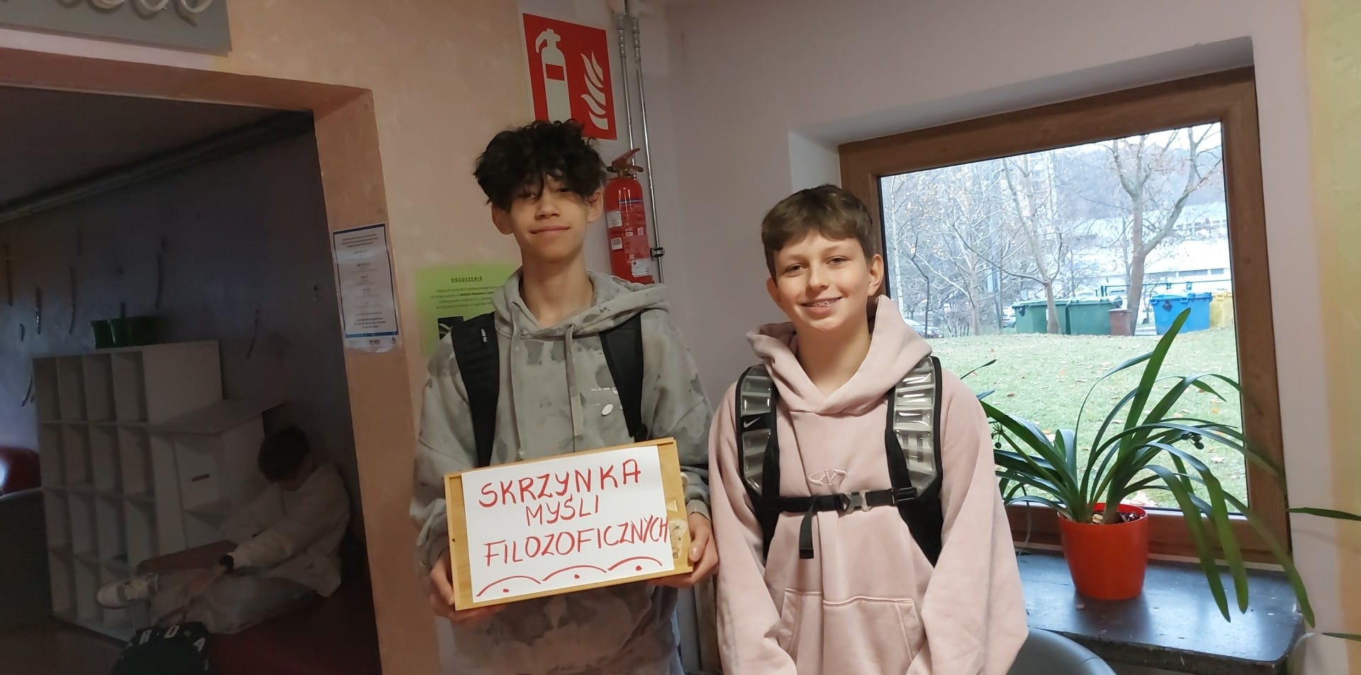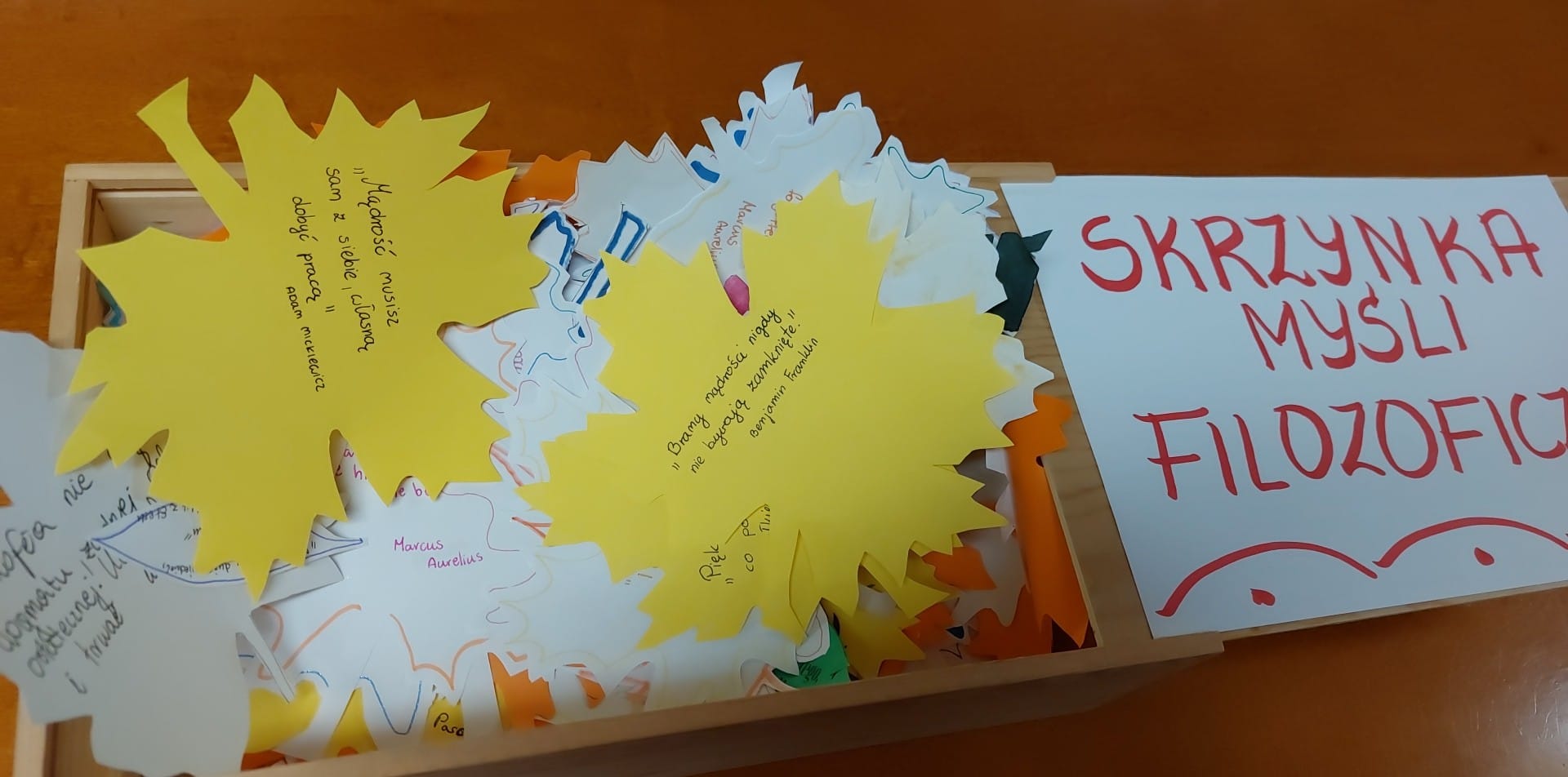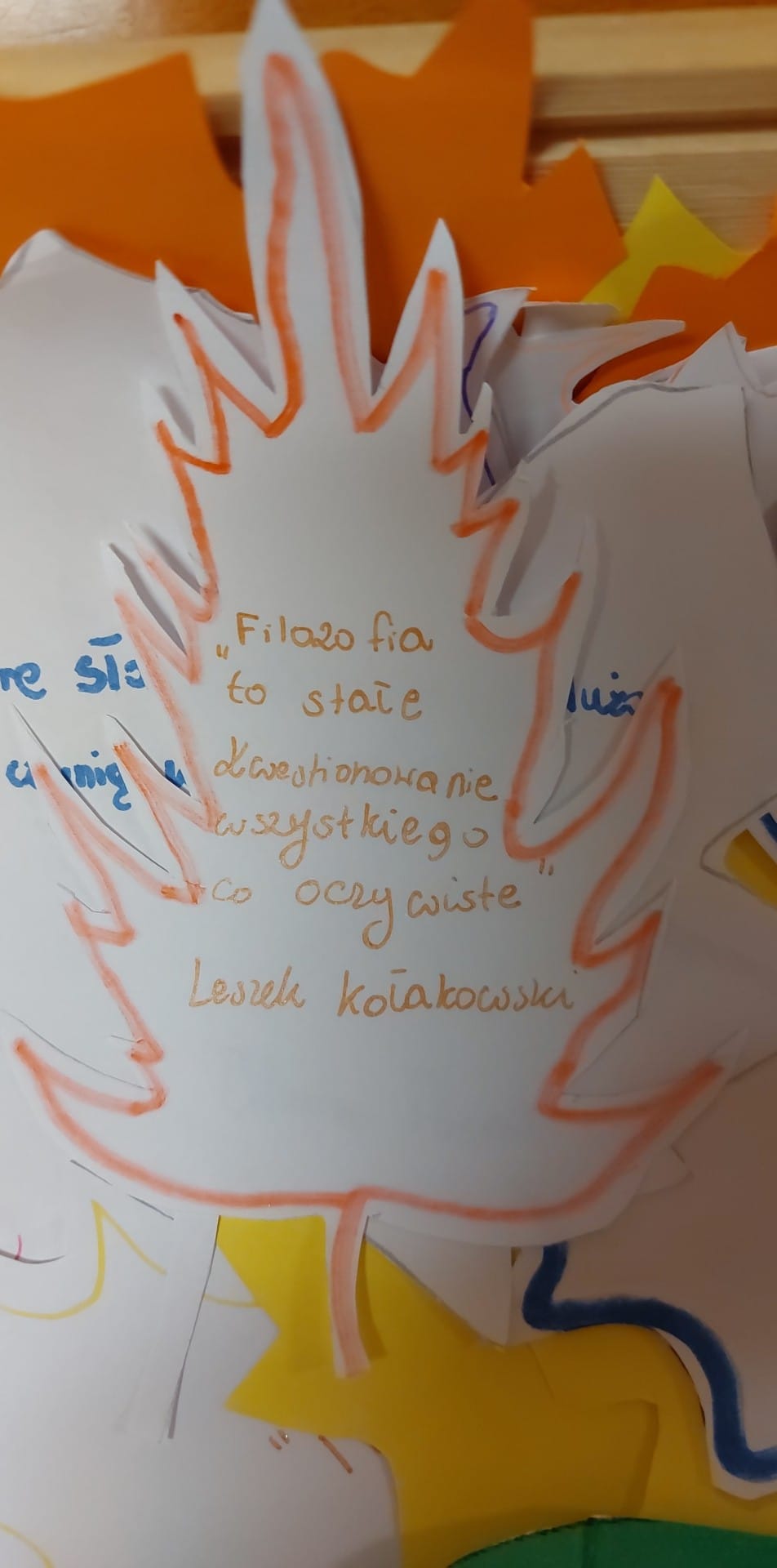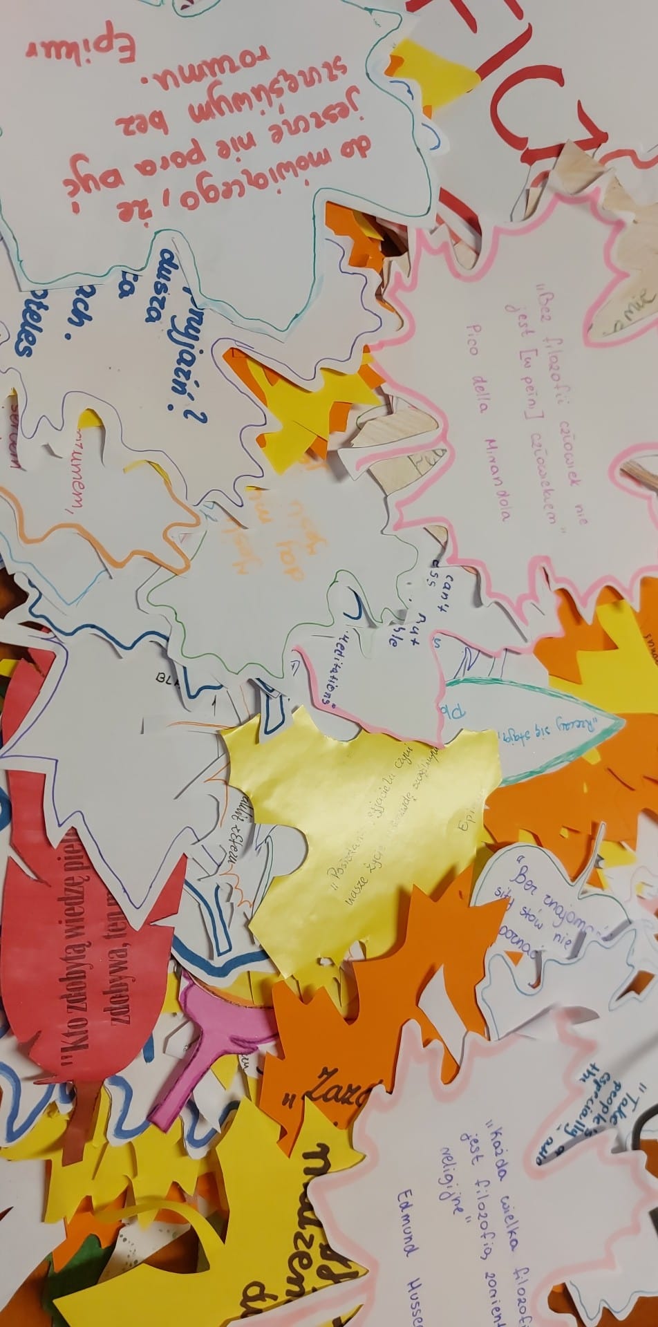 Światowy Dzień Filozofii obchodzony jest zawsze w przedostatni czwartek listopada, w naszej szkole mamy cały tydzień filozoficzny. Dziękujemy, że współtworzycie ten tydzień, manifestujecie kolorem, śpiewem, muzyką, myślą filozoficzną, happeningami, flagami, portretami filozofów, filosupełkami, dobrym słowem, a nawet "platońskim" jabłkiem. Zapraszamy jeszcze jutro.