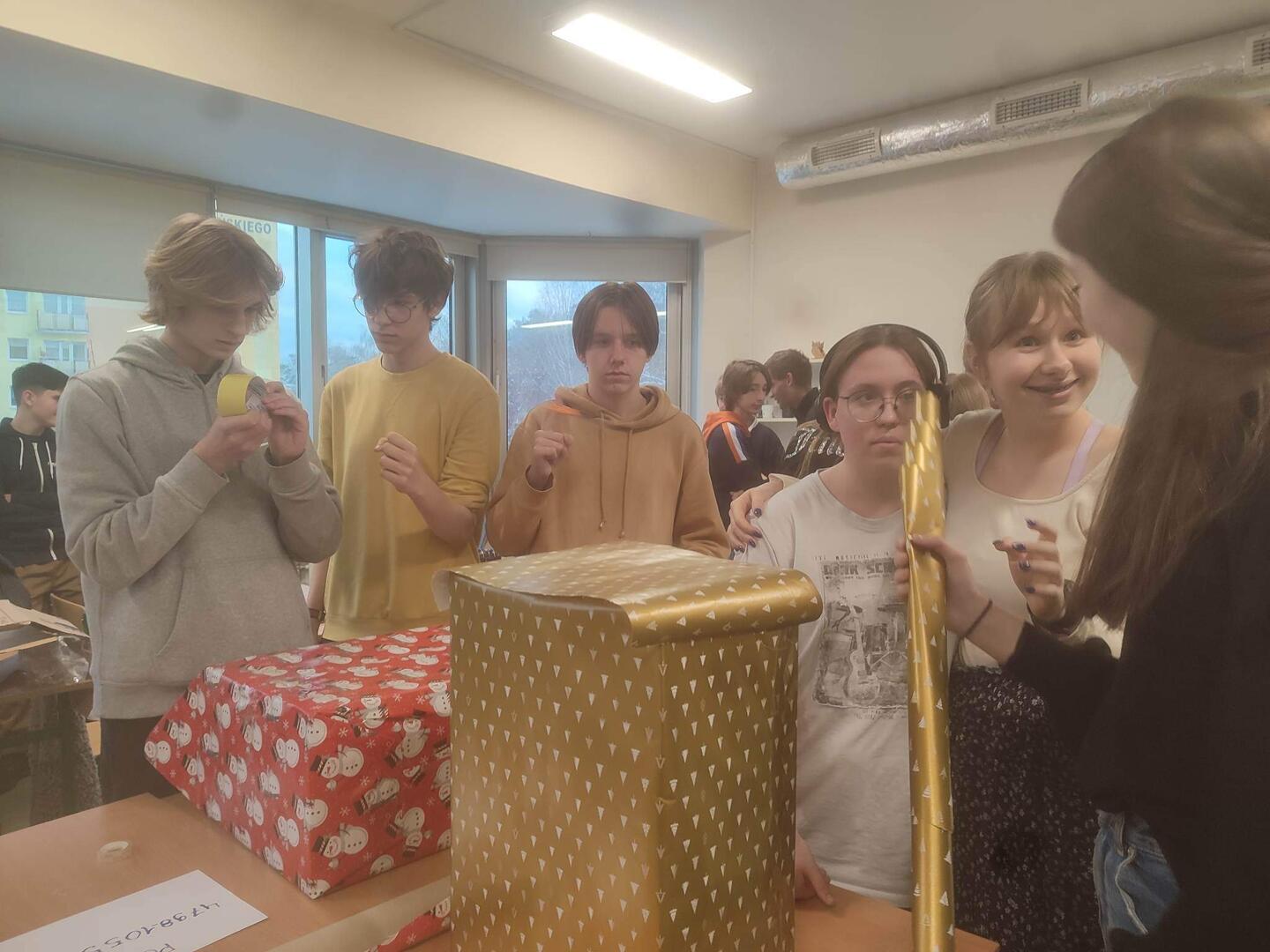 Uczniowie klasy 1d z rodzicami i wychowawcą przygotowali Szlachetną Paczkę.