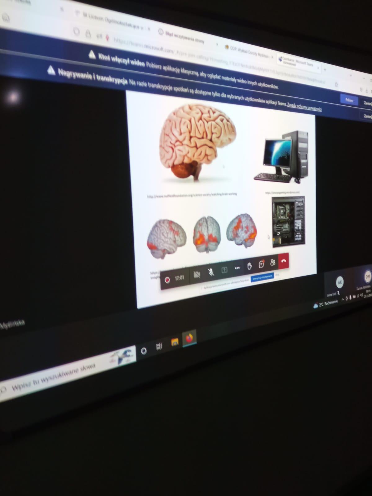 29 listopada br. uczniowie klasy 1b na lekcjach biologii uczestniczyli w wykładzie online na temat „Uczenie się i pamięć”. Wykład prowadziła dr Dorota Myślińska z Wydziału Biologii Uniwersytetu Gdańskiego. Poznaliśmy neuronalne podłoże uczenia się i pamięci, rolę hipokampa i kory przedczołowej w pamięci przestrzennej i operacyjnej.