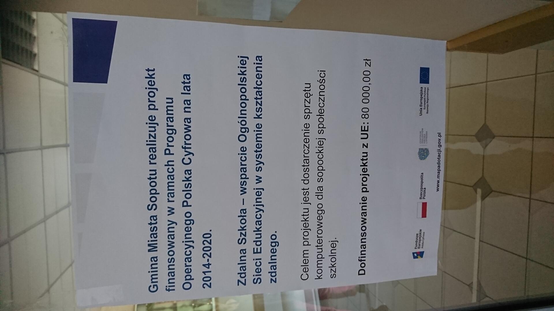 2014-2020. Celem projektu "Zdalna Szkoła" to przede wszystkim wsparcie Ogólnopolskiej Sieci Edukacyjnej w systemie kształcenia zdalnego i dostarczenie sprzętu komputerowego dla sopockiej społeczności szkolnej.