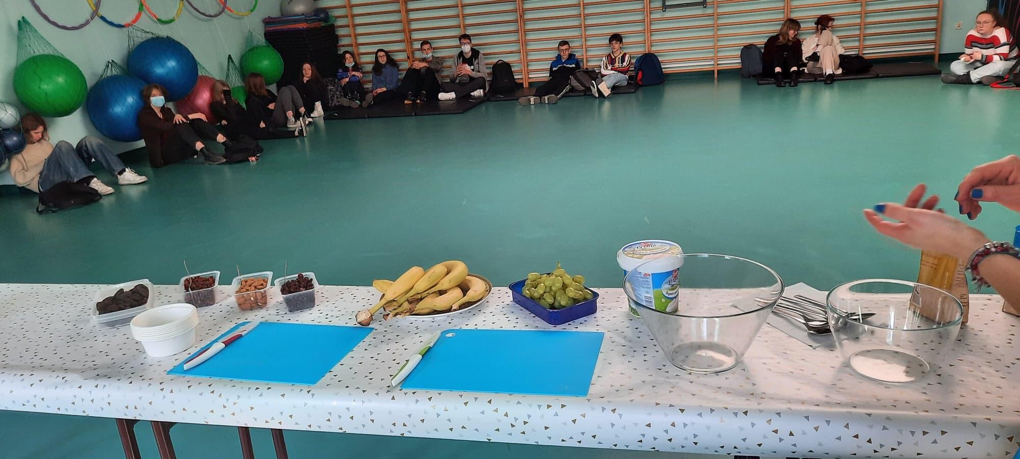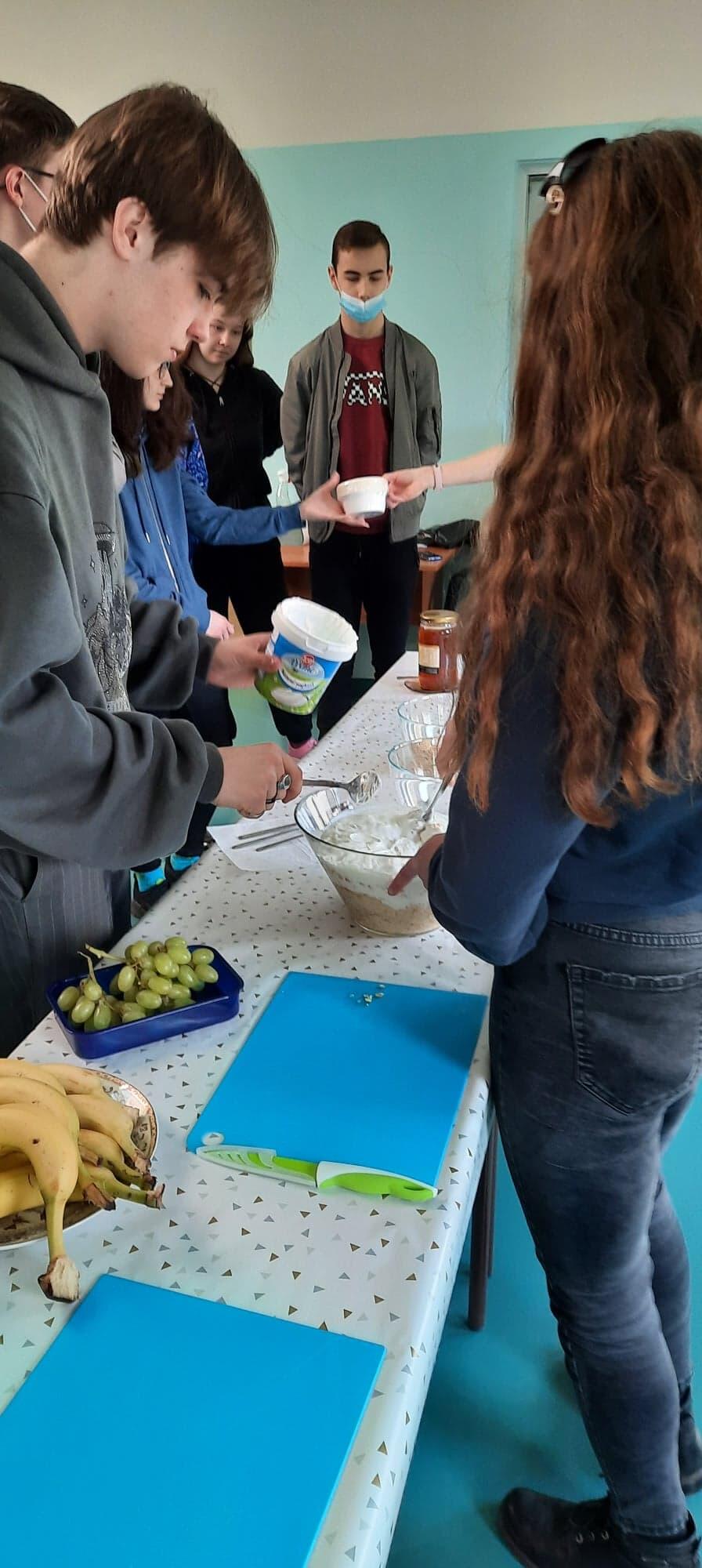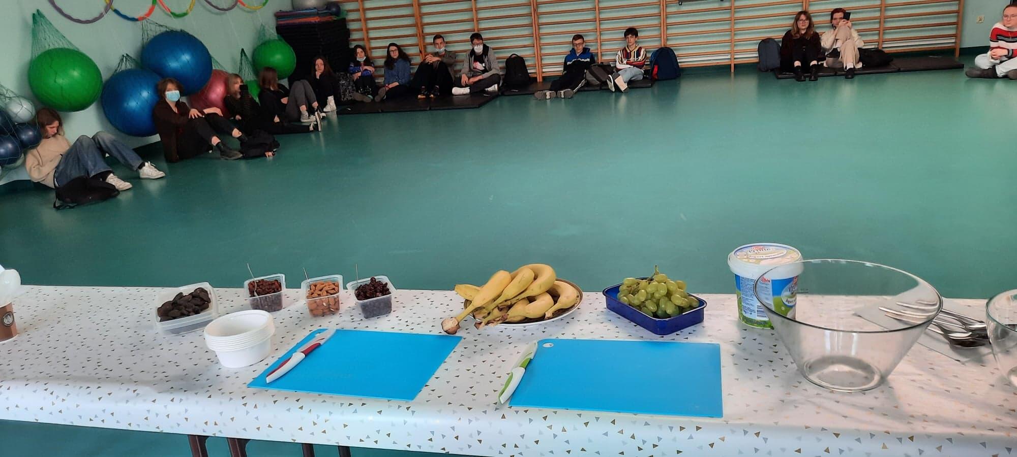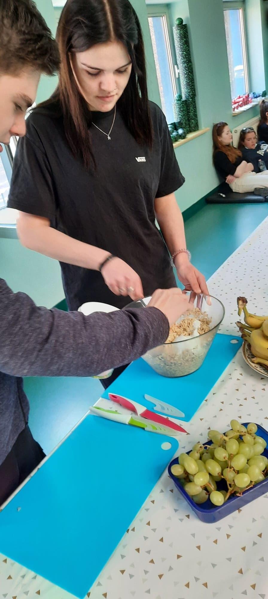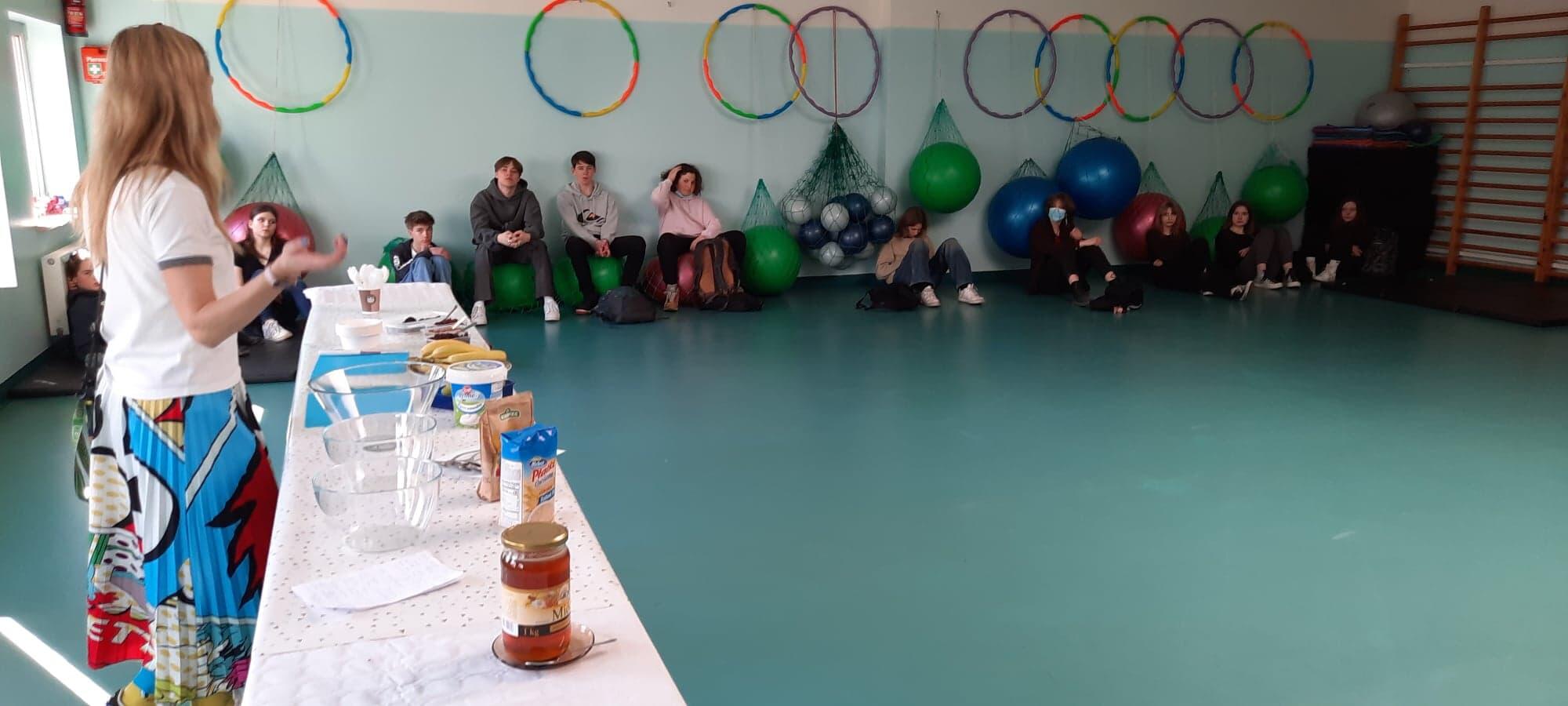 Dzisiaj w ramach lekcji wychowania fizycznego odbywały się warsztaty kulinarne ,,Jak szybko zrobić zdrowe , smaczne śniadanie''. Pomysł ich przygotowania zrodził się  w zespole nauczycieli wychowania fizycznego, którzy widzą problem ze zdrowym odżywianiem się wśród swoich uczniów.  Ciężar merytorycznego poprowadzenia zajęć wzięła na siebie nasza pani Grażyna Oszczygieł.
