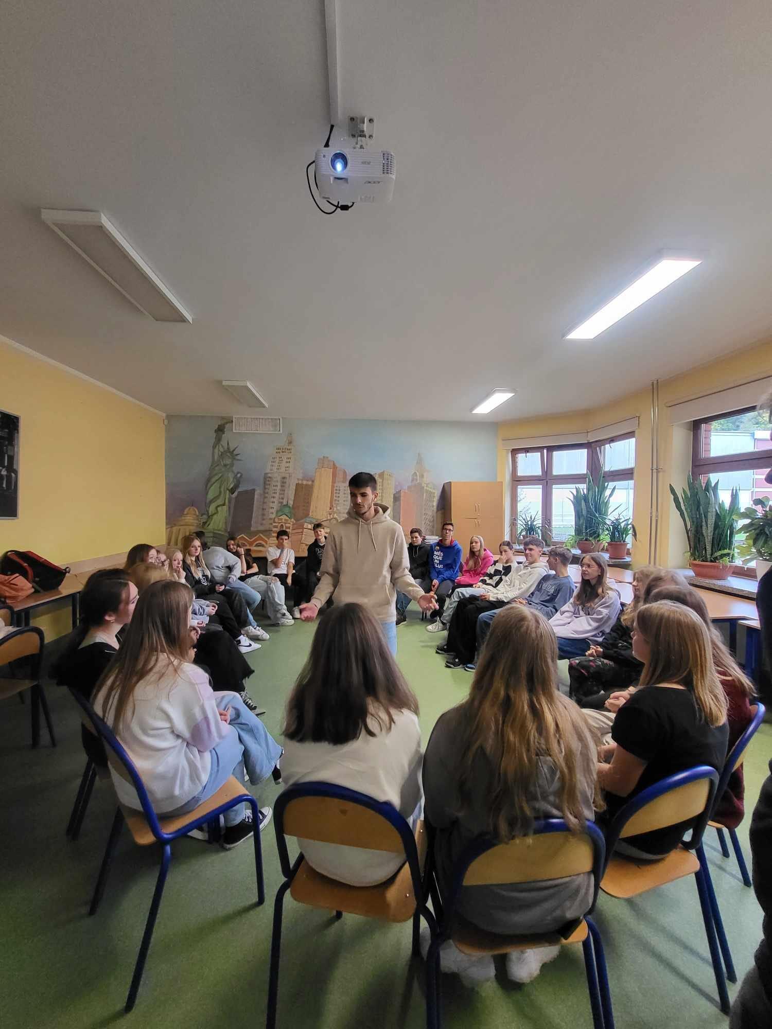 Klasy 3b i 1a uczestniczyły dzisiaj w warsztatach w języku angielskim w ramach projektu CLIVE, zwracającego uwagę na świadomość problematyki zdrowia psychicznego młodych ludzi. Zajęcia przeprowadzili wolontariusze z Włoch, Malty i Polski wspólnie z koordynatorem wolontariuszy Regionalnego Centrum Wolontariatu w Gdańsku, Szymonem Knitterem. Serdecznie dziękujemy!