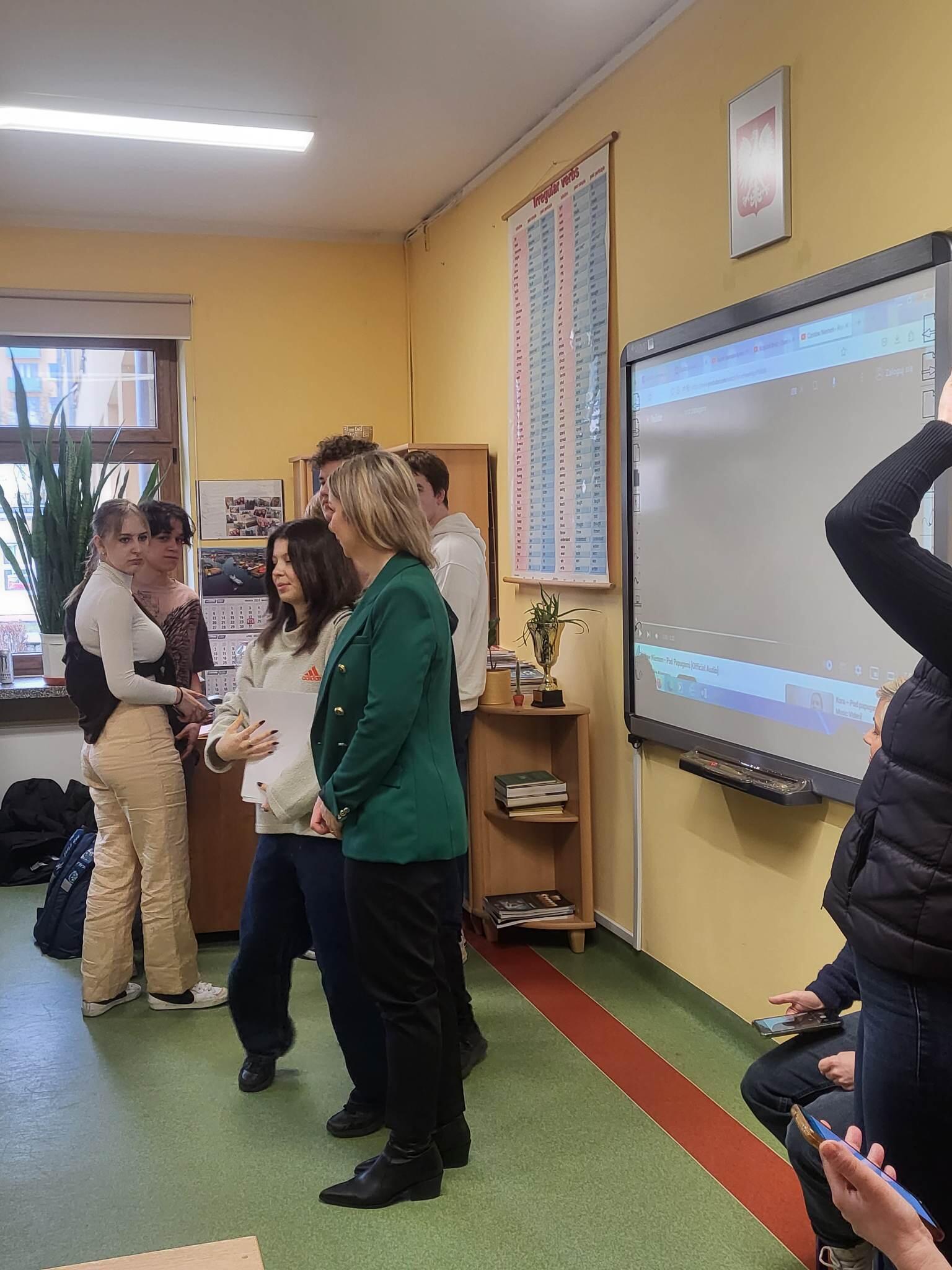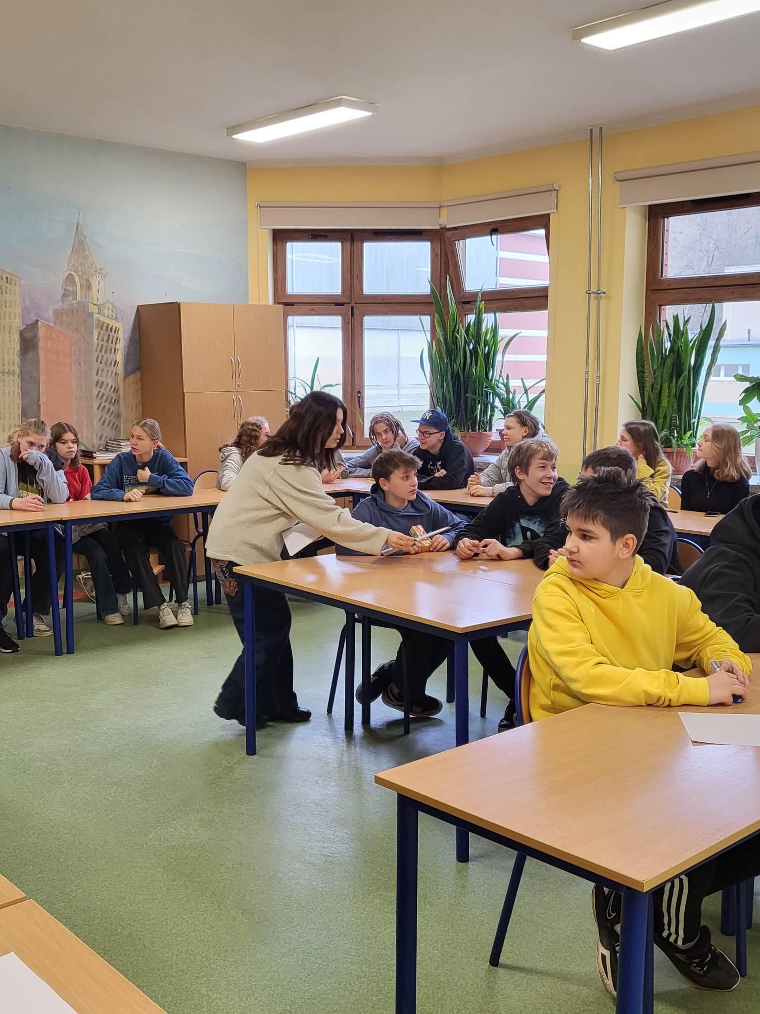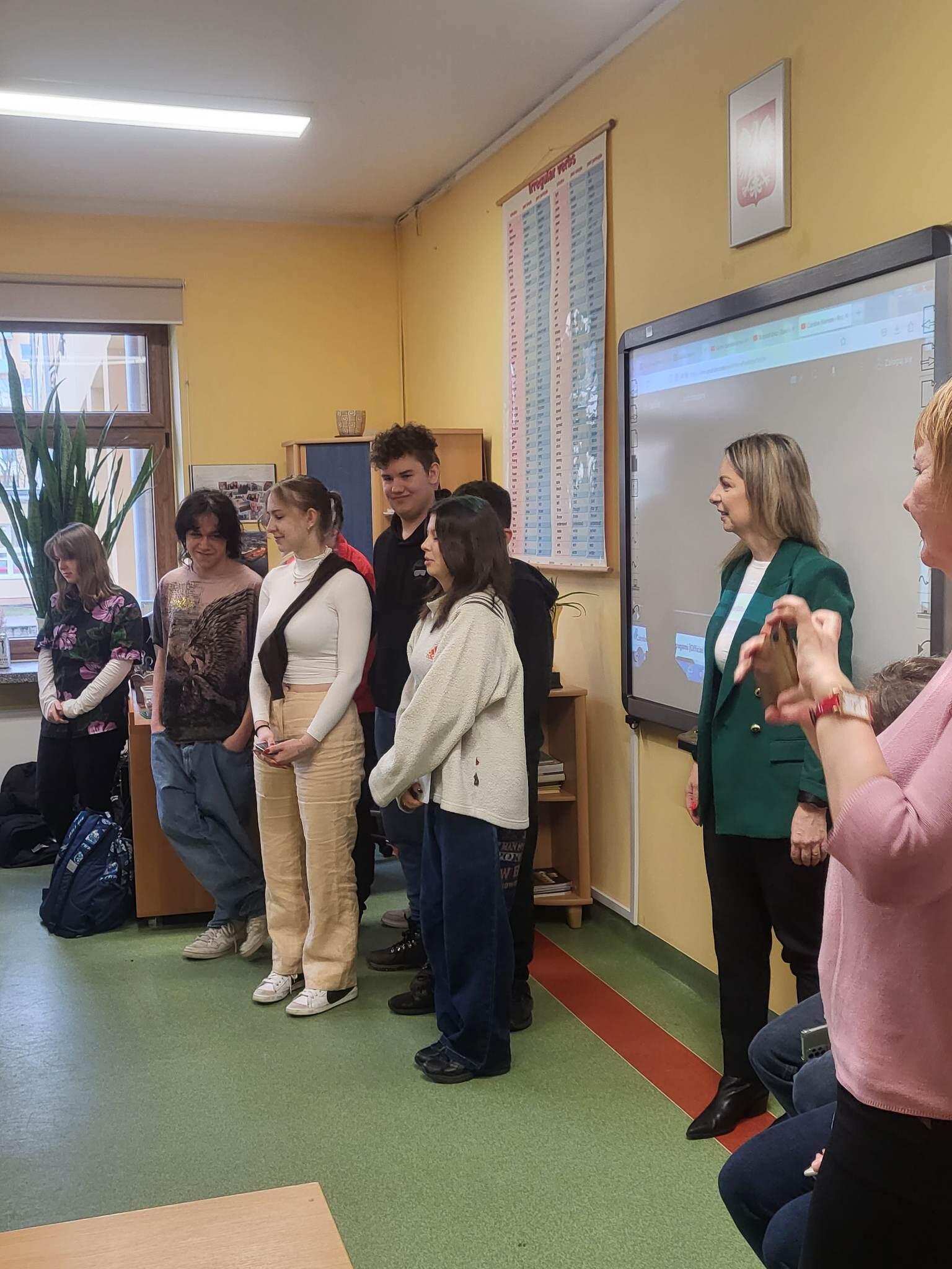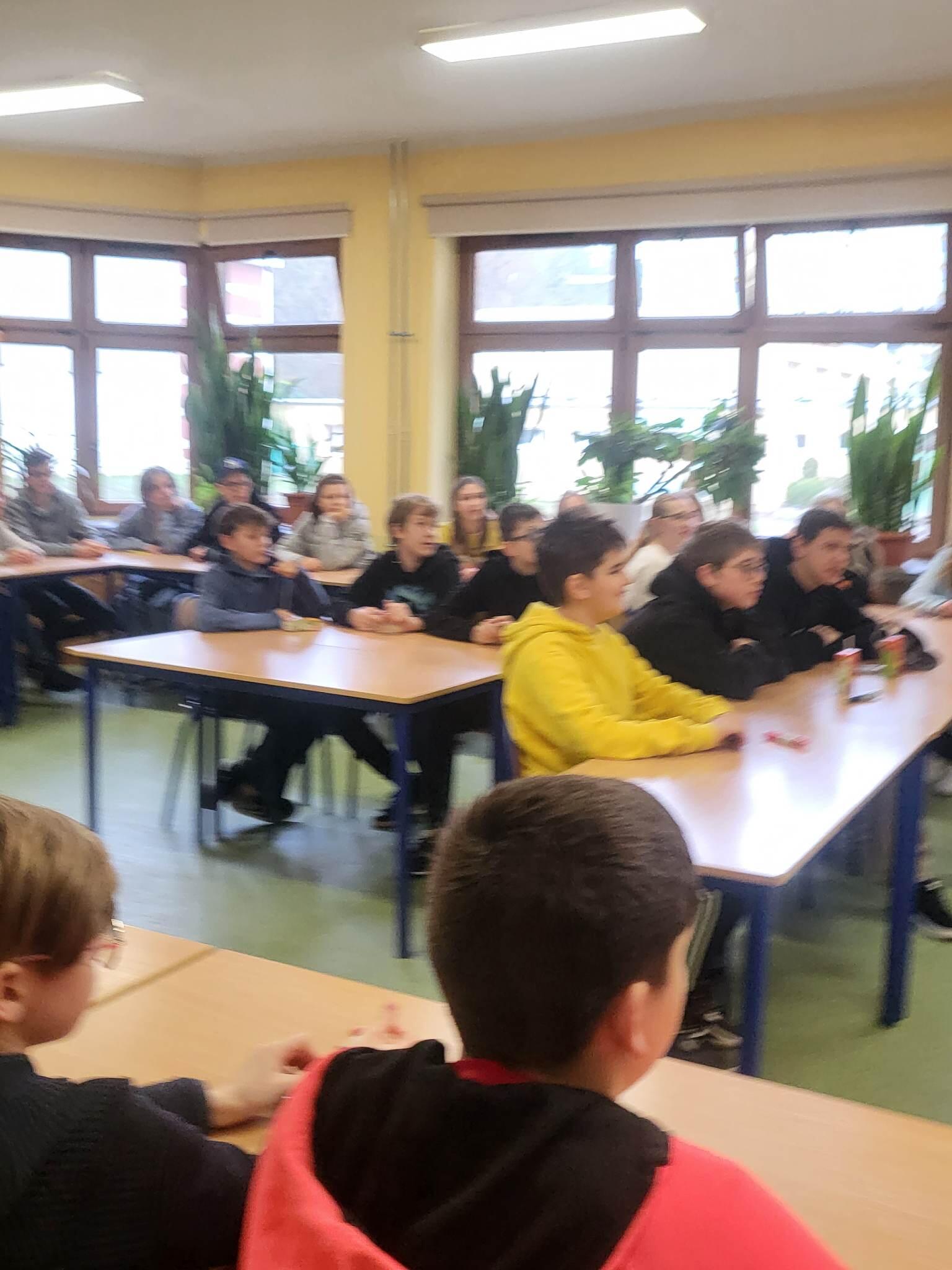 Podczas lekcji przeprowadzonej przez naszą młodzież odbył się quiz geograficzny dotyczący Polski i Niemiec, konkurs matematyczny a także zadania informatyczne. Po zajęciach pani Doering zaprosiła wszystkich do swojej sali na poczęstunek. Opiekunkami grupy niemieckiej były dwie nauczycielki, które milo spędziły czas w naszej szkole i były zachwycone spotkaniem zorganizowanym przez 3d.